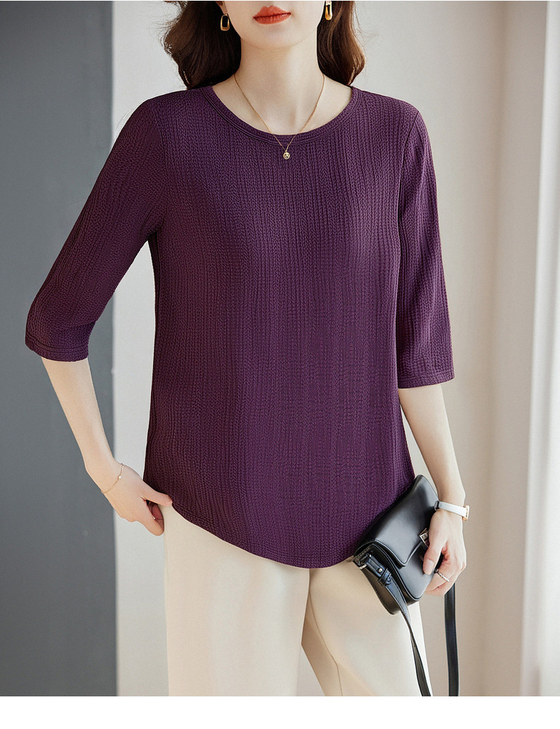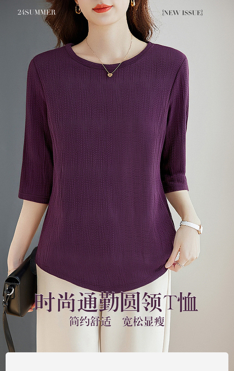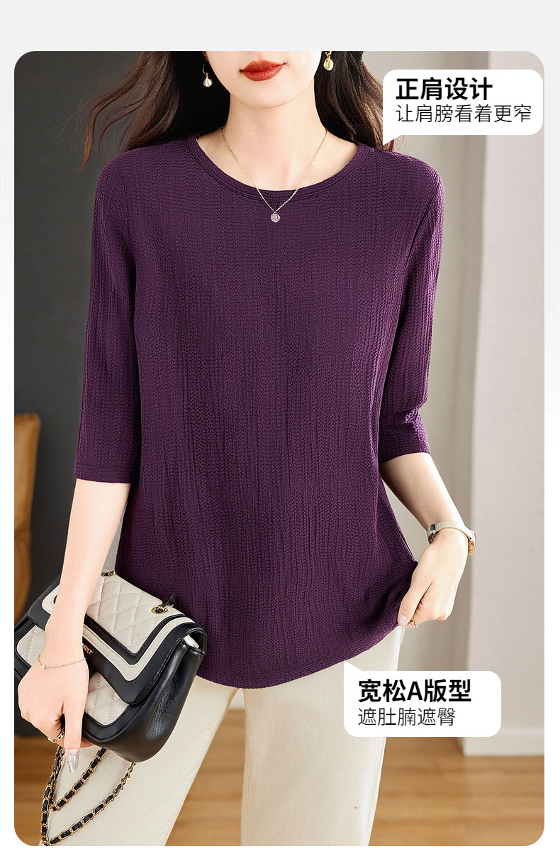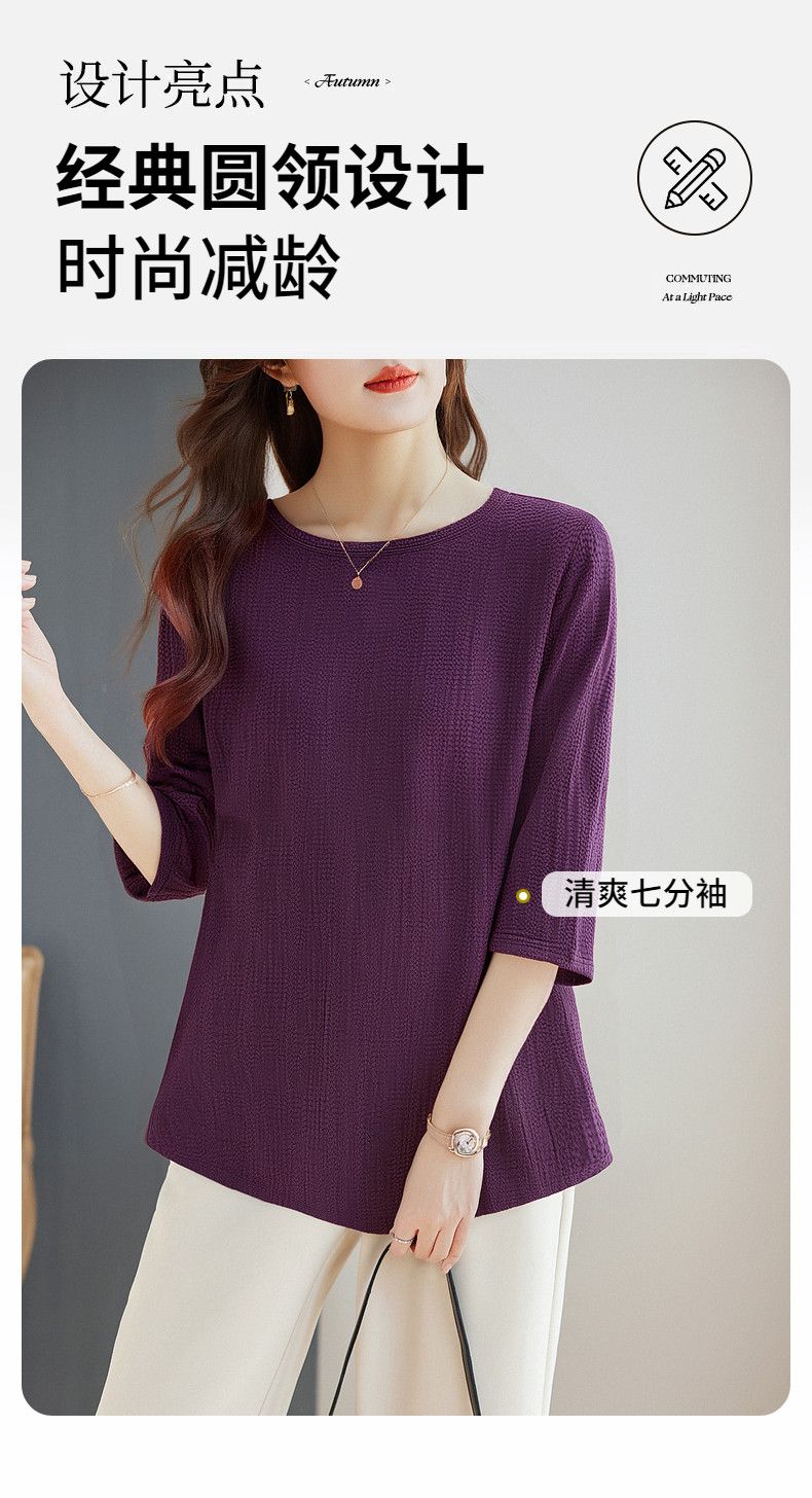 春季大码七分袖上衣女2026新款妈妈高端洋气小衫宽松女士中袖t恤