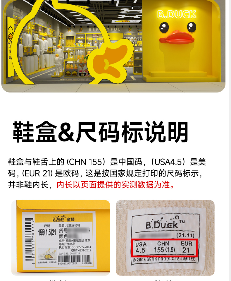 B.Duck小黄鸭童鞋夏季男女童儿童运动鞋28-35 B1686879