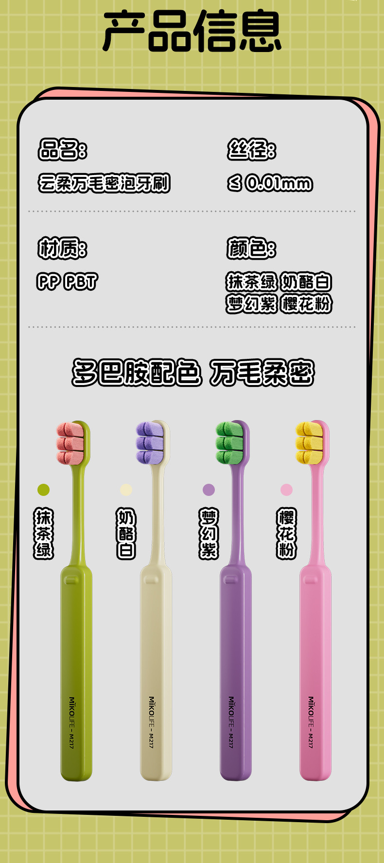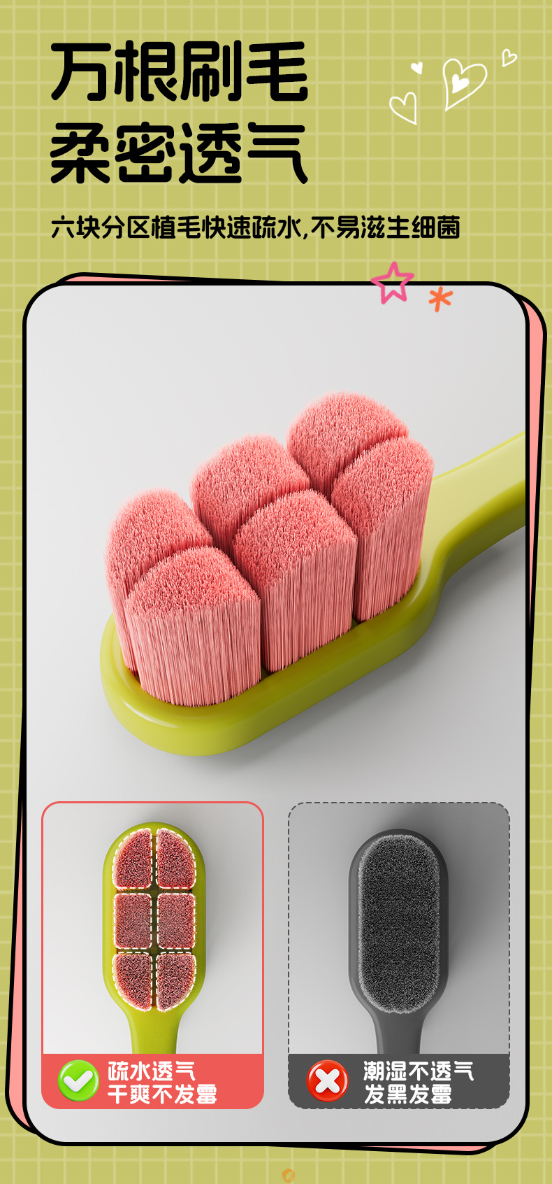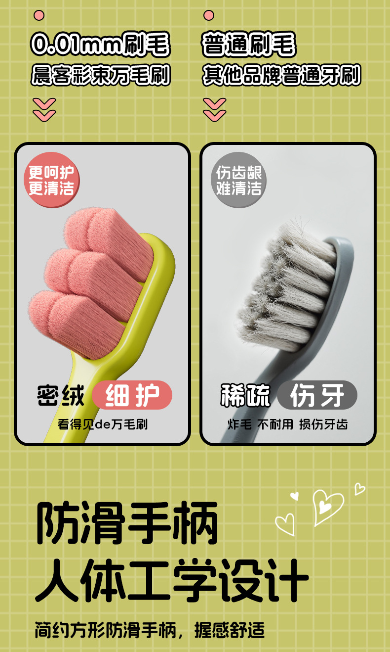 「9.9到手!高颜值云柔软毛牙刷」晨客万毛成人牙刷软毛立包装小头月子情侣牙刷口腔护理