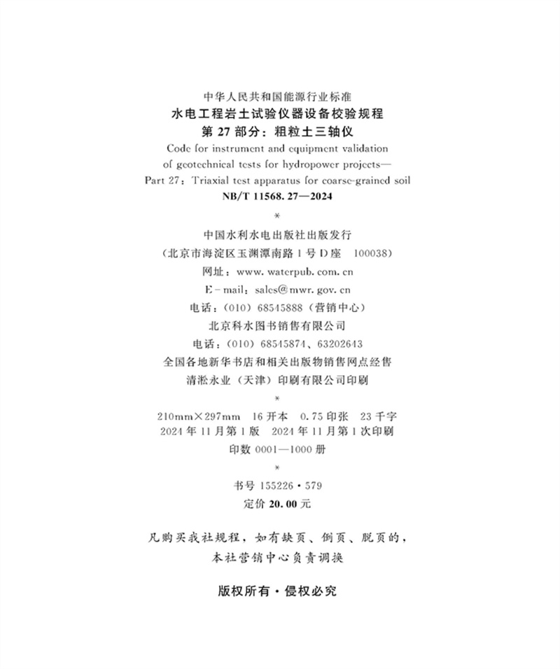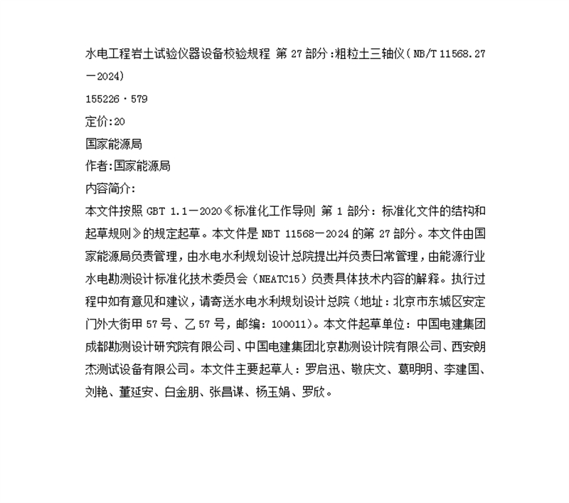 水电工程岩土试验仪器设备校验规程 第27部分:粗粒土三轴仪( NB/T 11568.27 —2024)