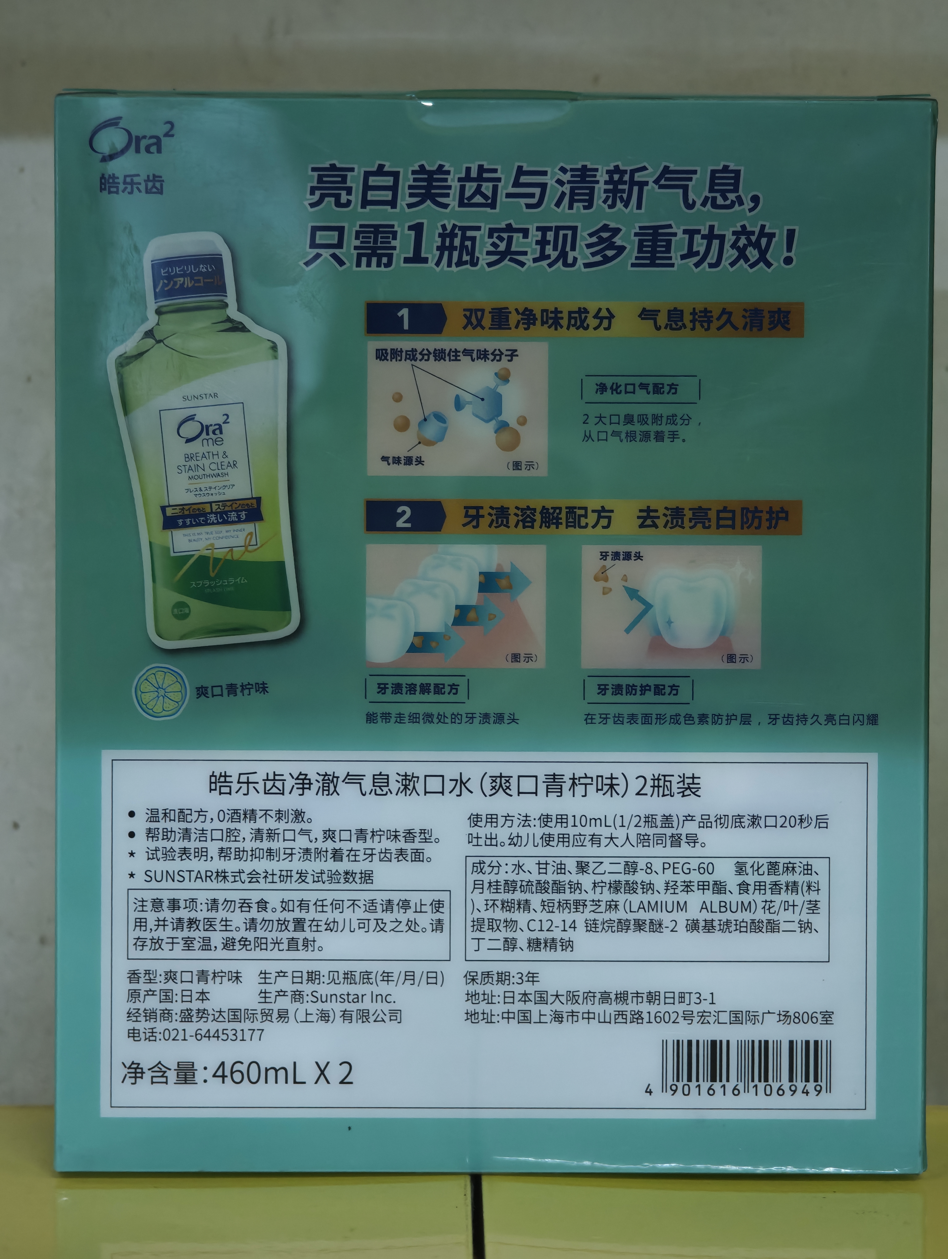盛势达 皓乐齿净澈气息漱口水2瓶装 460ml*2(爽口青柠味)