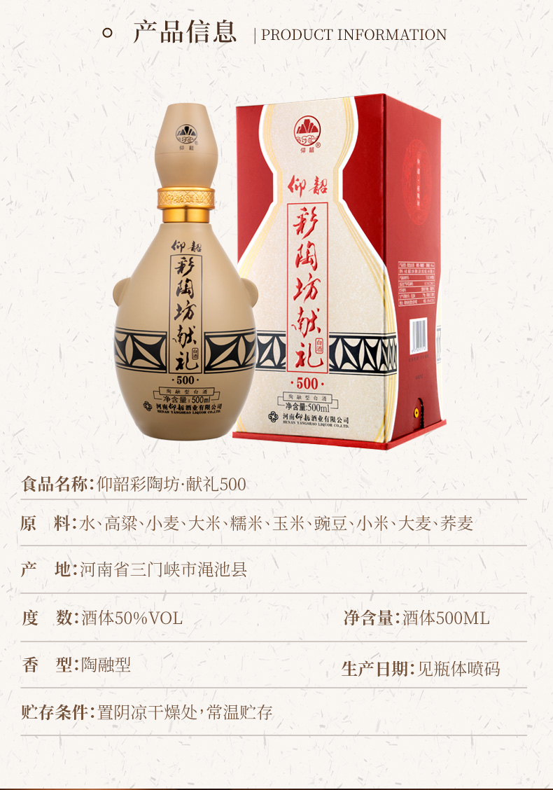 仰韶彩陶坊献礼500 50度500ml 礼盒版白酒【新老包装随机发货】