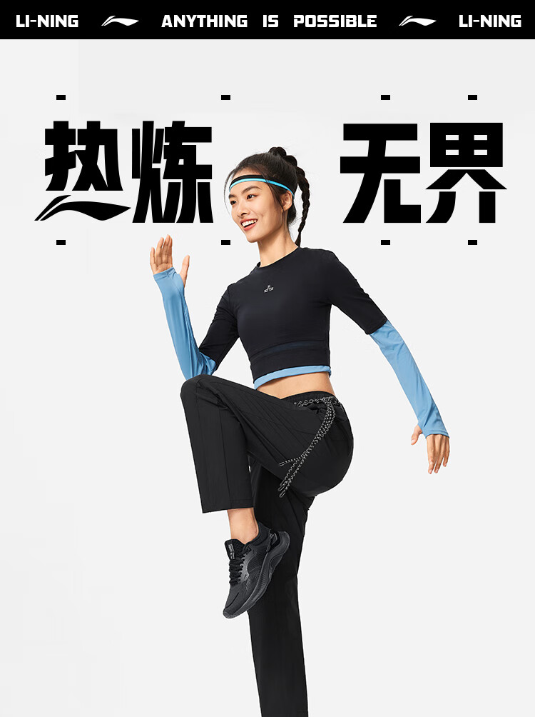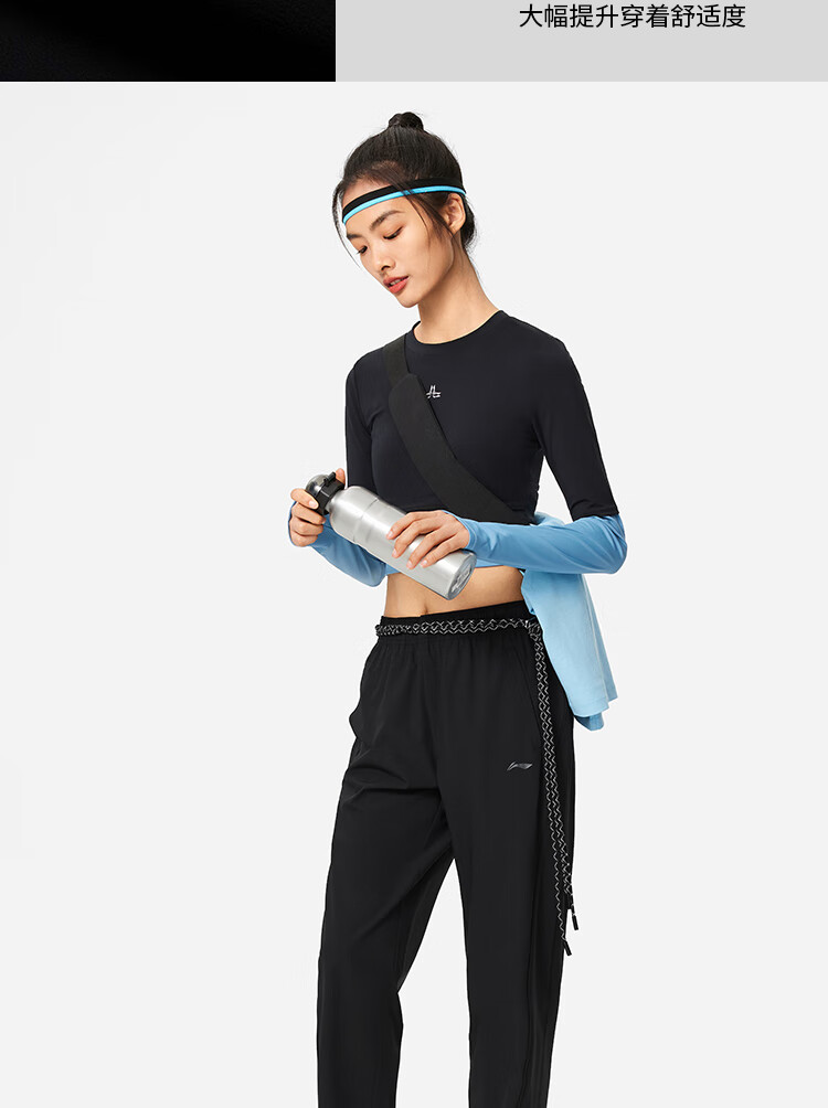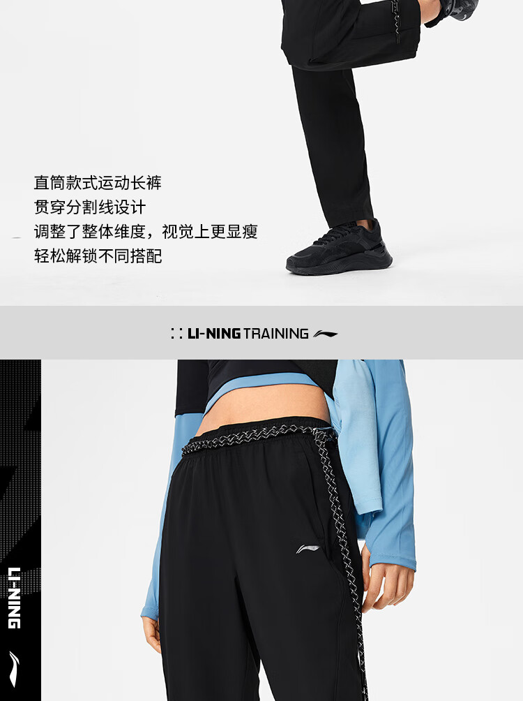 宁(LI-NING)2024春新款女子健身系列运动时尚休闲宽松软弹束脚卫裤 AKLU114