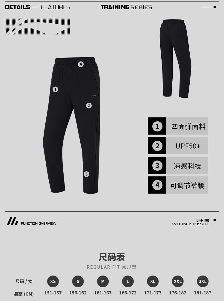 李宁冰感防晒运动裤女装2024夏季舒适纯色百搭直筒长裤子AYKU480