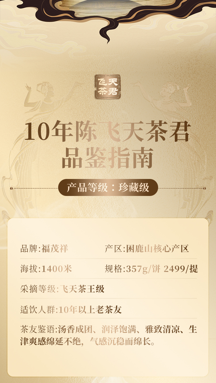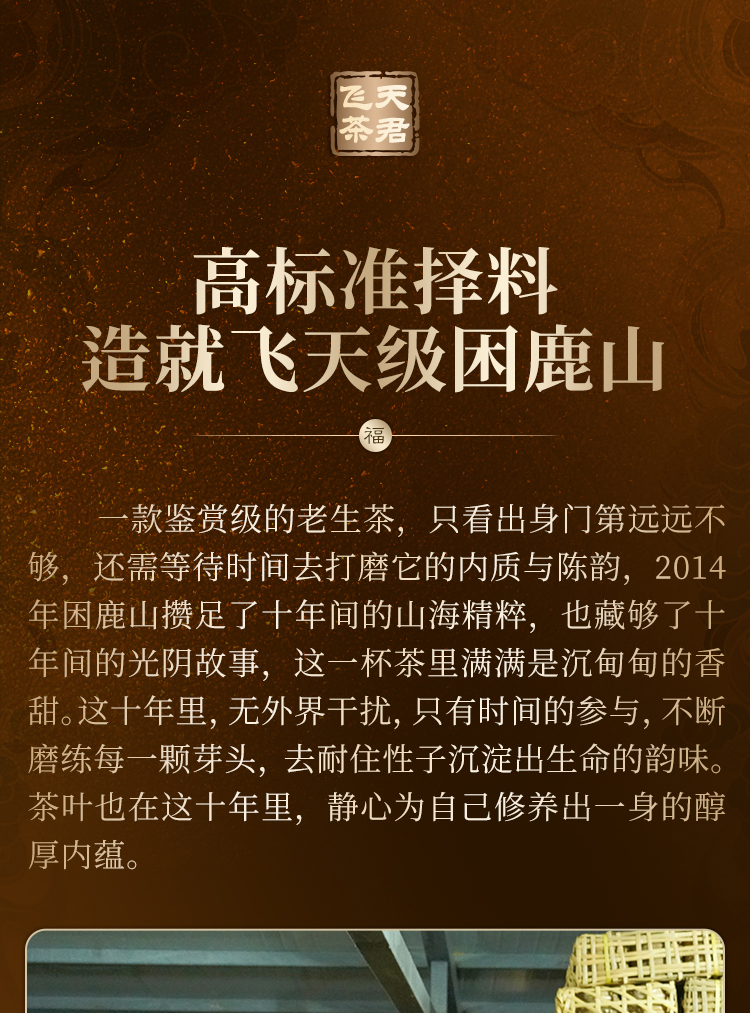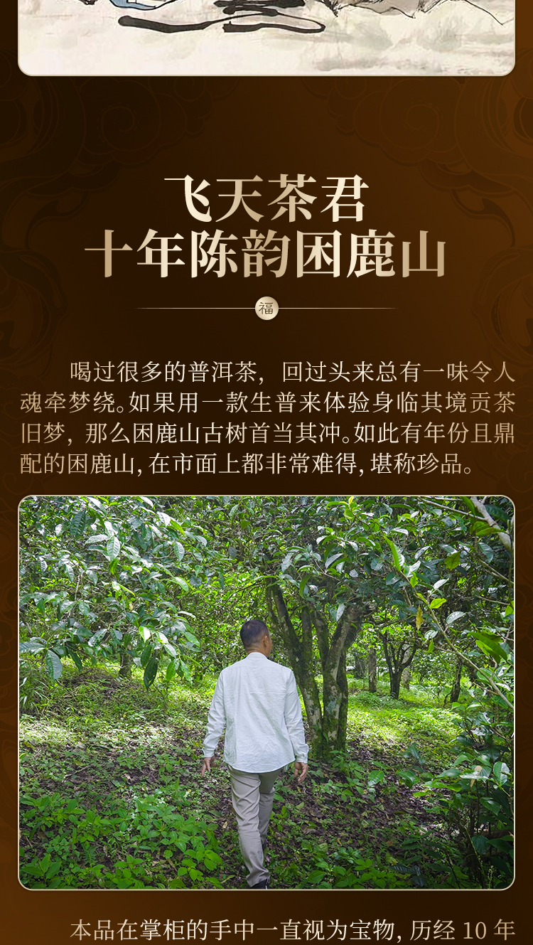【飞天茶君】10年陈 现存困鹿山年份天花板 2014年春茶云南普洱茶区困鹿山普洱茶古树纯料生茶饼357g