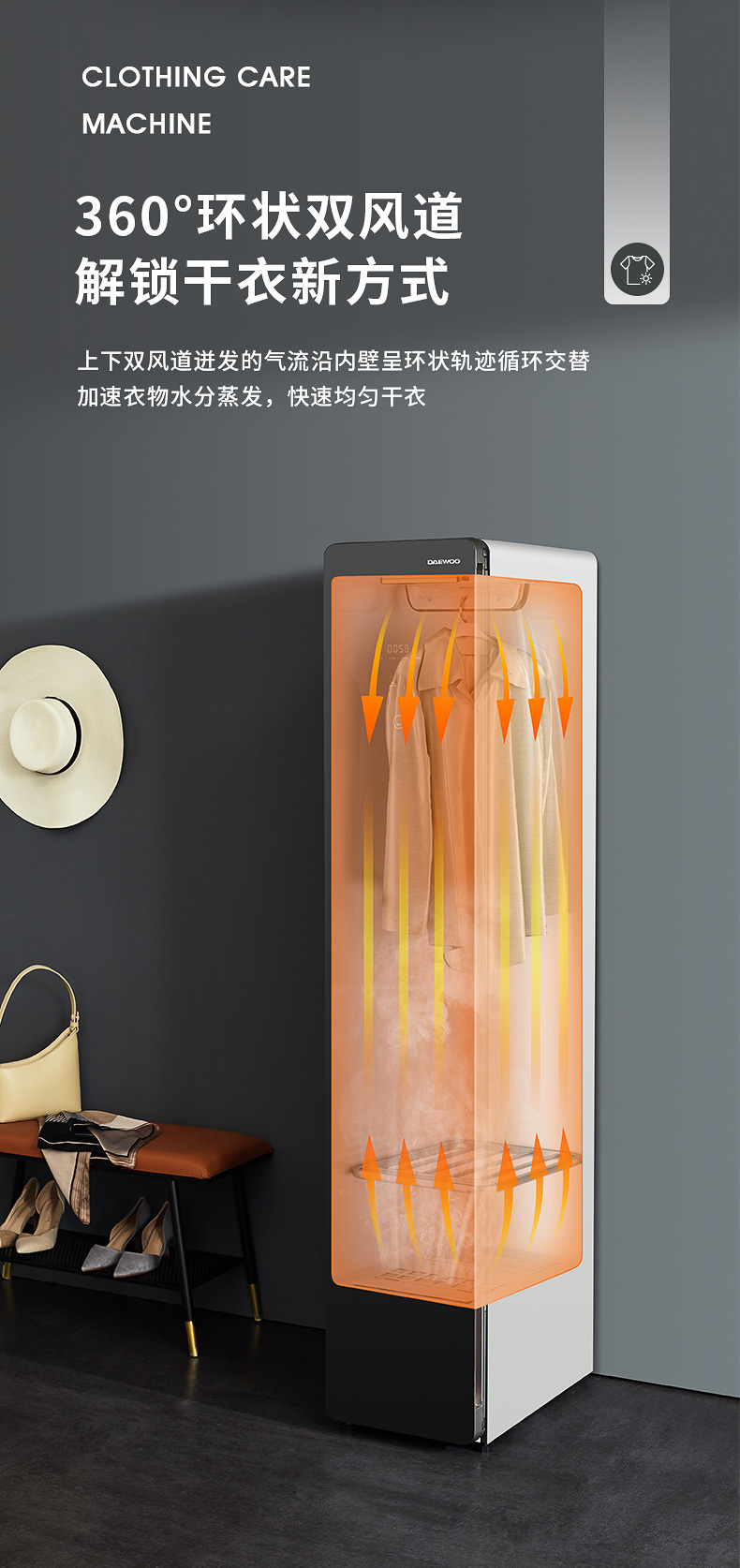 韩国大宇嵌入式家用智能衣物护理机热泵烘干熨烫机衣服蒸汽杀菌机