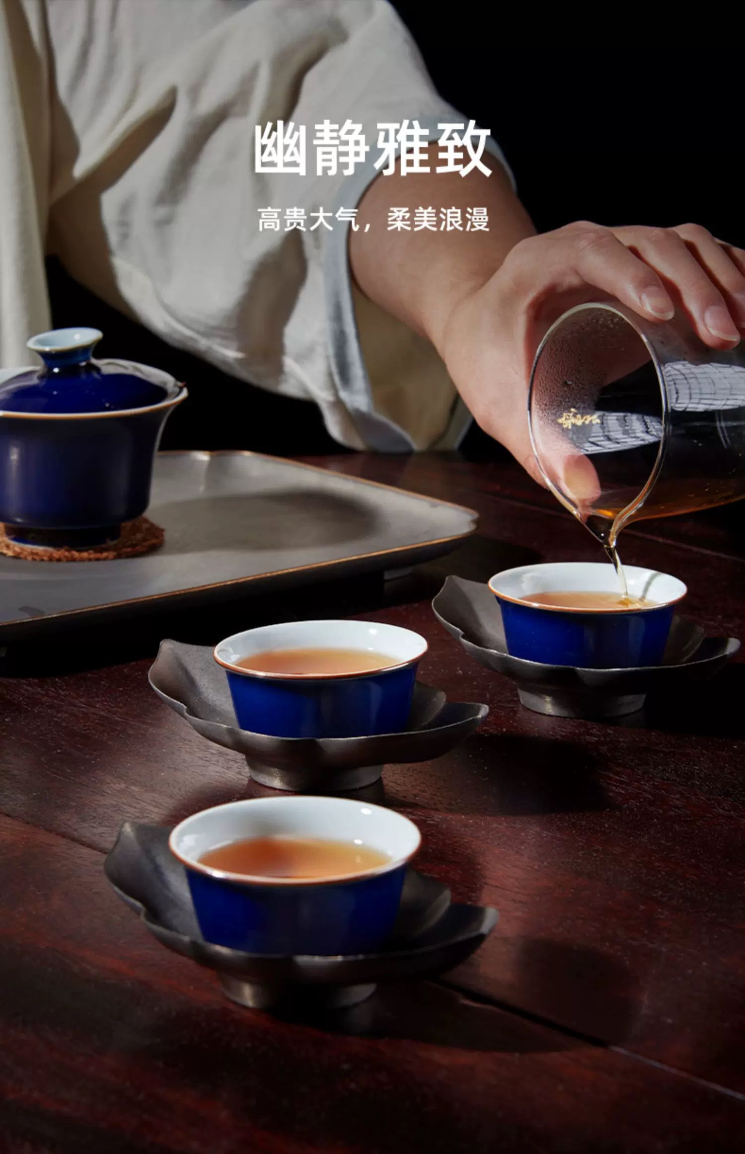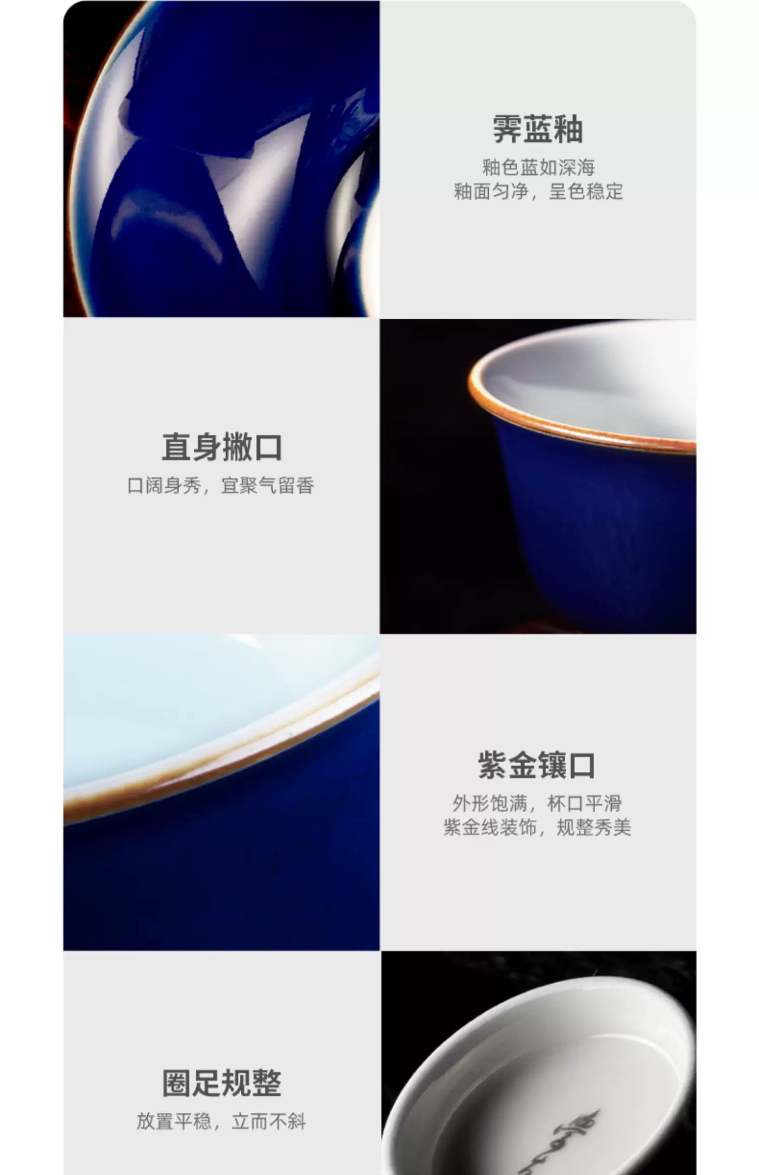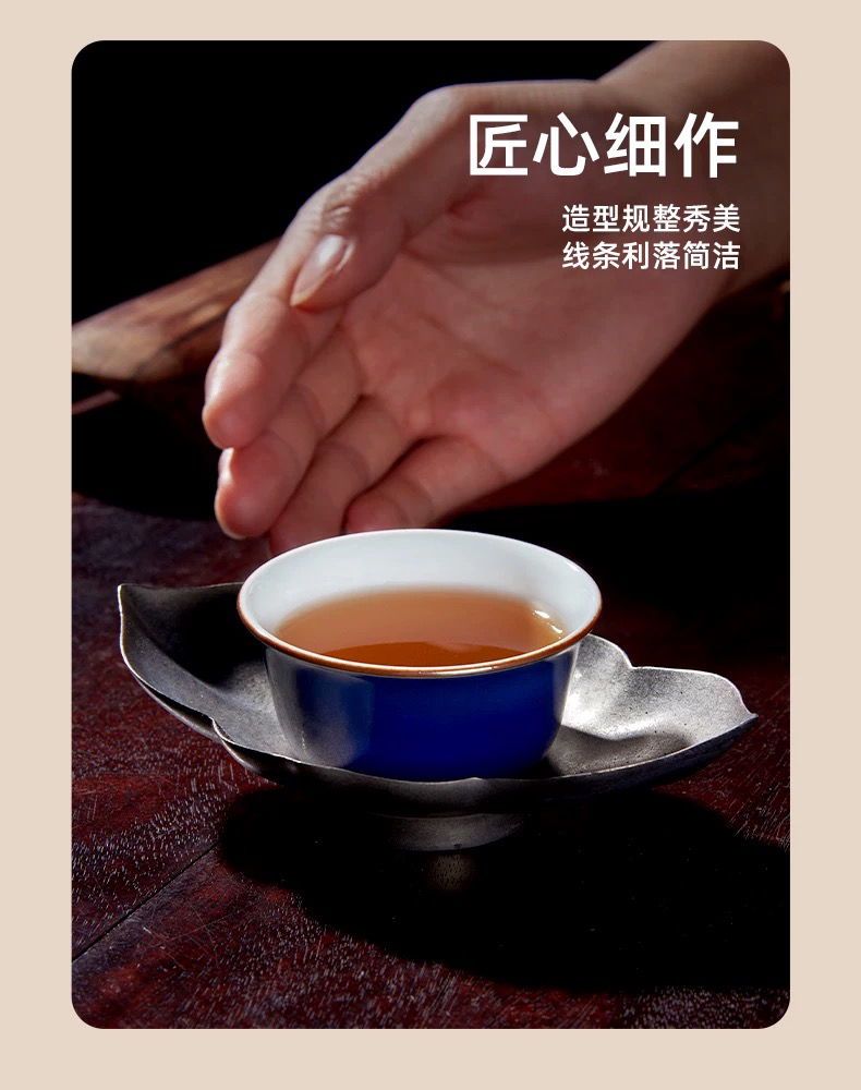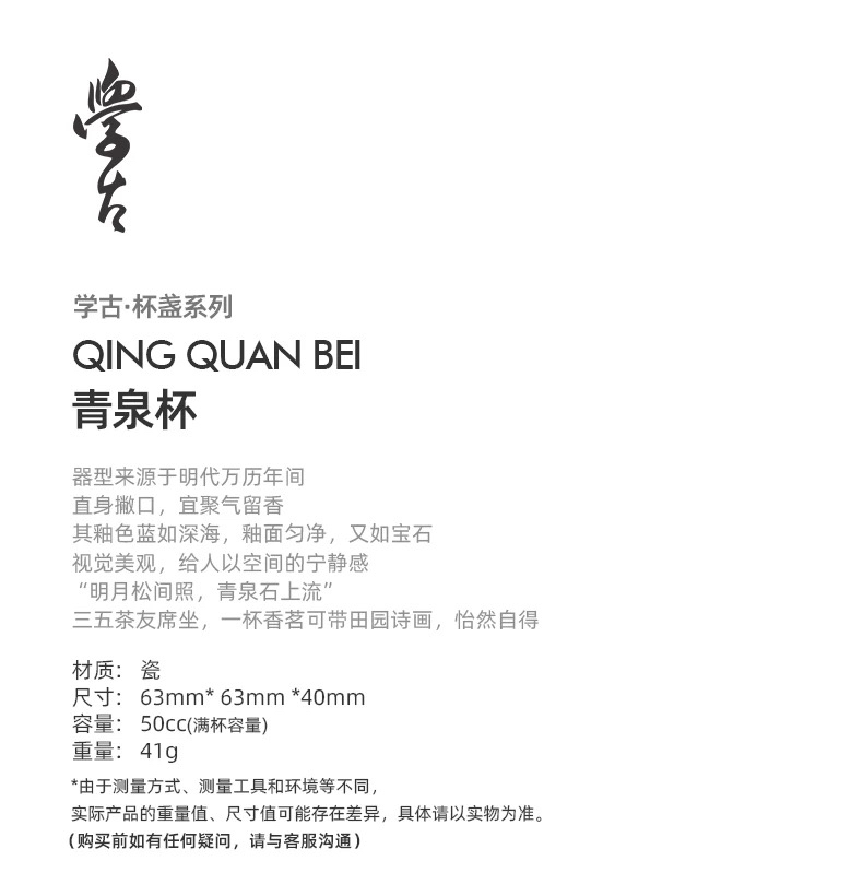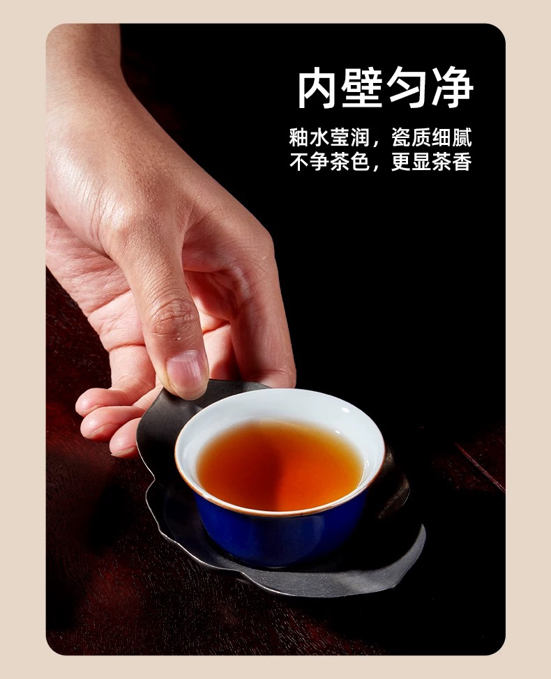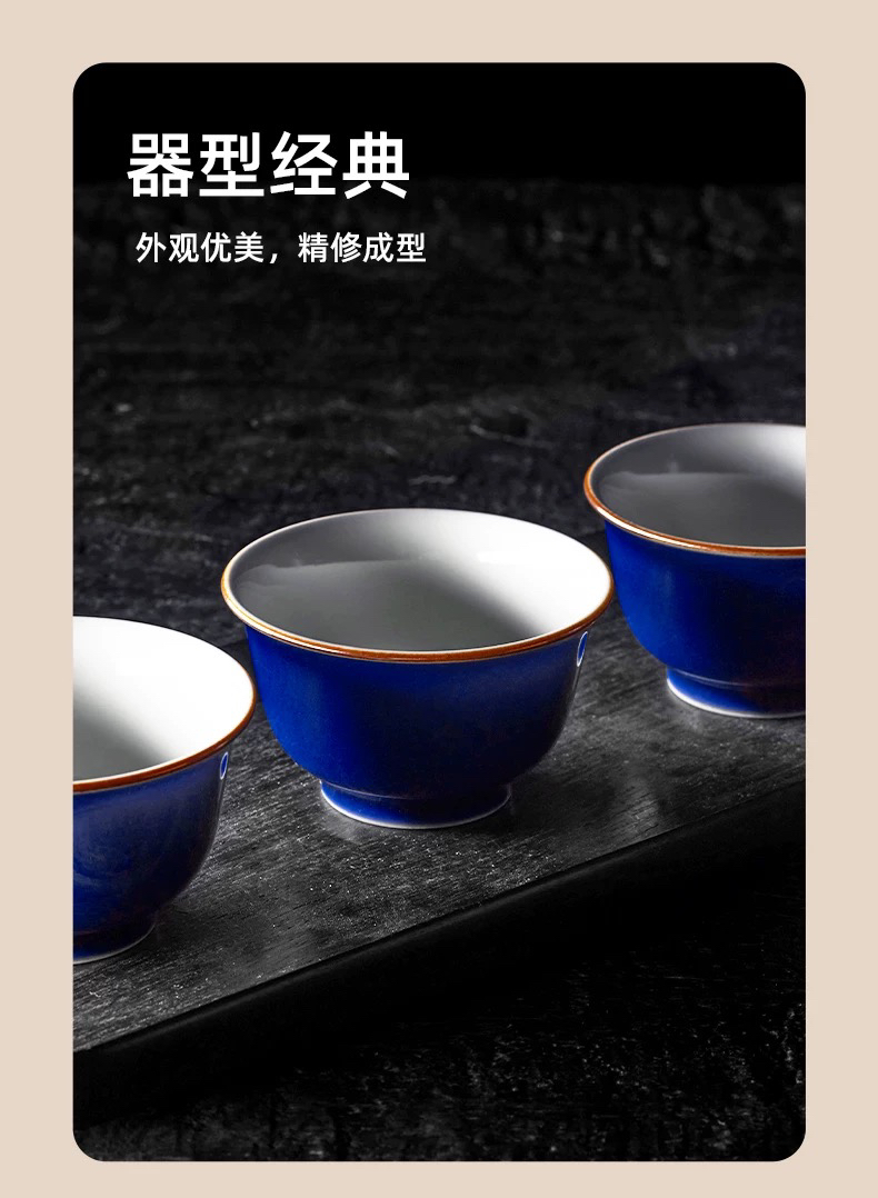 学古|青泉杯 霁蓝釉景德镇陶瓷功夫茶具茶器6只礼盒装 50ml