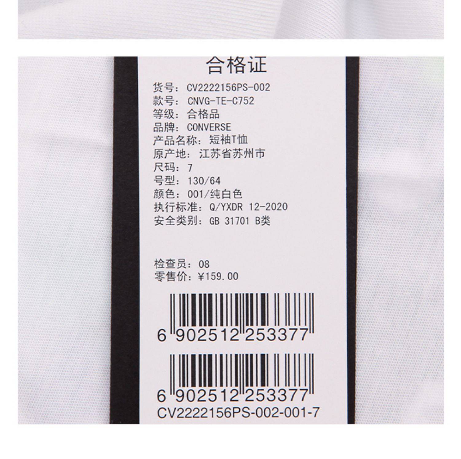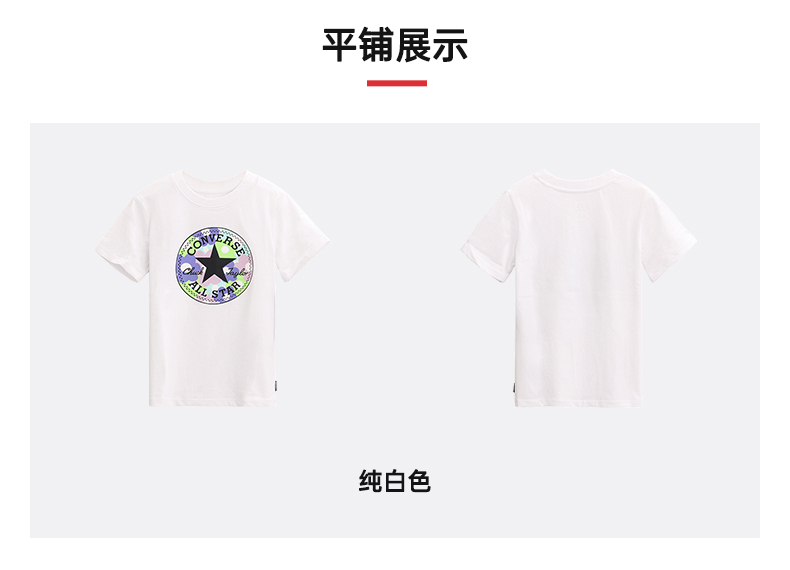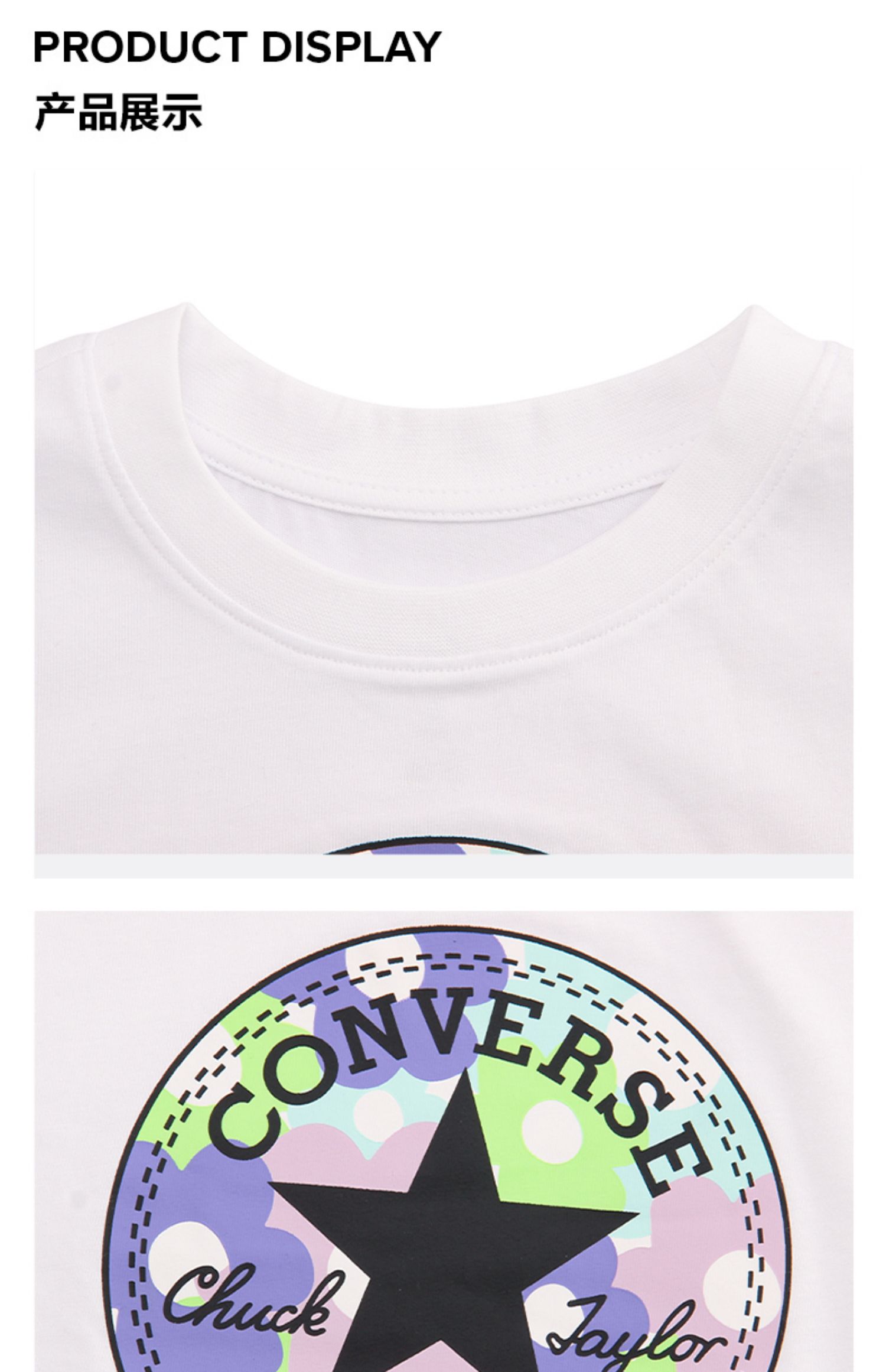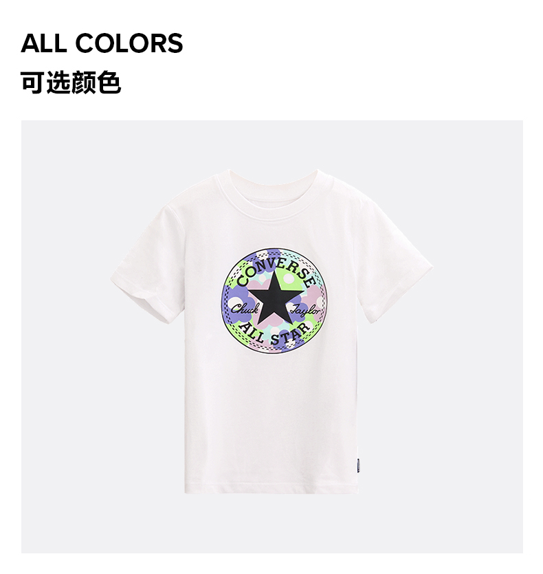 CONVERSE/匡威童装夏新款女儿童圆领印花纯色短袖T恤CV2222156