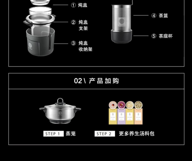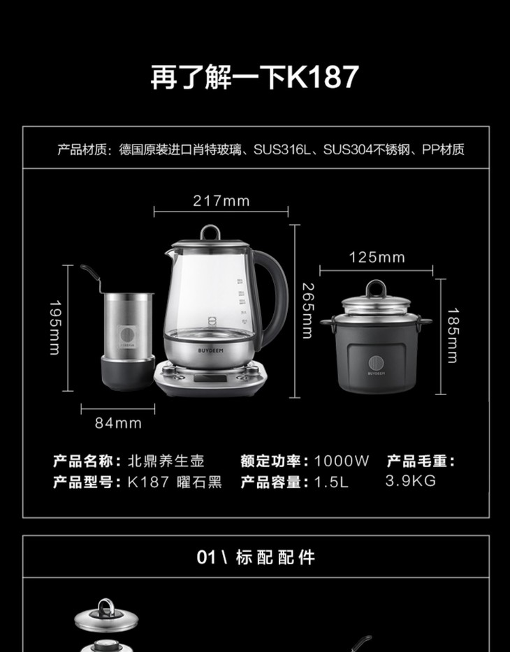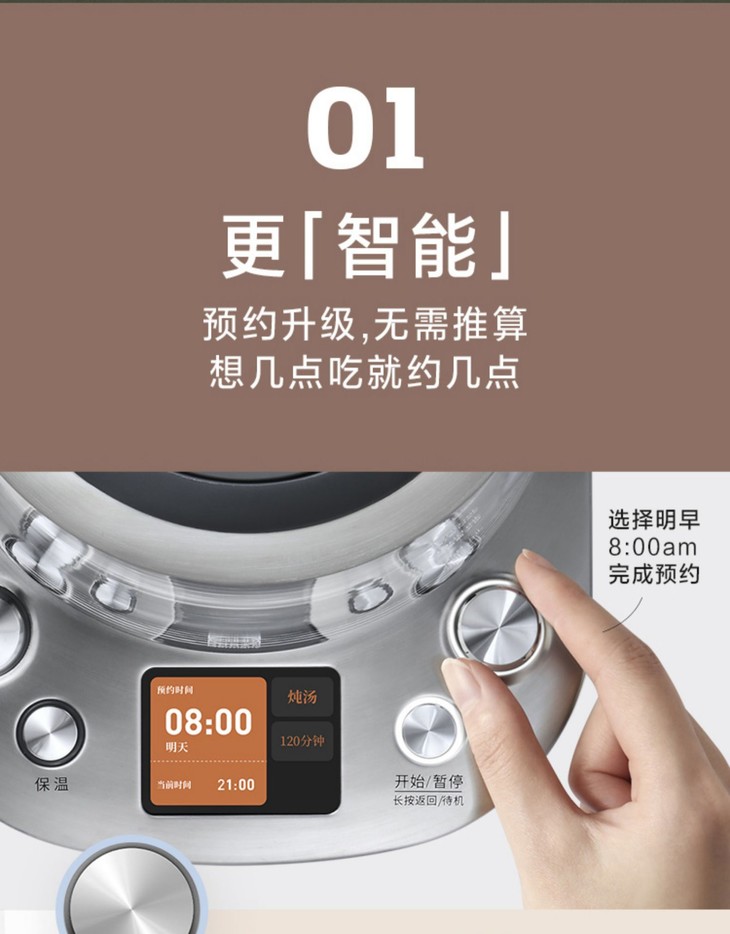 【北鼎】北鼎K187养生壶进口316L不锈钢高端智能预约调时蒸早餐壶
