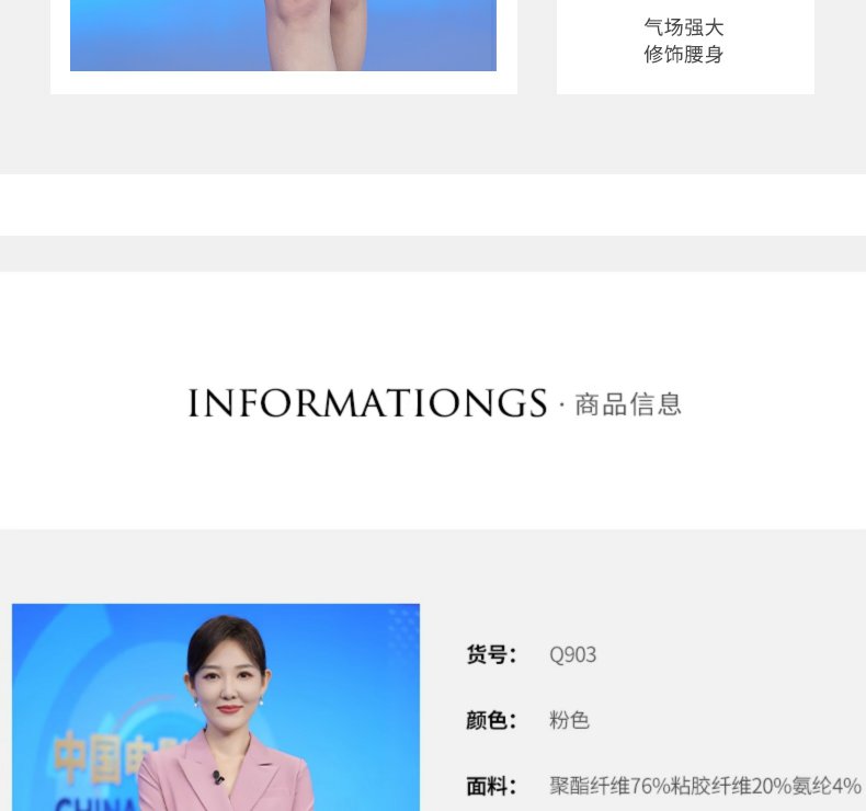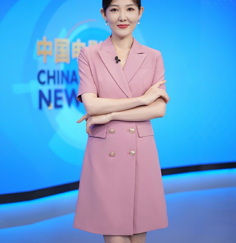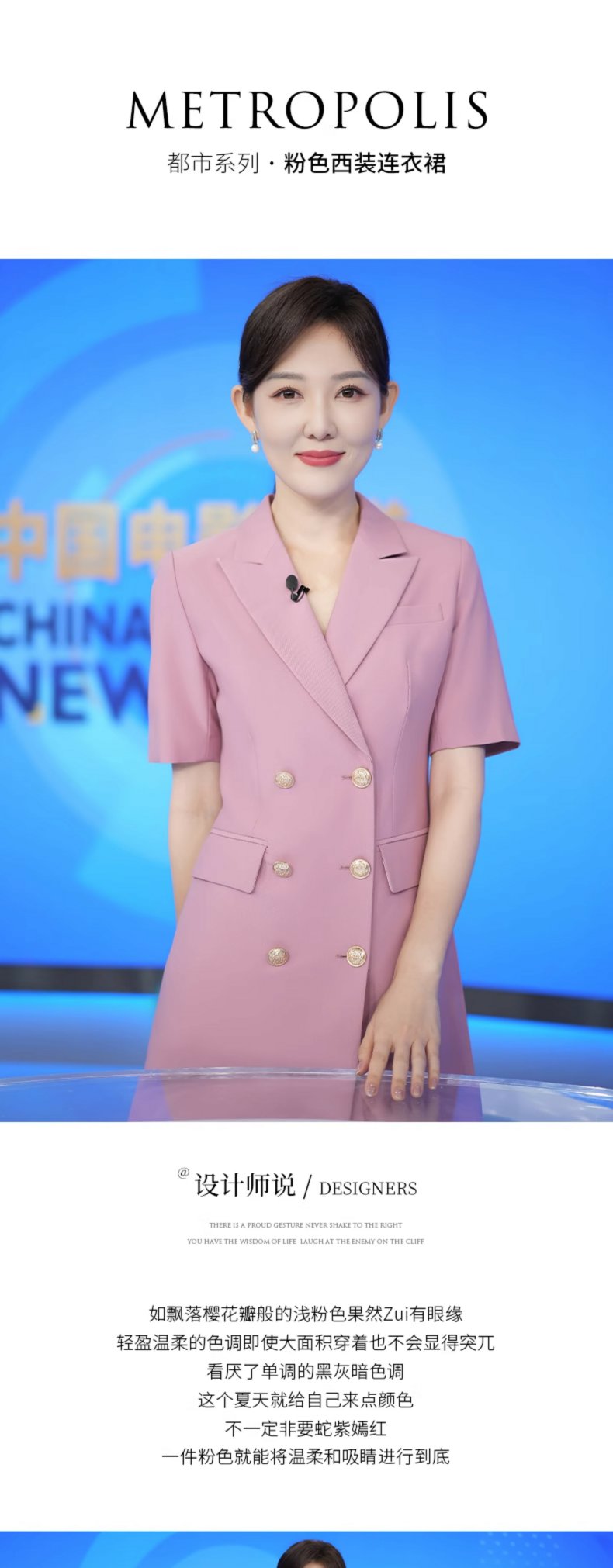 法小曼*子珍专款/粉色主持人西装三件套气质职场主持穿搭