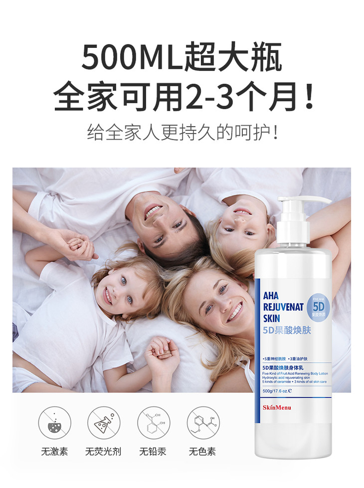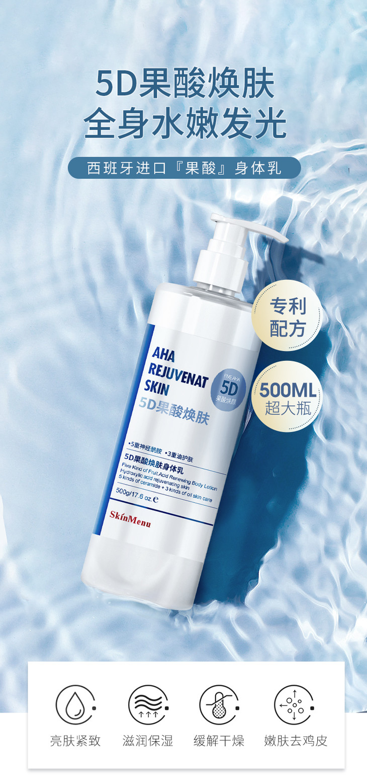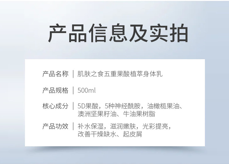 2瓶装【肌肤之食5D果酸焕肤身体乳】五重果酸植萃 改善鸡皮/干皮/暗沉瘙痒/水润焕亮 清香怡人清爽不油腻