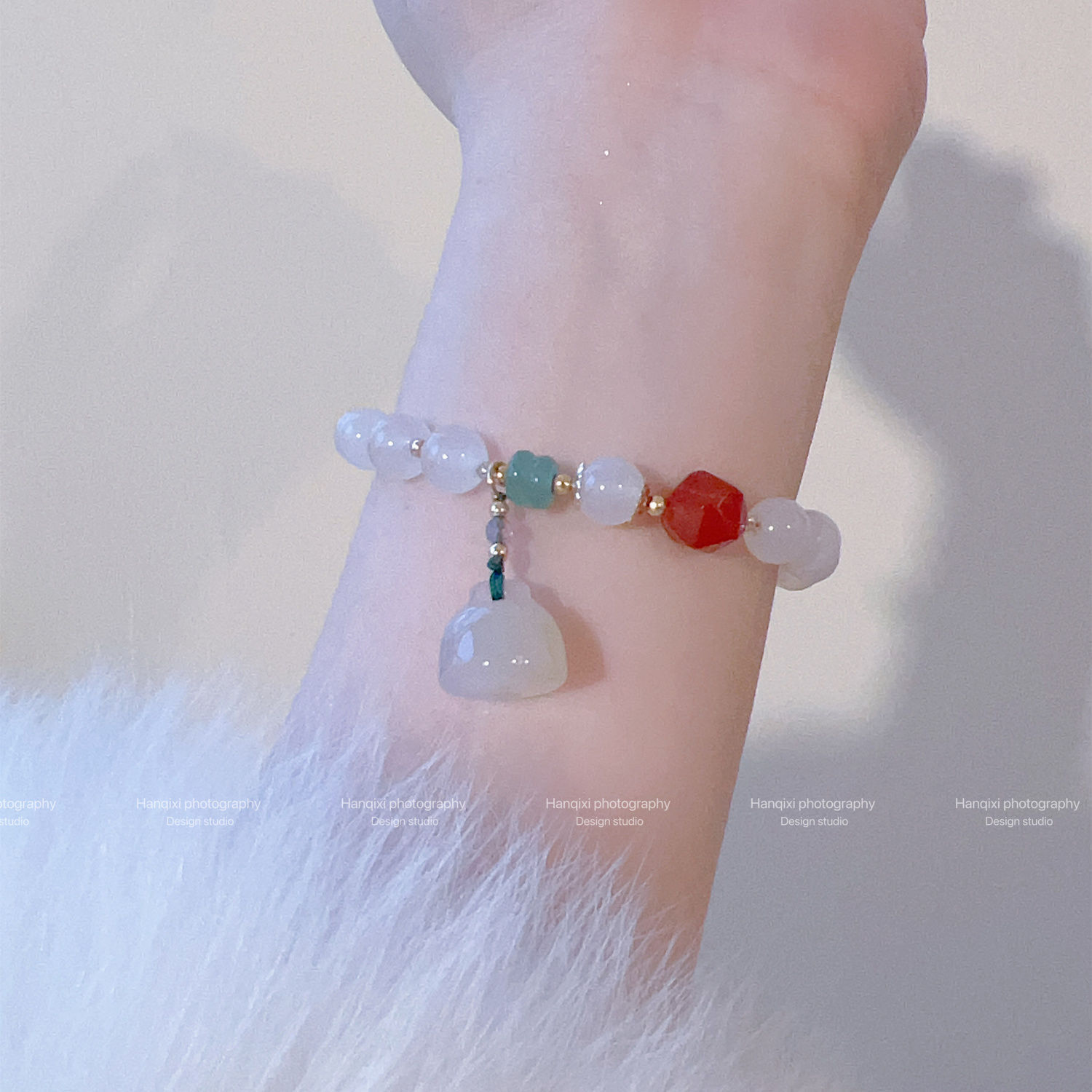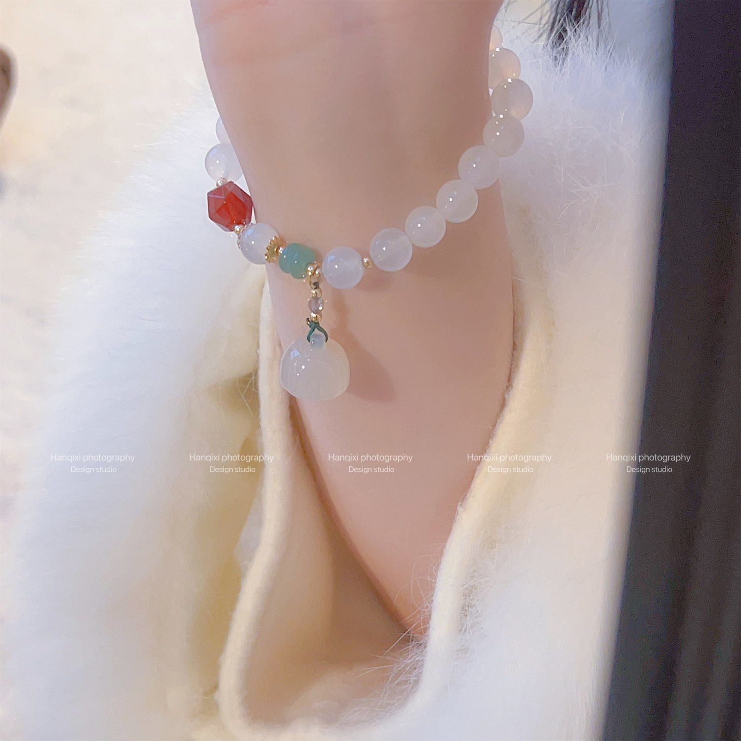 【超值购19.9抢❗荔枝白冻玉髓手链】高级感满满,复古汉服神器,弹力设计百搭不挑手,莲藕手链ins风高级感手镯汉服配饰饰品QQ
