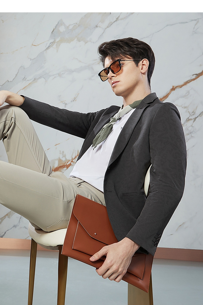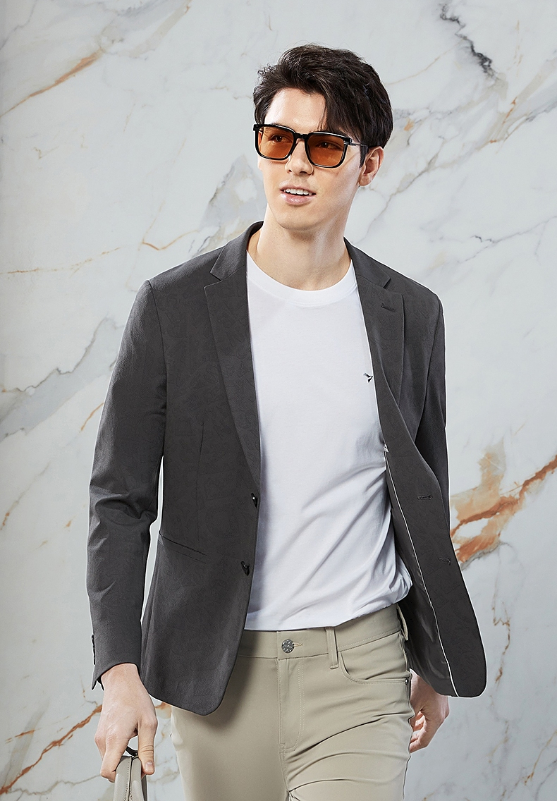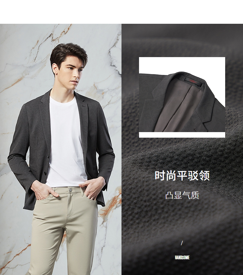 【高端系列】柒牌休闲西服男含莱赛尔泡泡纱肌理印花男士西装外套 126C70310