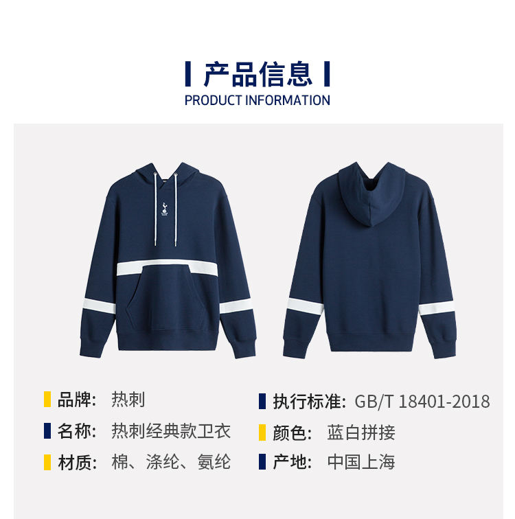 小李子:专柜正品托特纳姆热刺 潮流足球运动连帽套头百搭卫衣男