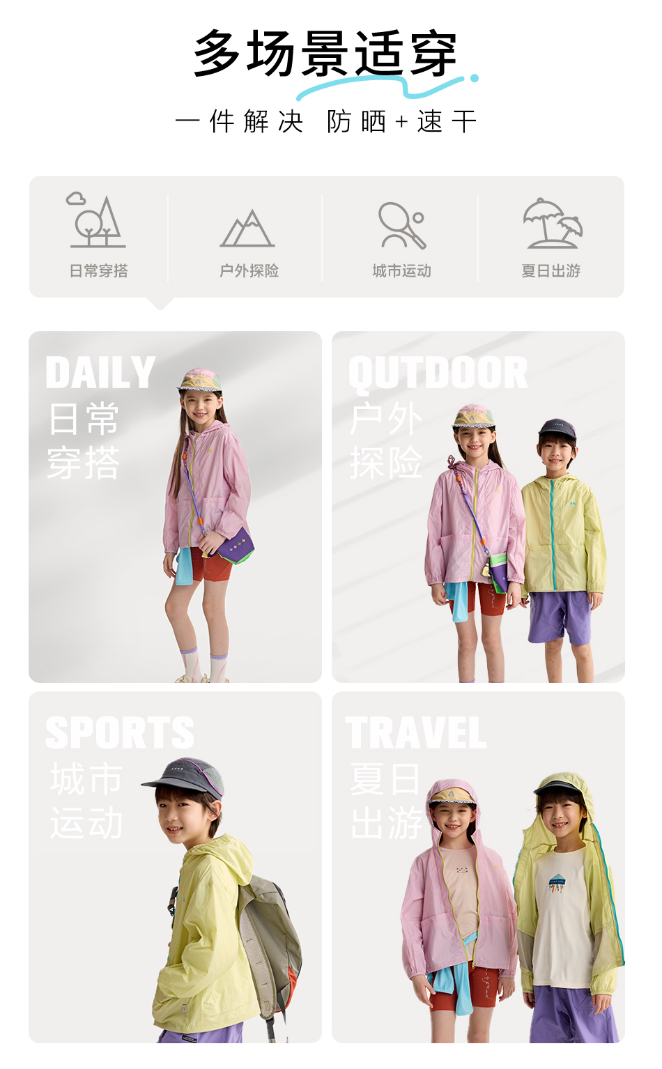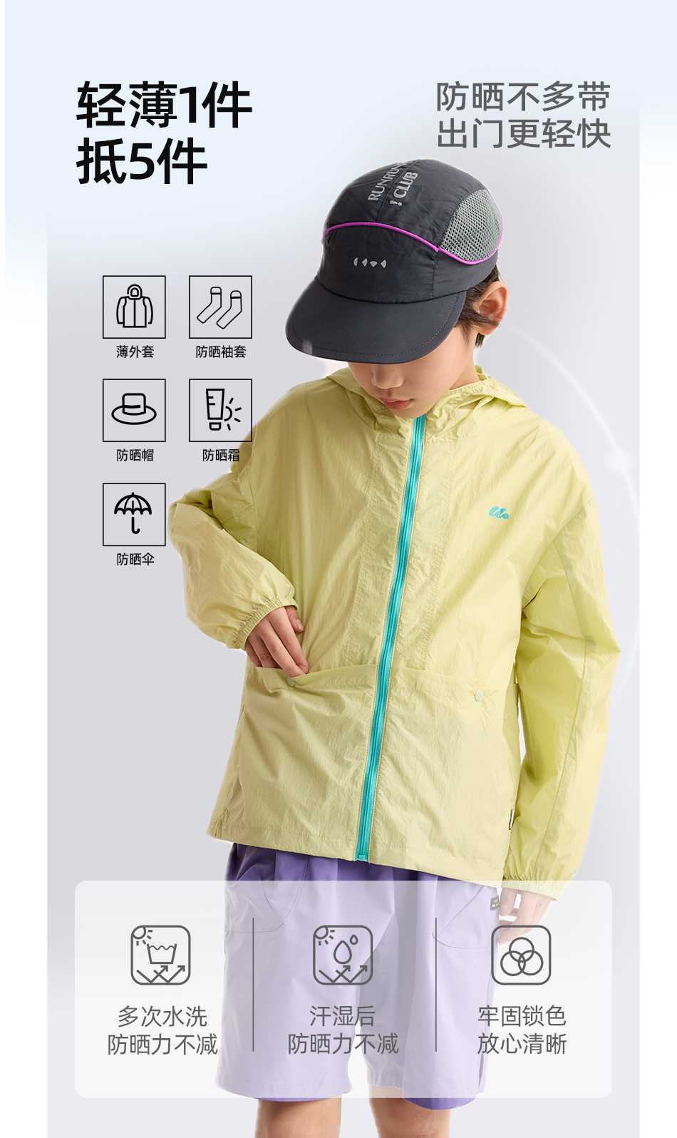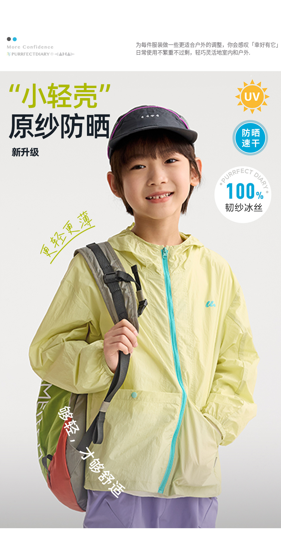 fx-咕噜日记儿童大口袋原纱防晒衣2026春夏女童超轻连帽外套男童户外PXWT2602