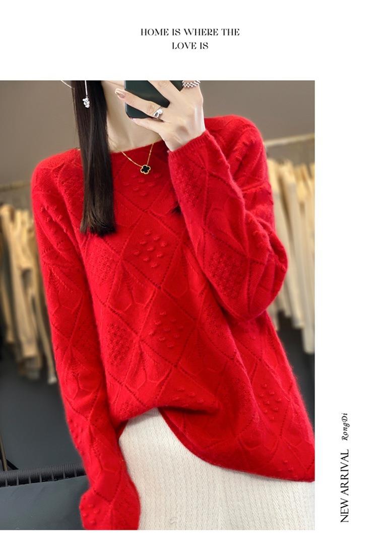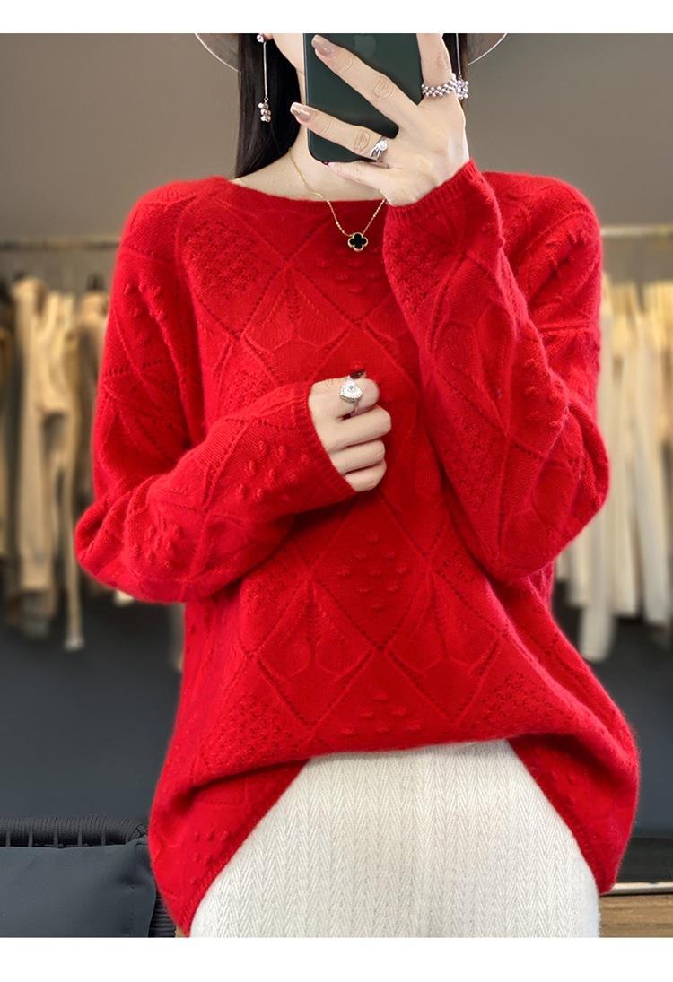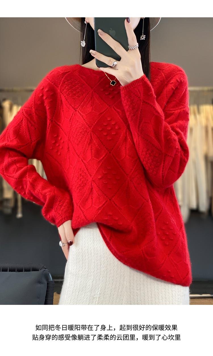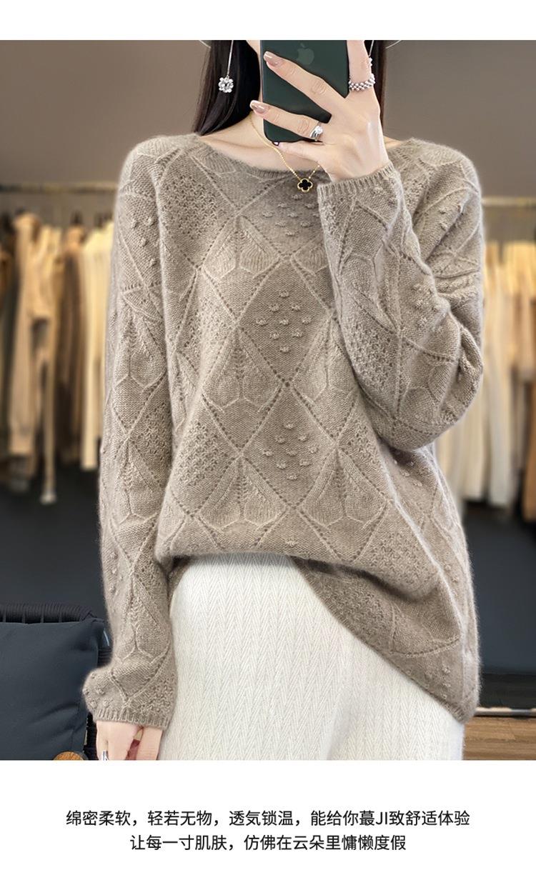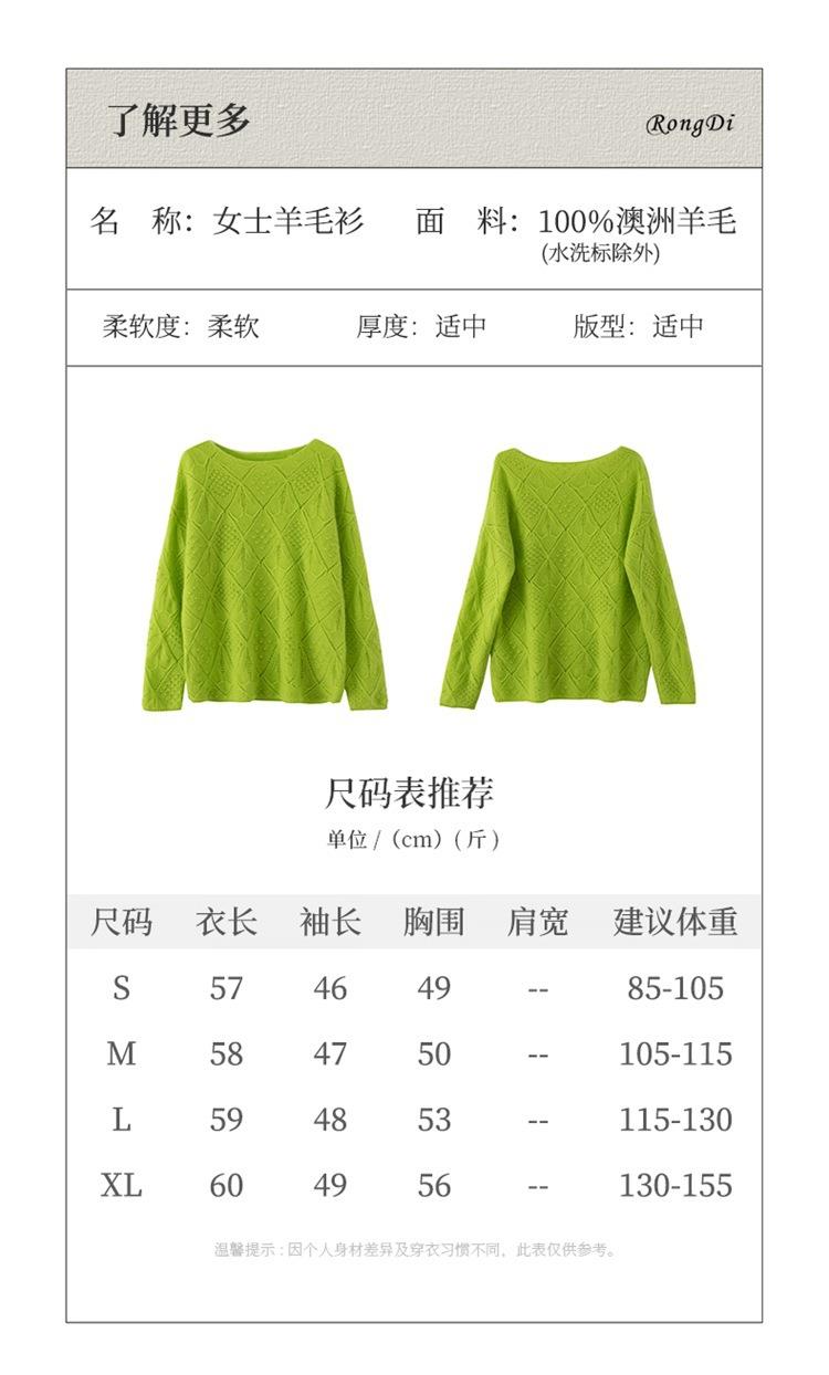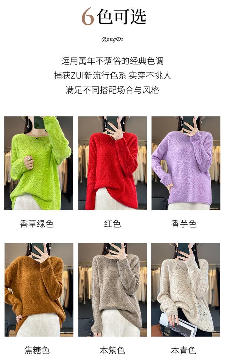 2023年秋冬新款韩版女士纯羊毛圆领长袖菱形针织纯色套头羊毛衫