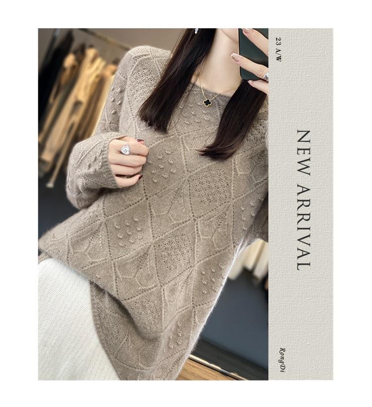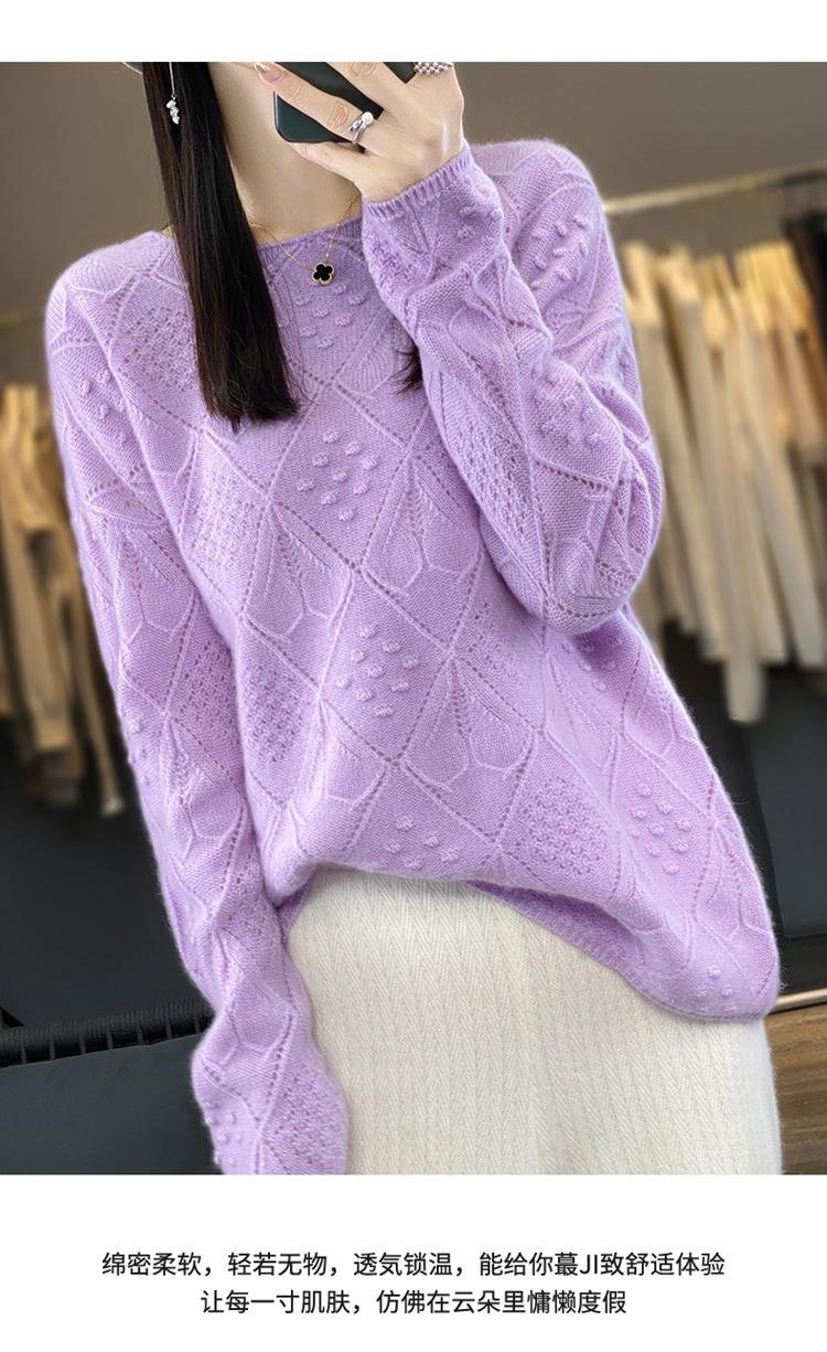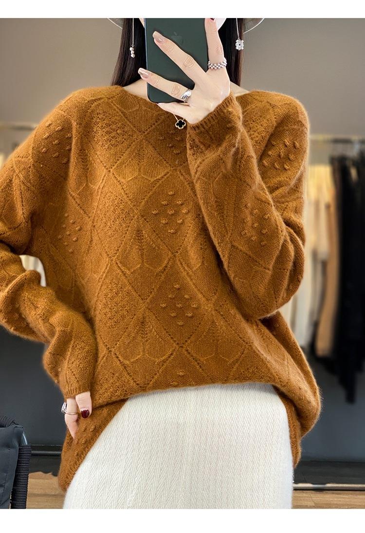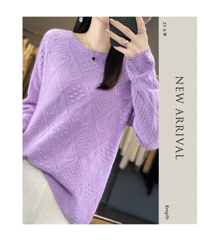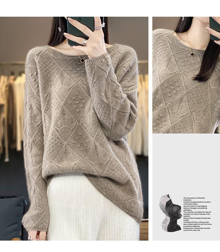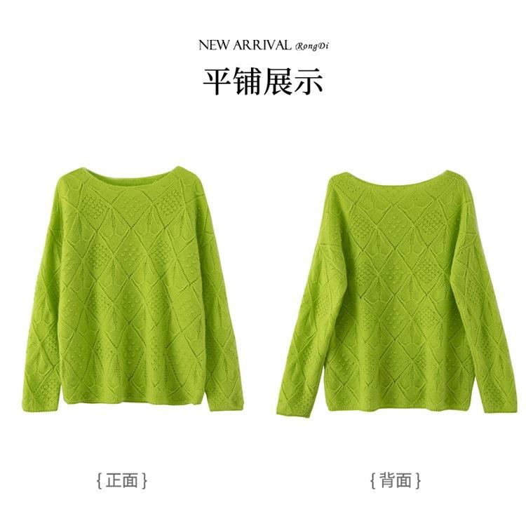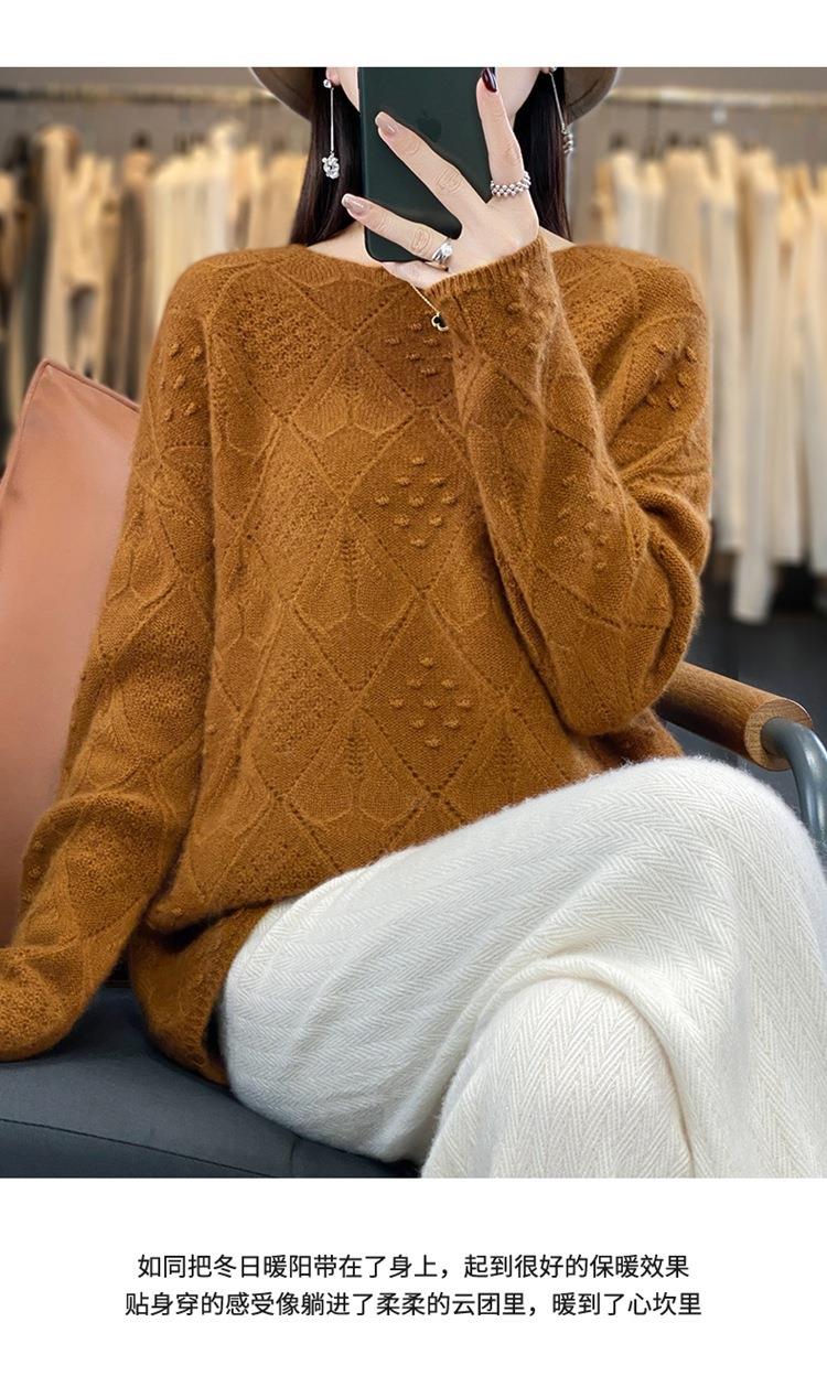 2023年秋冬新款韩版女士纯羊毛圆领长袖菱形针织纯色套头羊毛衫