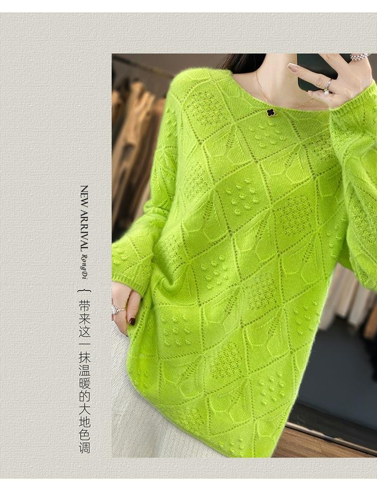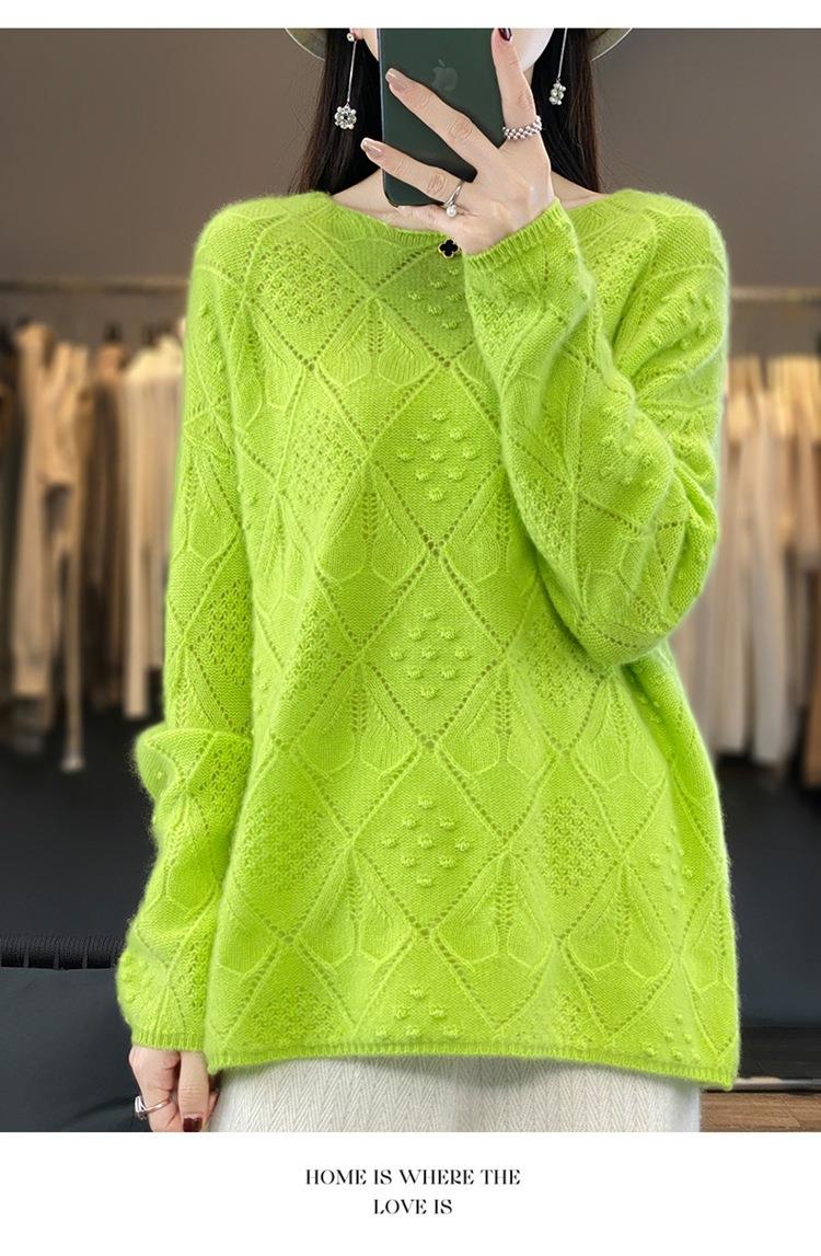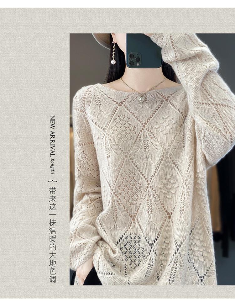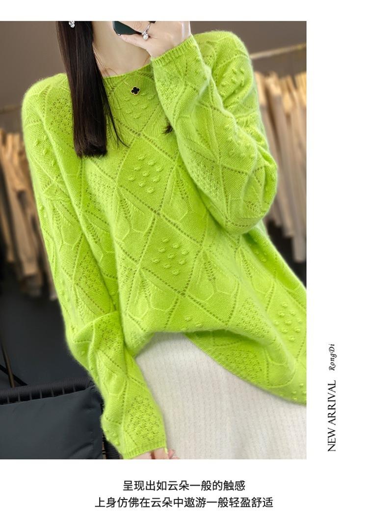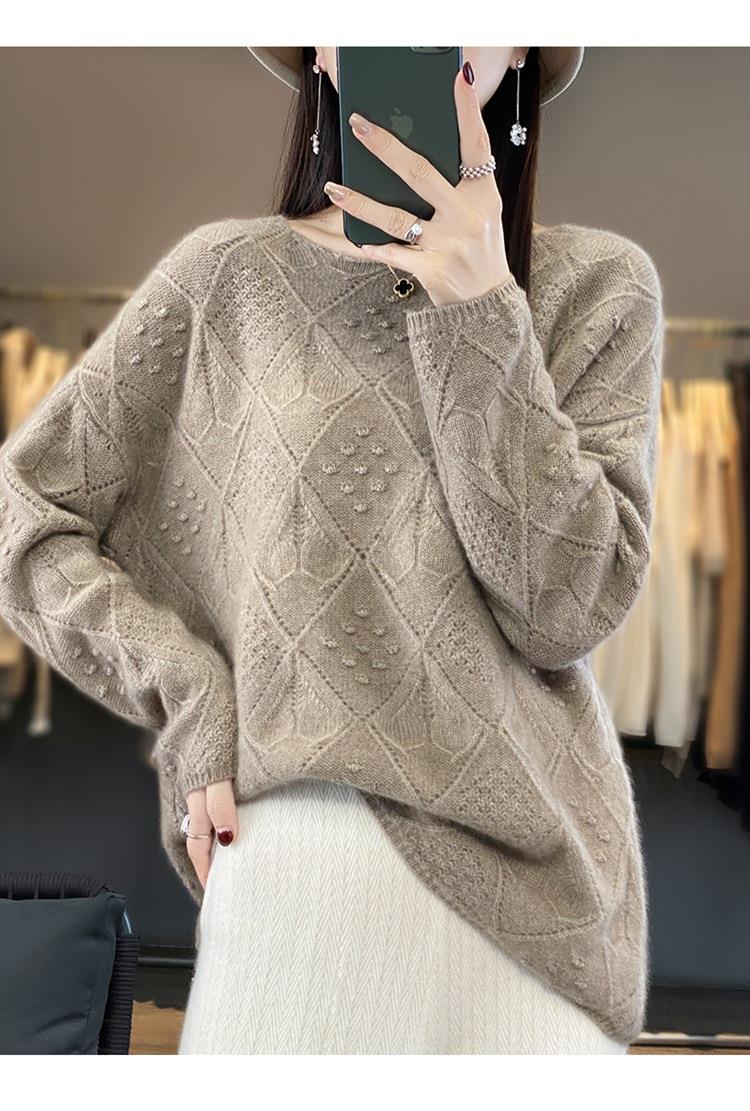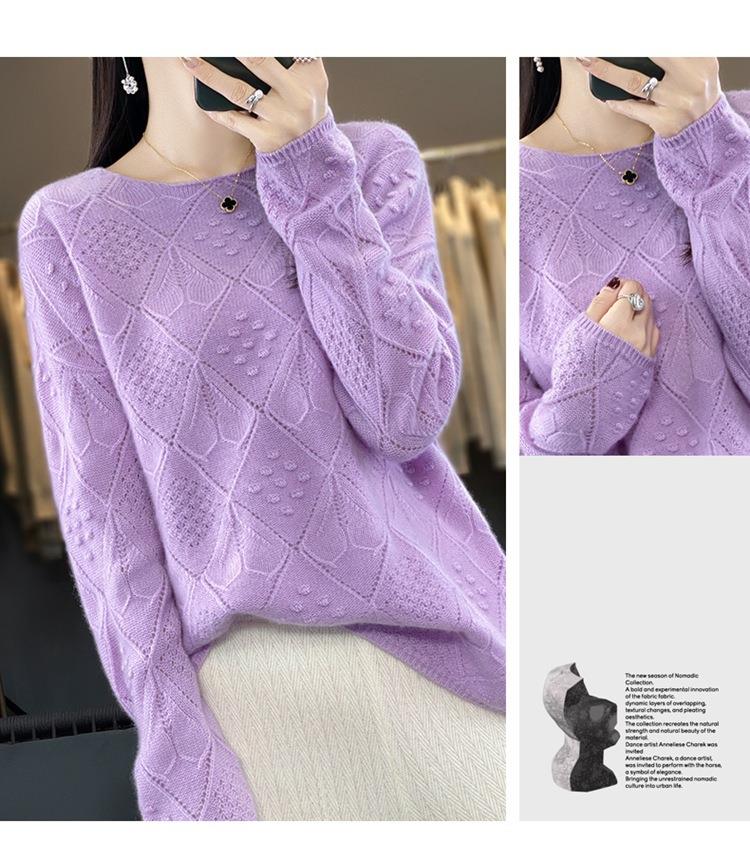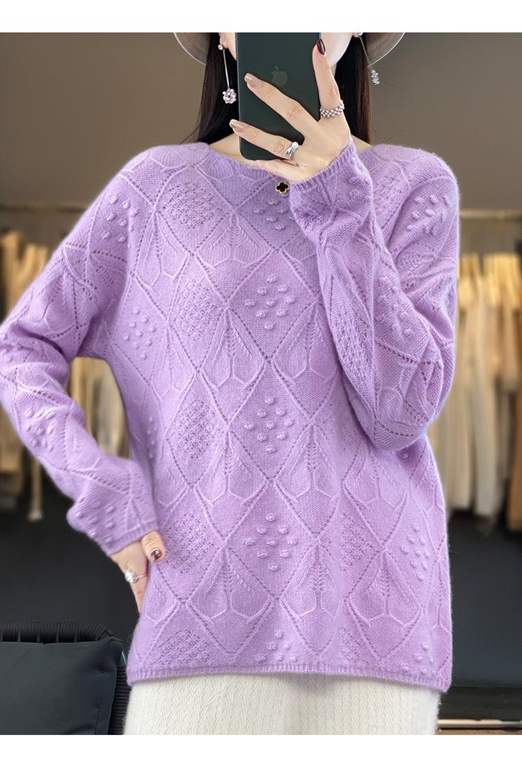 2023年秋冬新款韩版女士纯羊毛圆领长袖菱形针织纯色套头羊毛衫