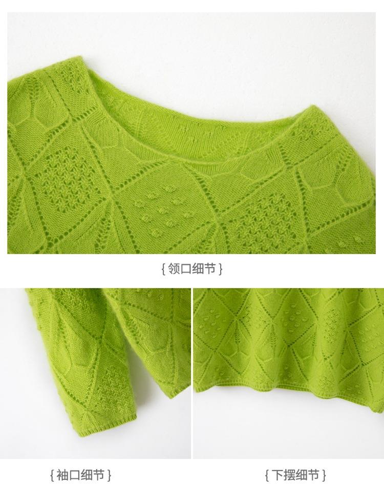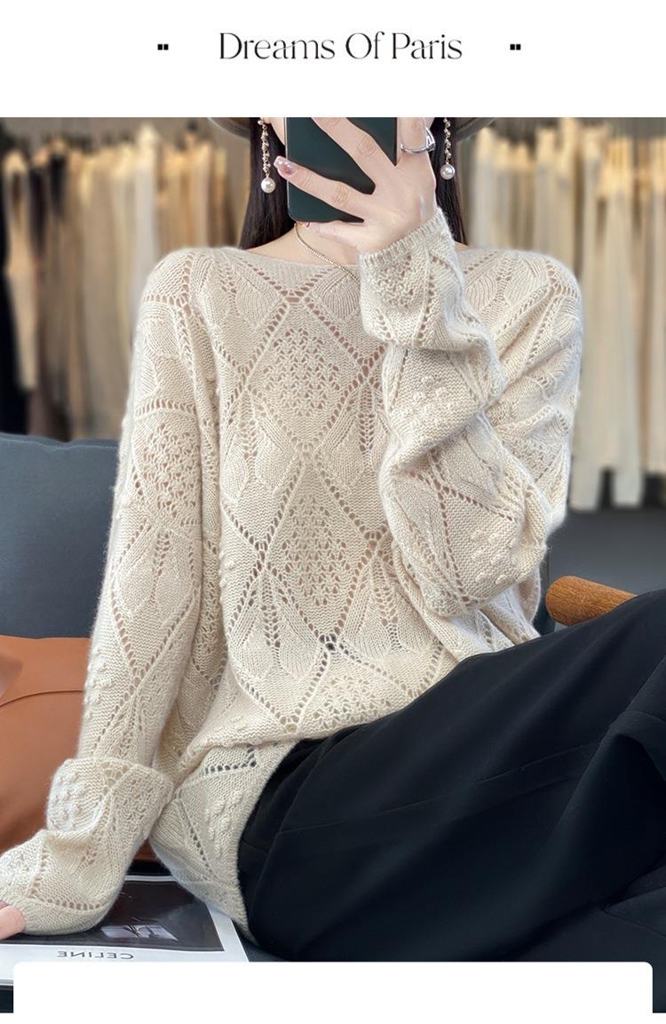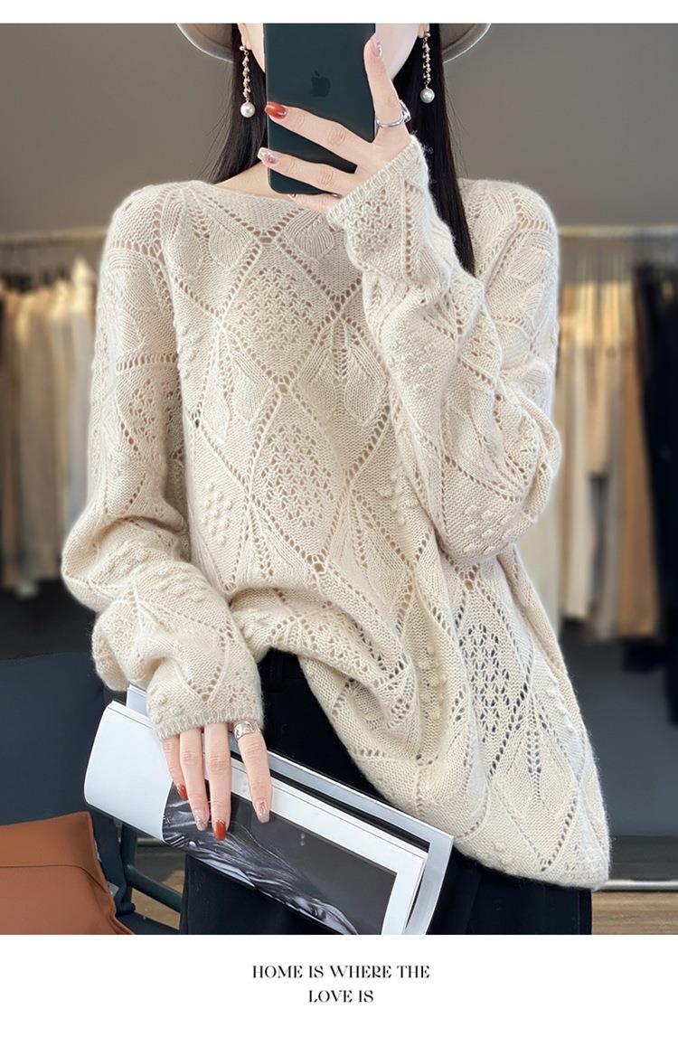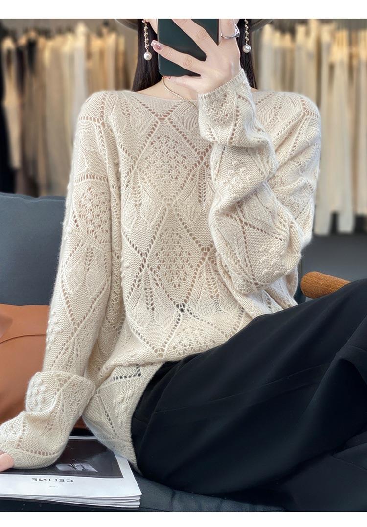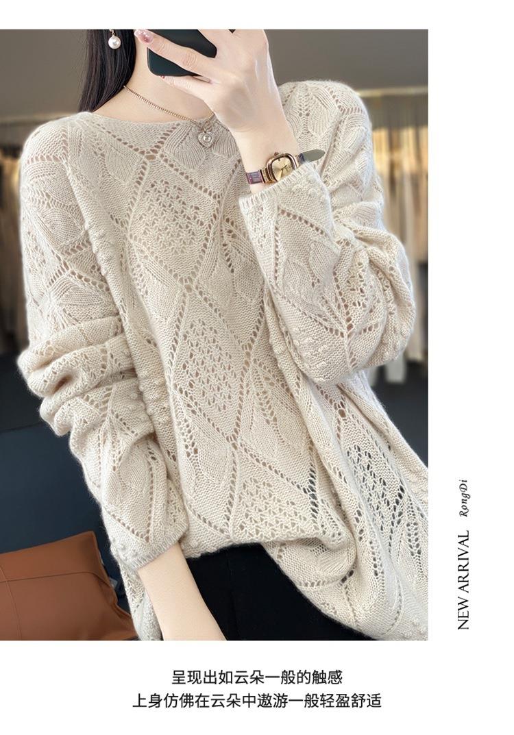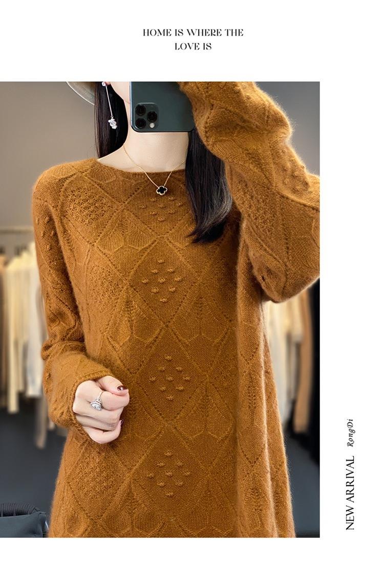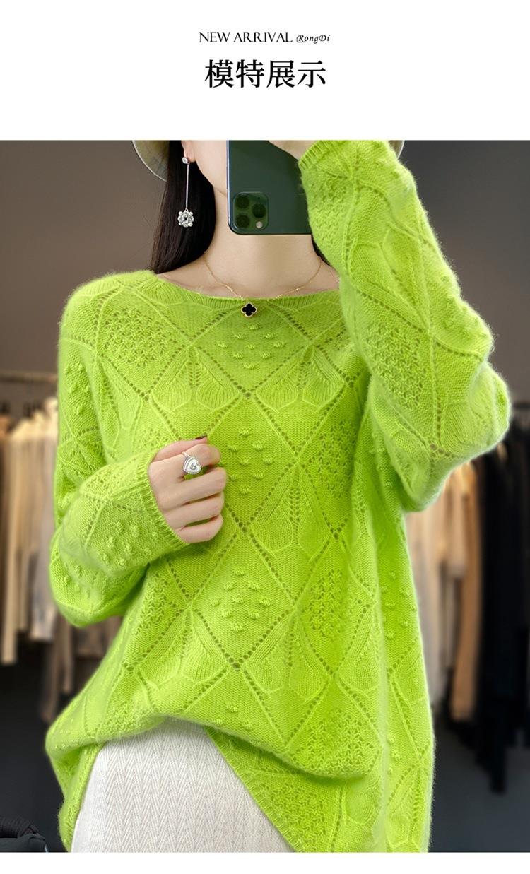 2023年秋冬新款韩版女士纯羊毛圆领长袖菱形针织纯色套头羊毛衫