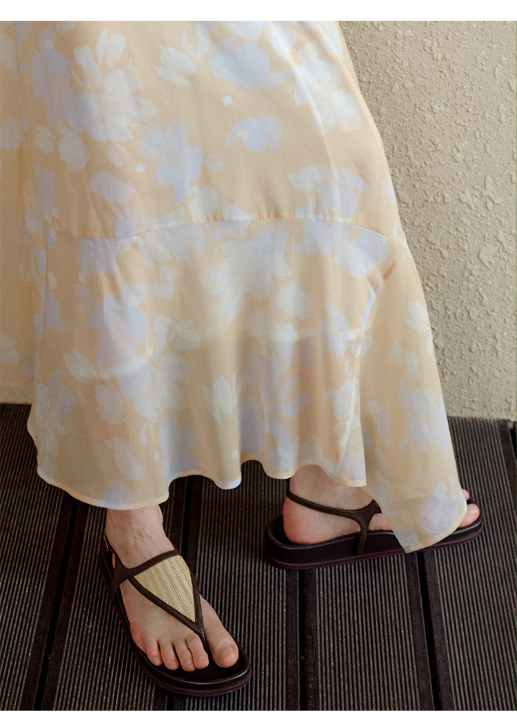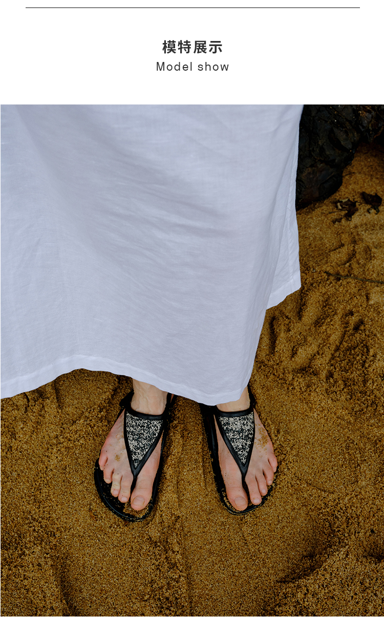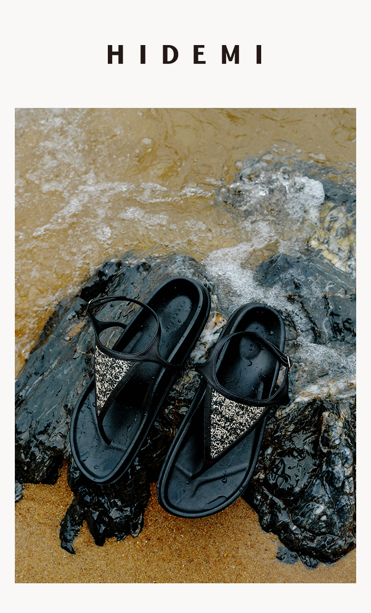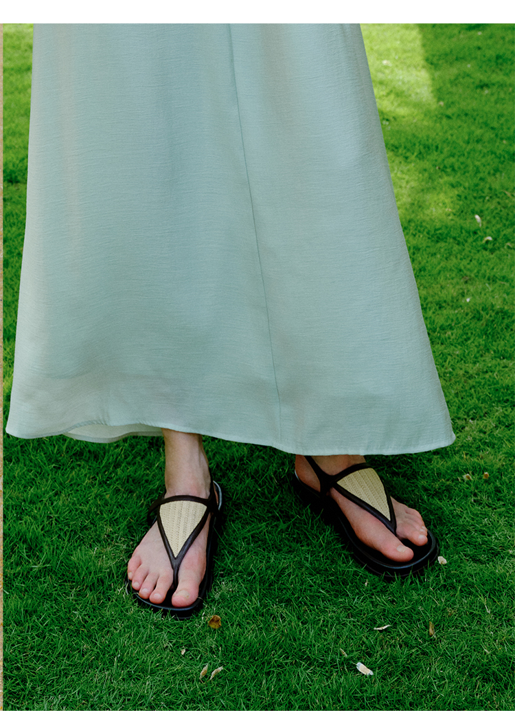 HIDEMI【董生活同款】度假系列草编拼皮极简人字三角形设计感夹脚厚底凉鞋
