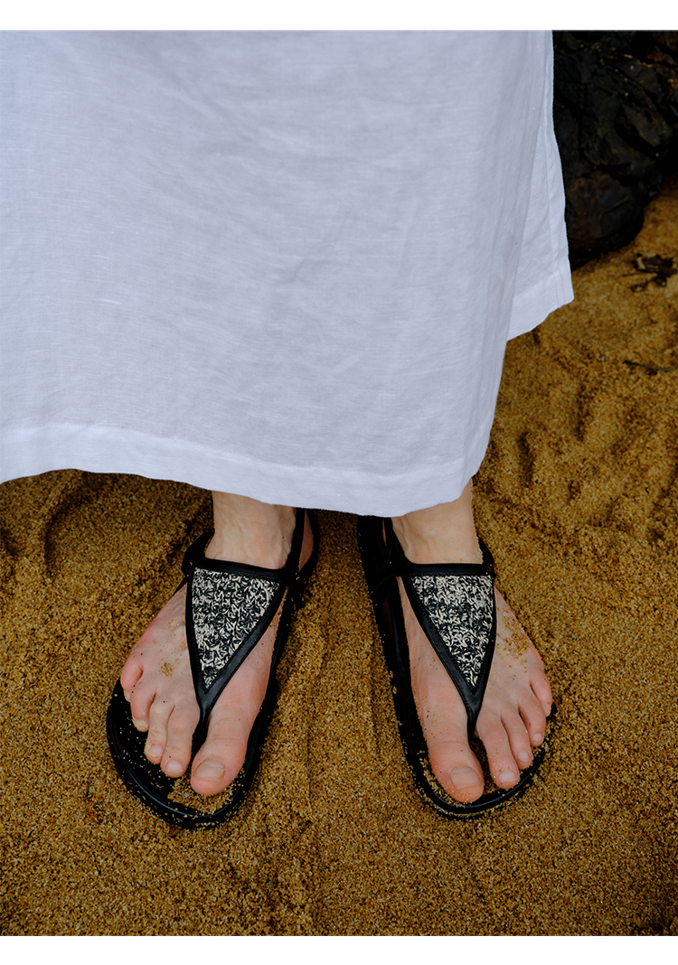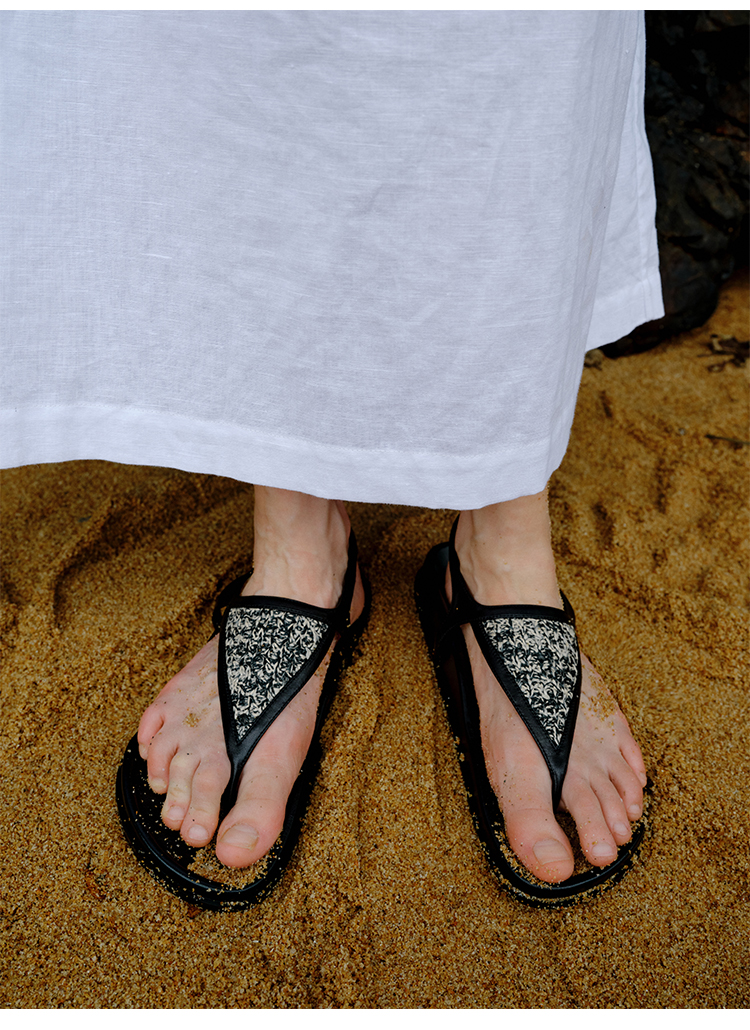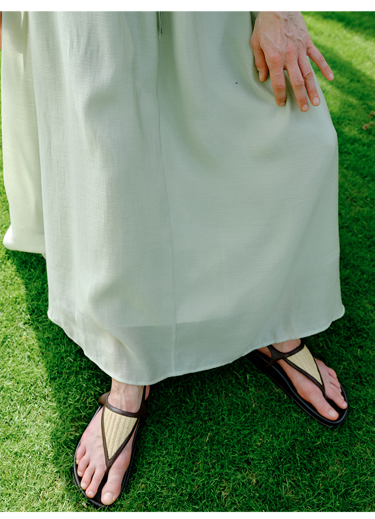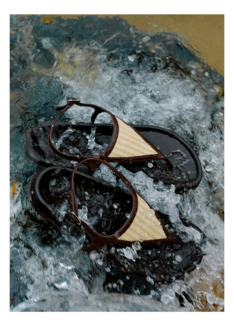 HIDEMI【董生活同款】度假系列草编拼皮极简人字三角形设计感夹脚厚底凉鞋