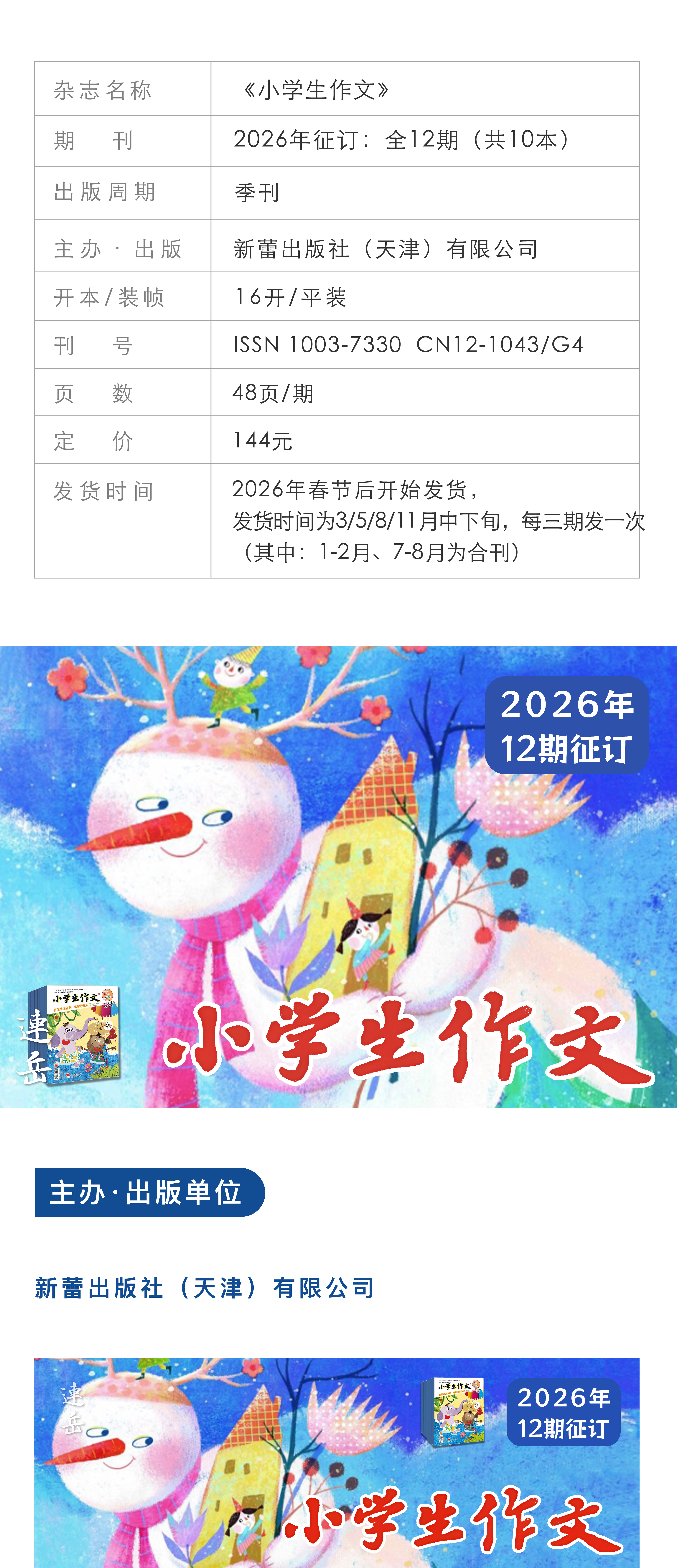 《小学生作文》2026年12期征订(共10本)【赠随机过刊1本】