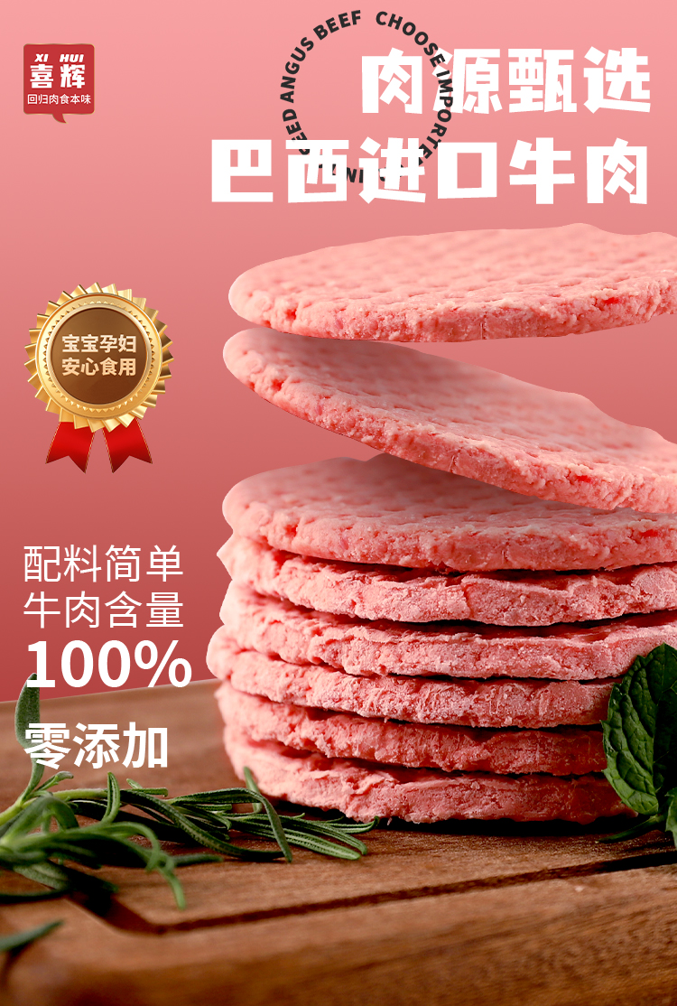 喜辉牛肉饼350g 优质牛肉肥瘦相间 肉香四溢鲜美弹牙 冷鲜保障精致包装 50g/片 7片/盒