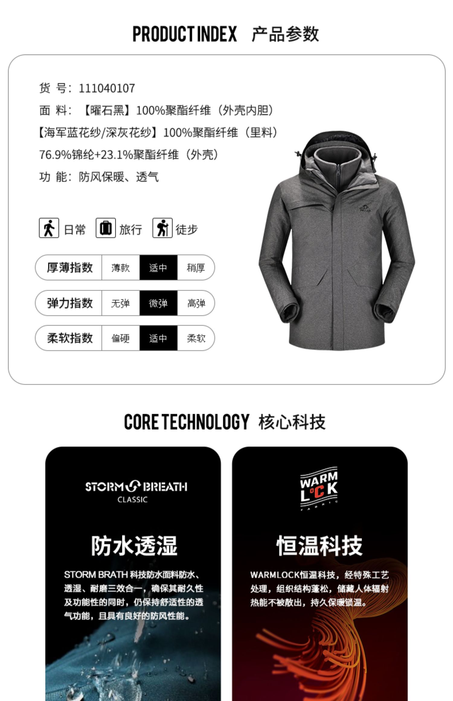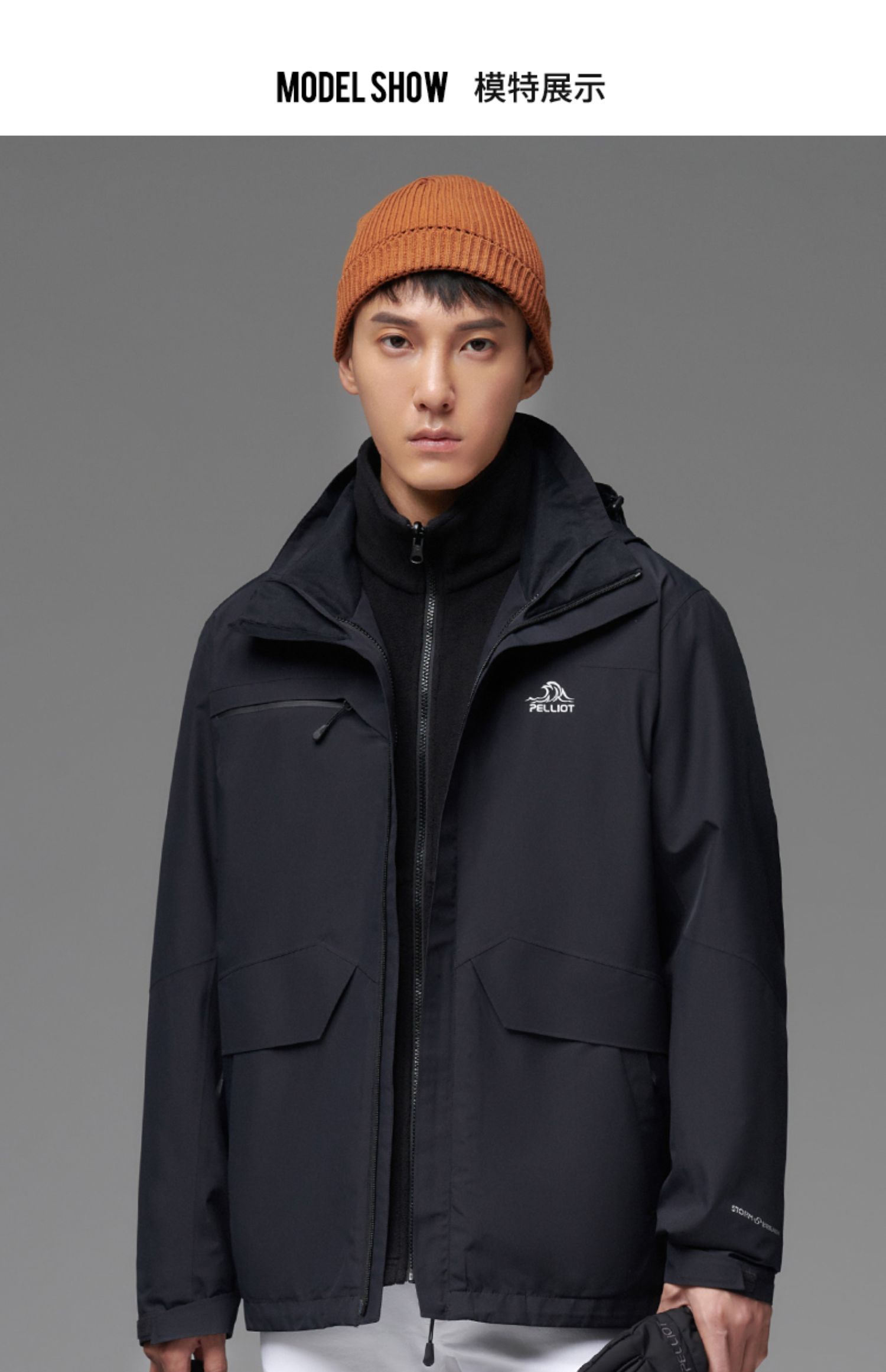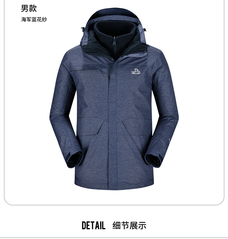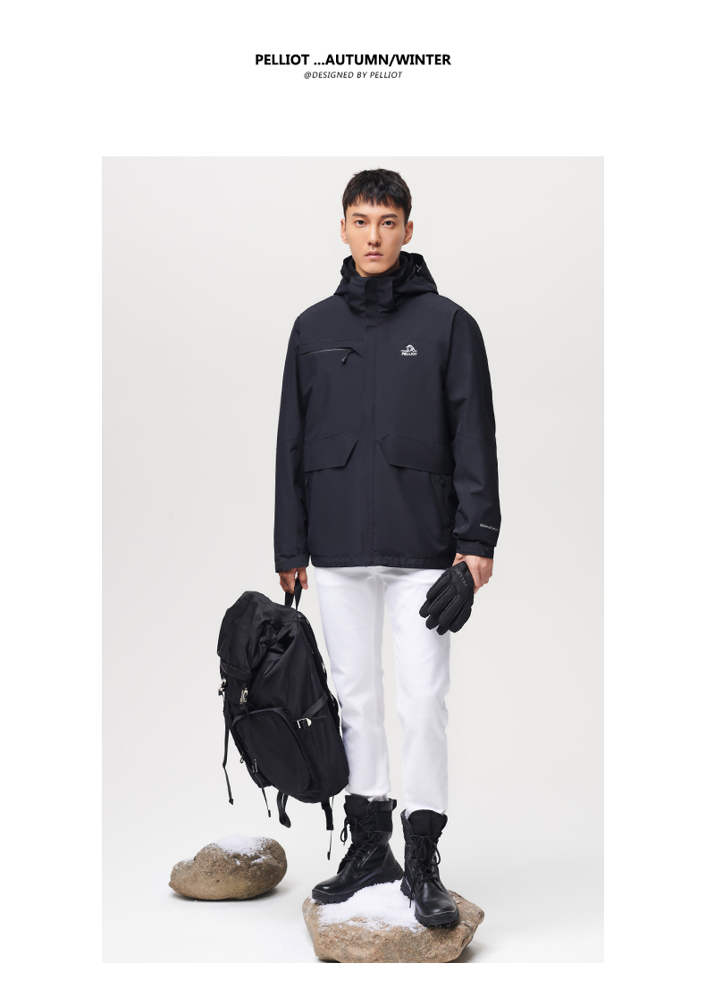 111040107伯希和冲锋衣男士2020新款秋冬两件套可拆卸防水加绒加厚户外服装111040107