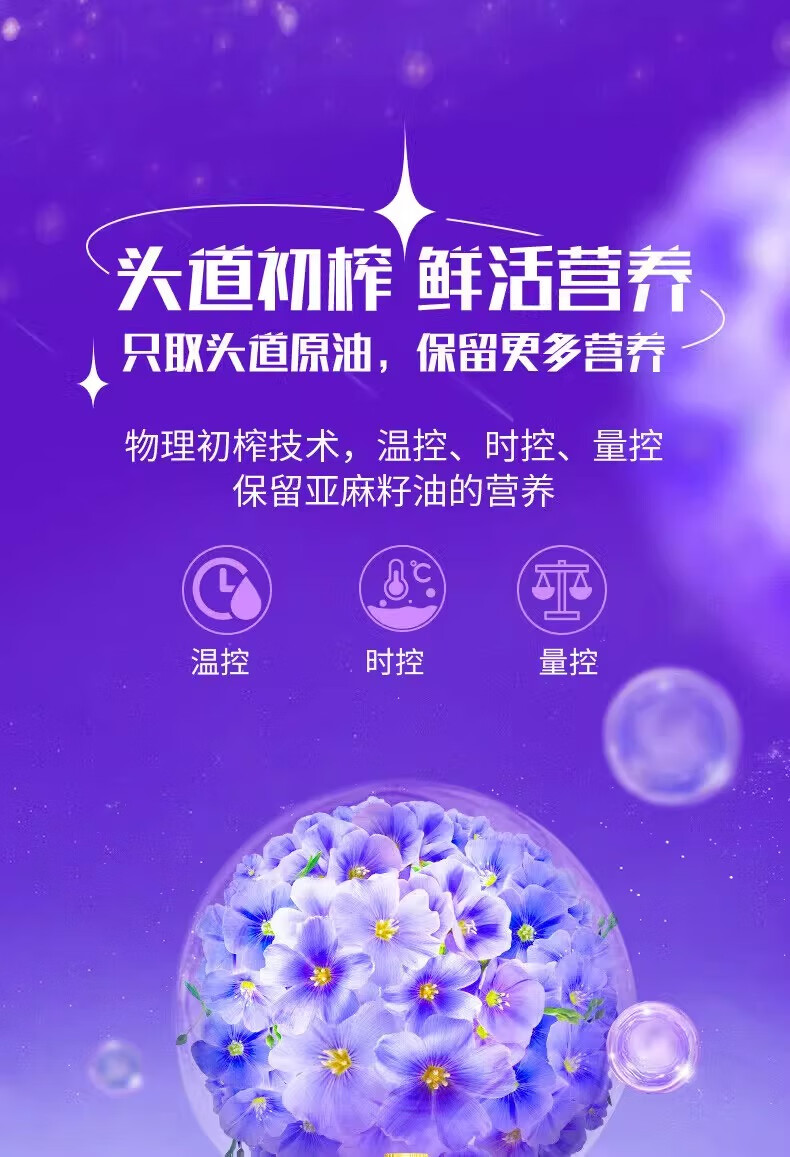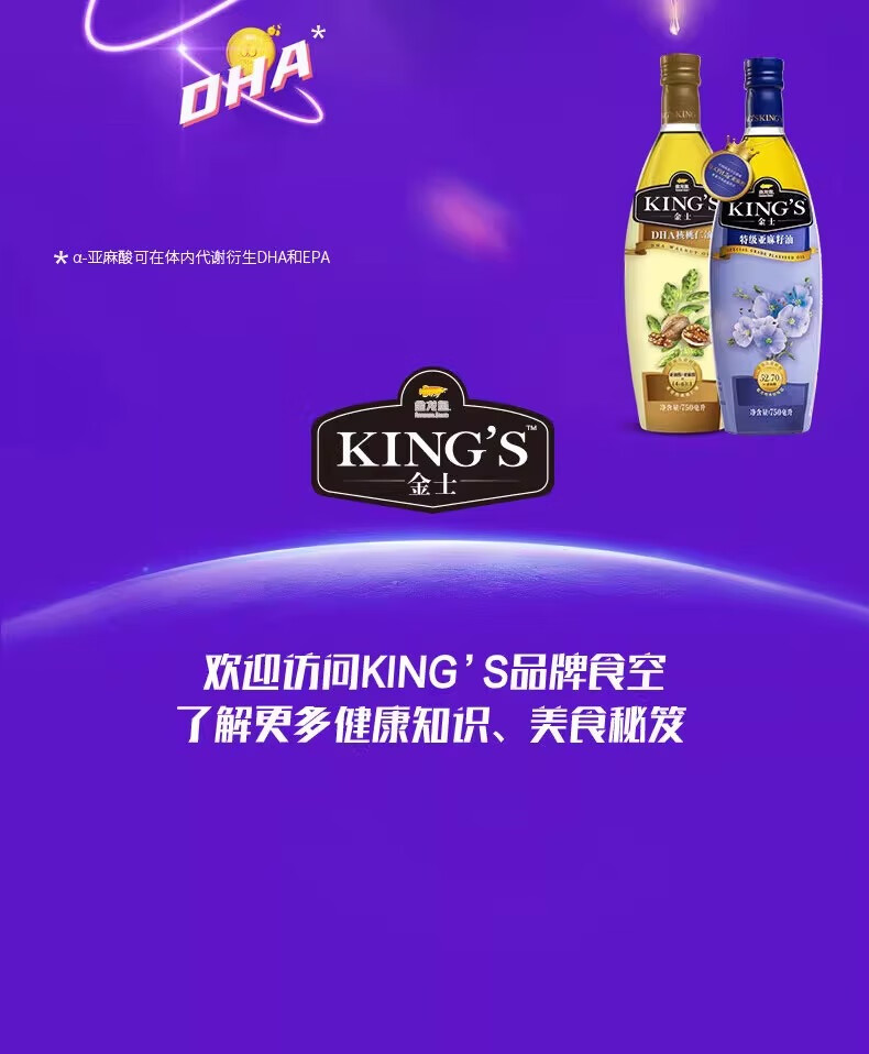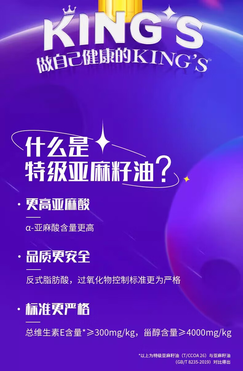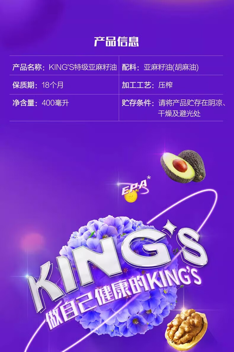 金龙鱼 KING'S亚麻籽油400ml原油头道初榨特级婴幼儿食用植物油