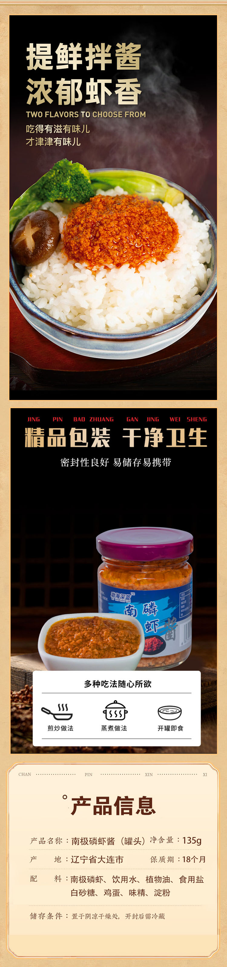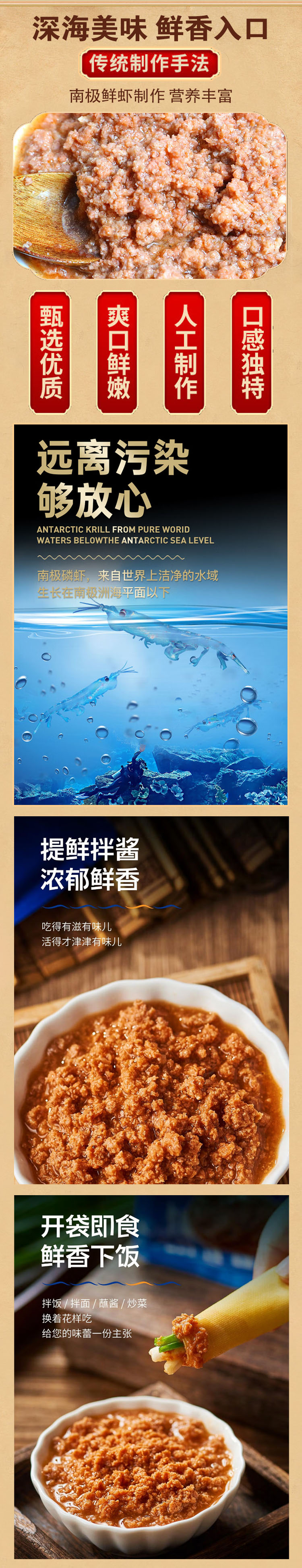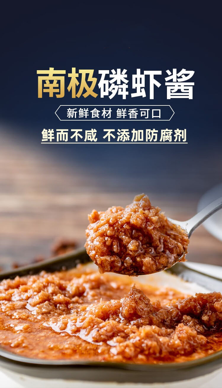 南极磷虾酱,10罐组合,南极洁净海域,新鲜磷虾制作,配料简单无添加,富含多种营养,虾肉大颗粒,爽口鲜嫩,鲜味十足,拌面,拌饭,炒菜提味鲜,蘸着吃,吃法多样M