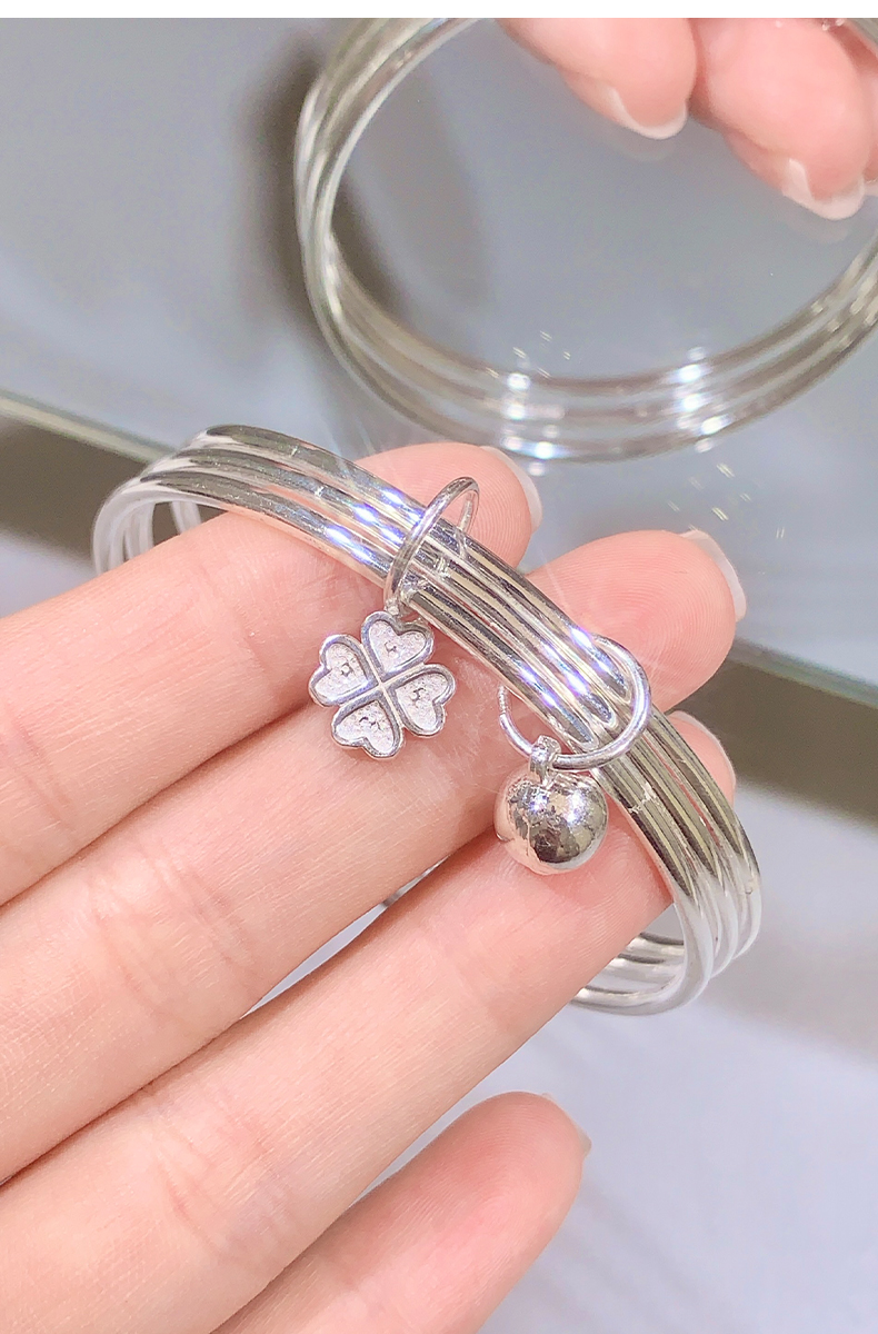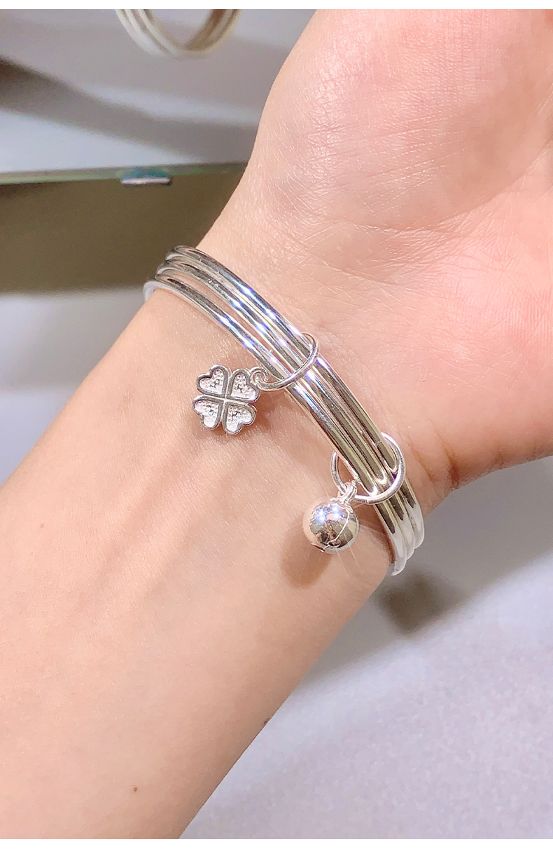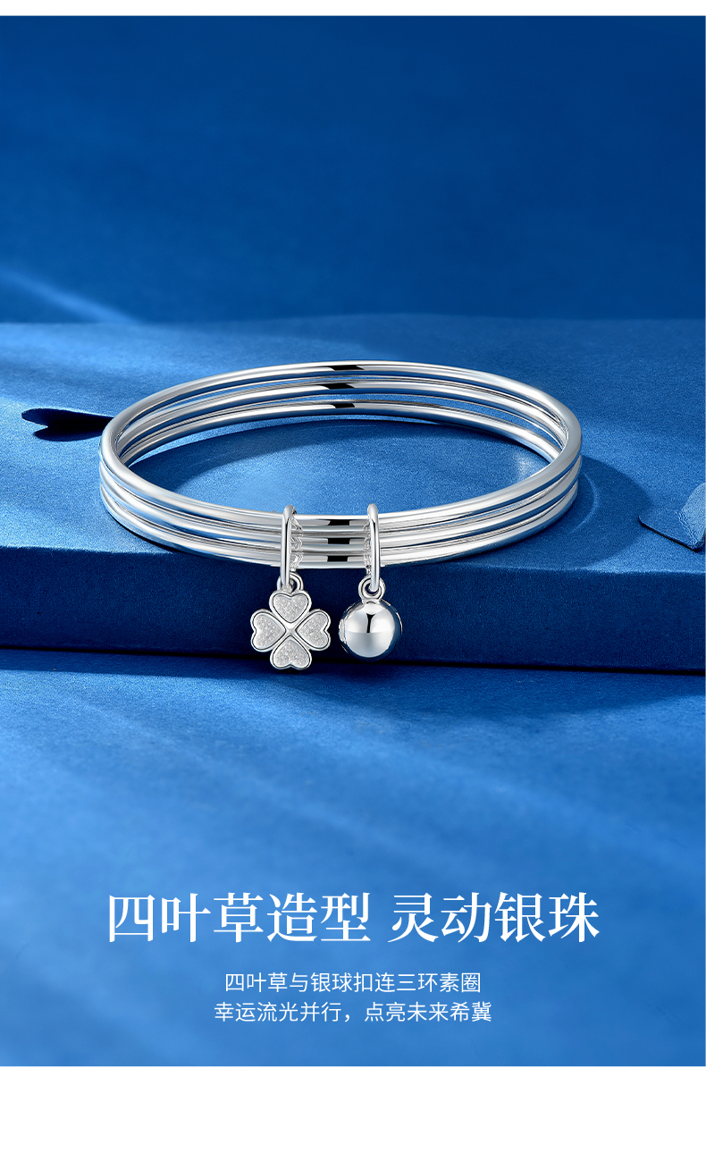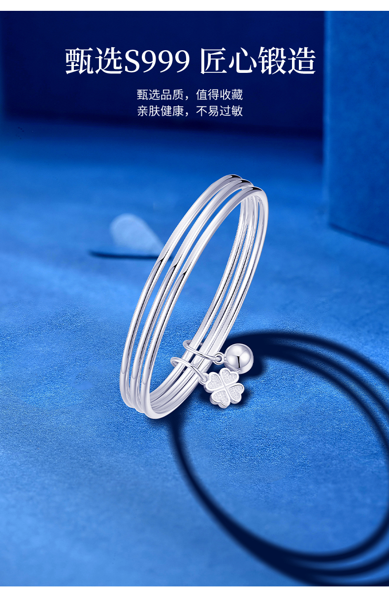 卡蒂罗/KADER 足银999 大克重幸运四叶草三生三世民族风流苏闭口素圈银镯 新中式国潮古法工艺好运配饰 999