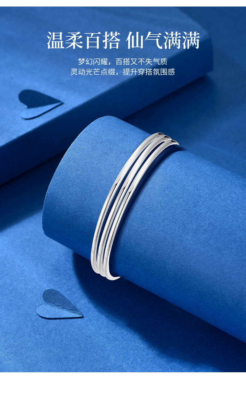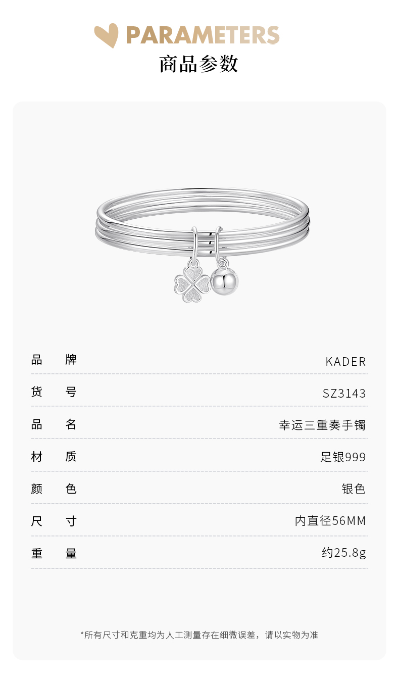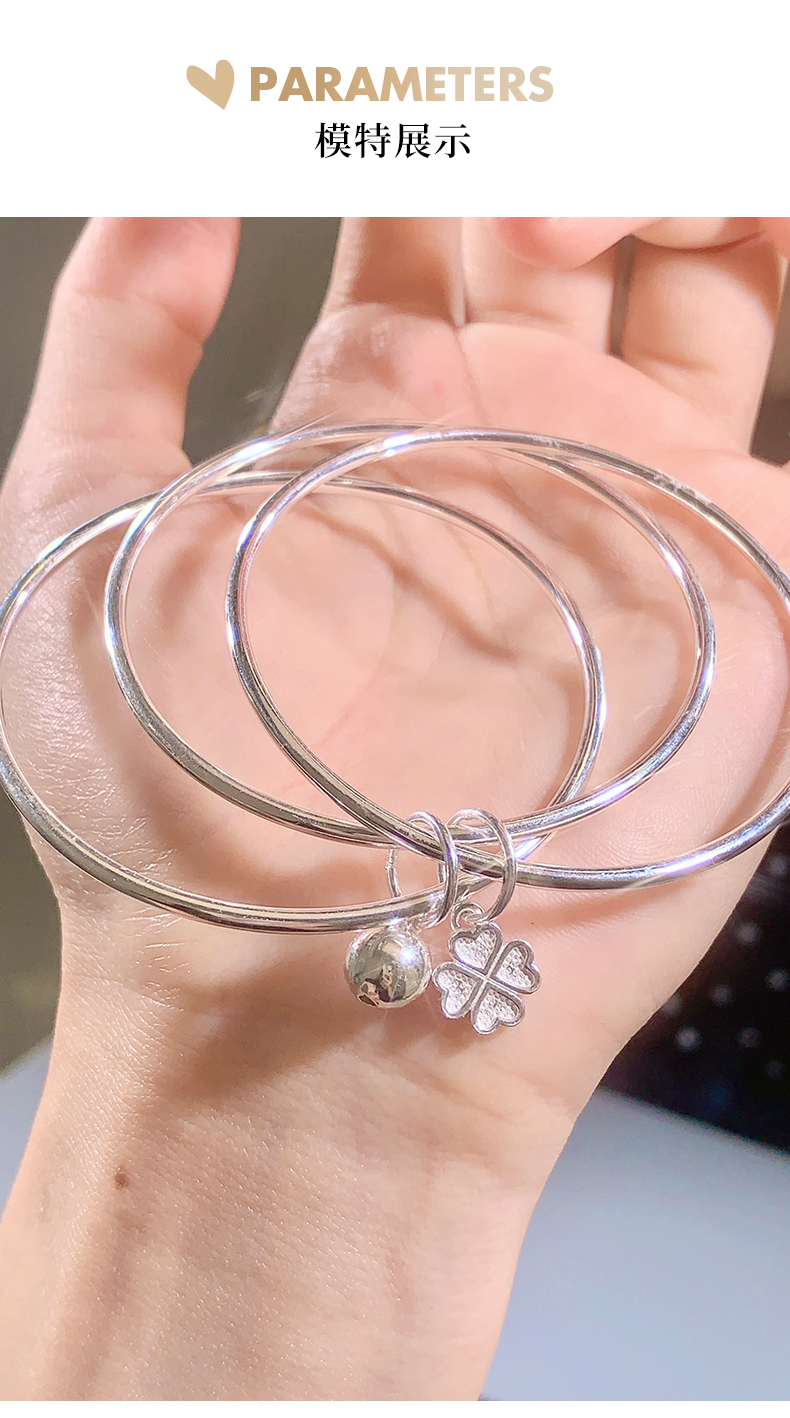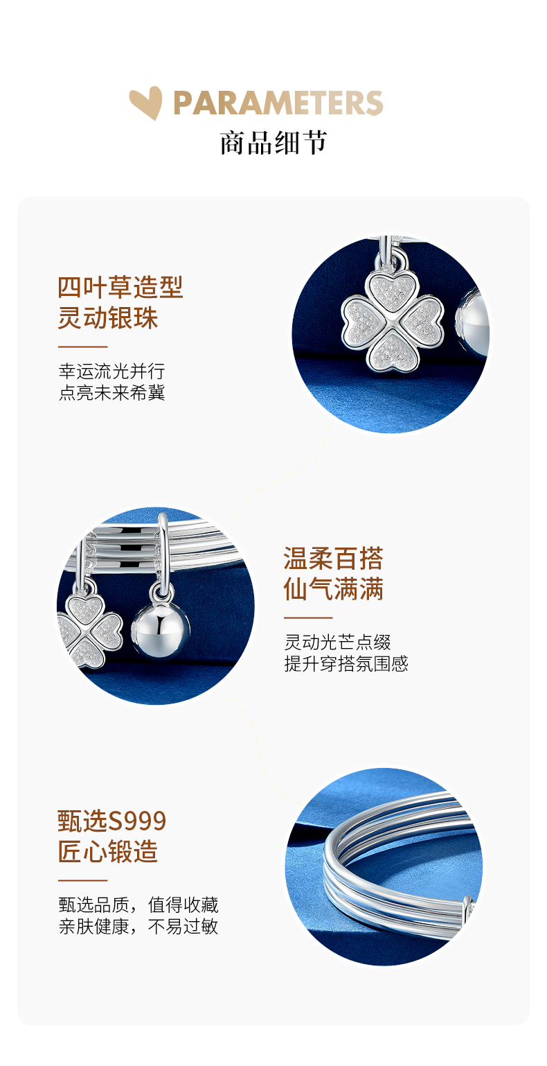 卡蒂罗/KADER 足银999 大克重幸运四叶草三生三世民族风流苏闭口素圈银镯 新中式国潮古法工艺好运配饰 999