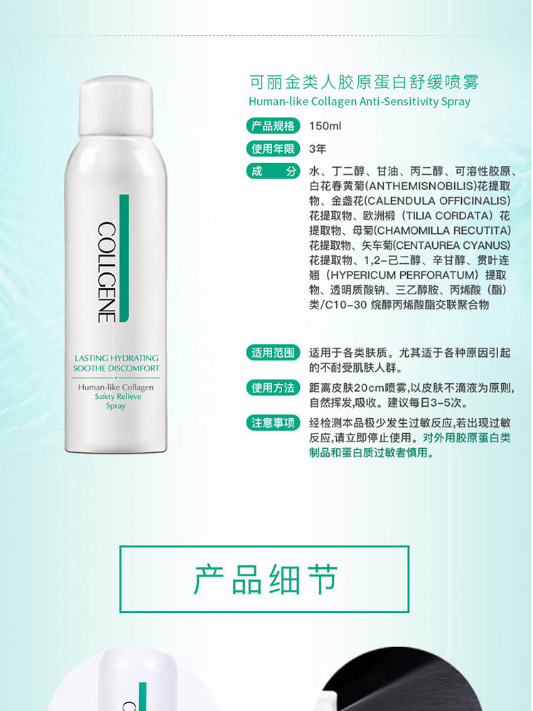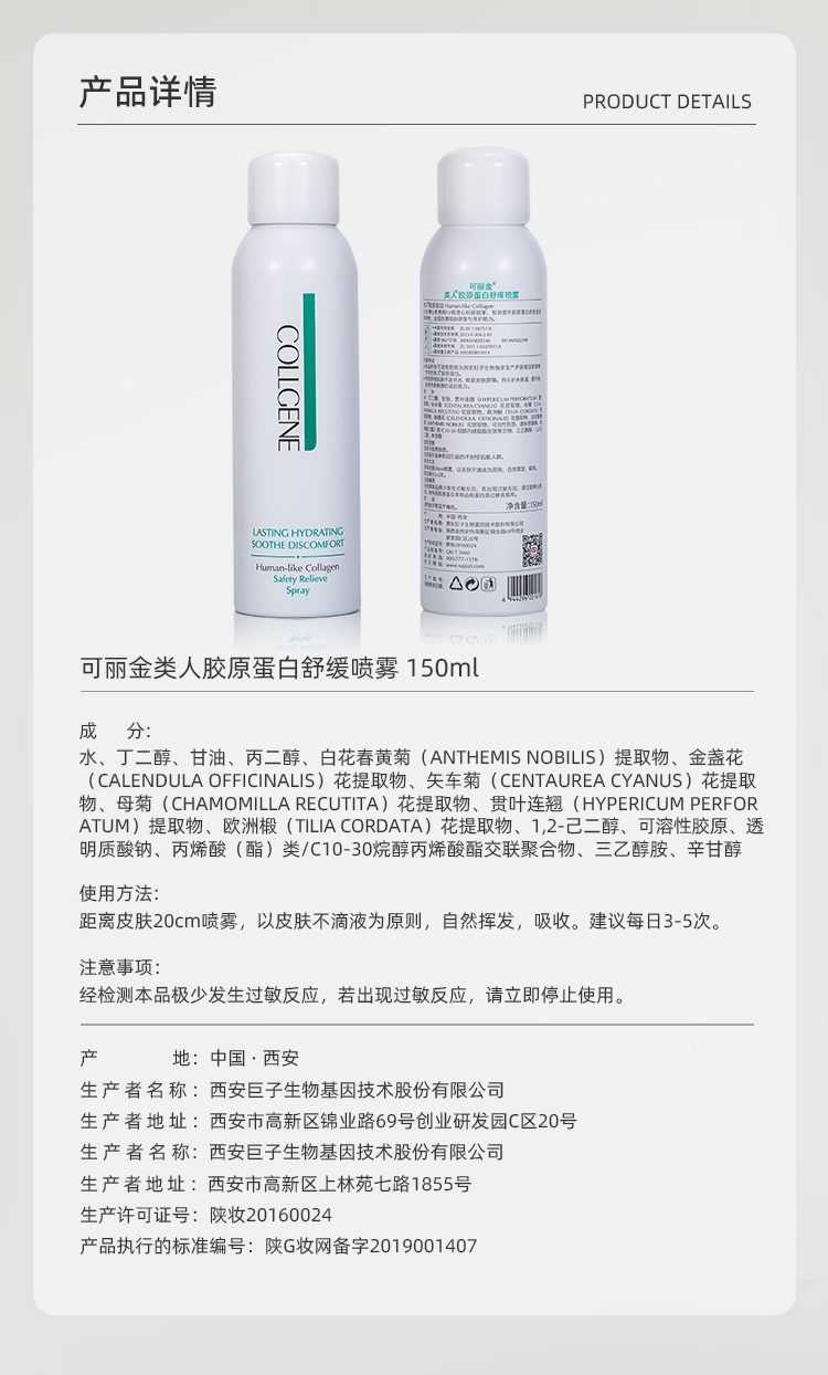 【官方直发 拒绝假货】可丽金舒缓系列 重组胶原蛋白舒缓喷雾150ml,有效舒缓肌肤不适、修护皮肤受揭屏障