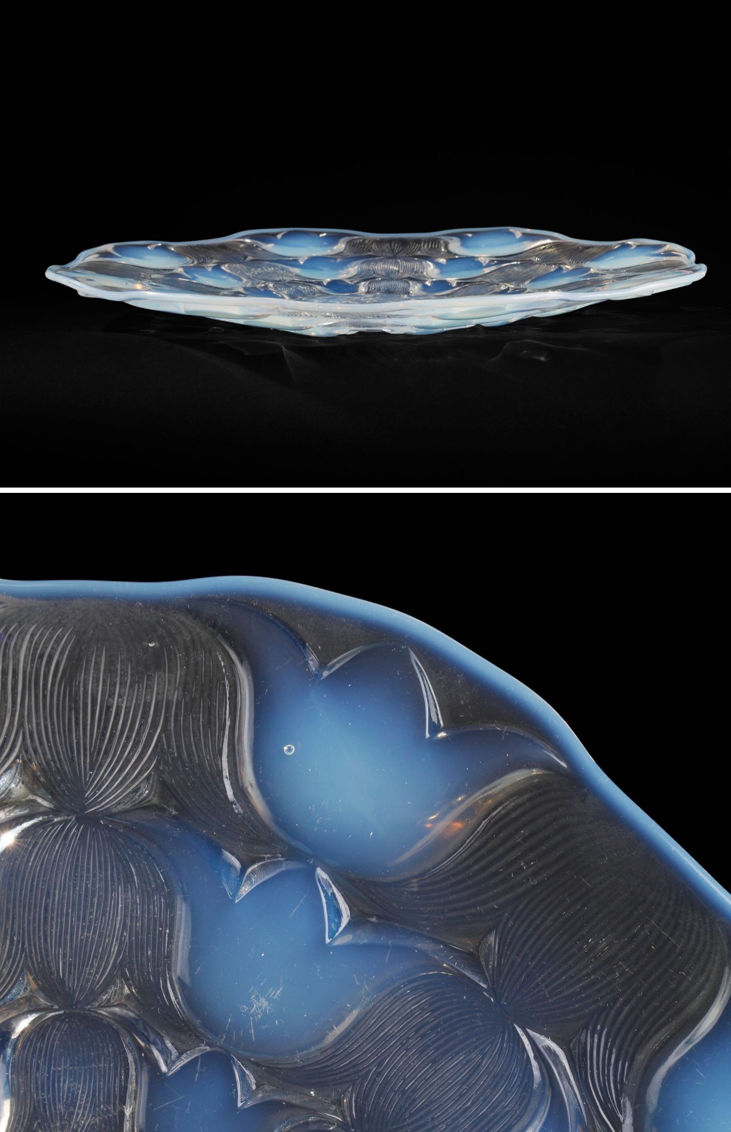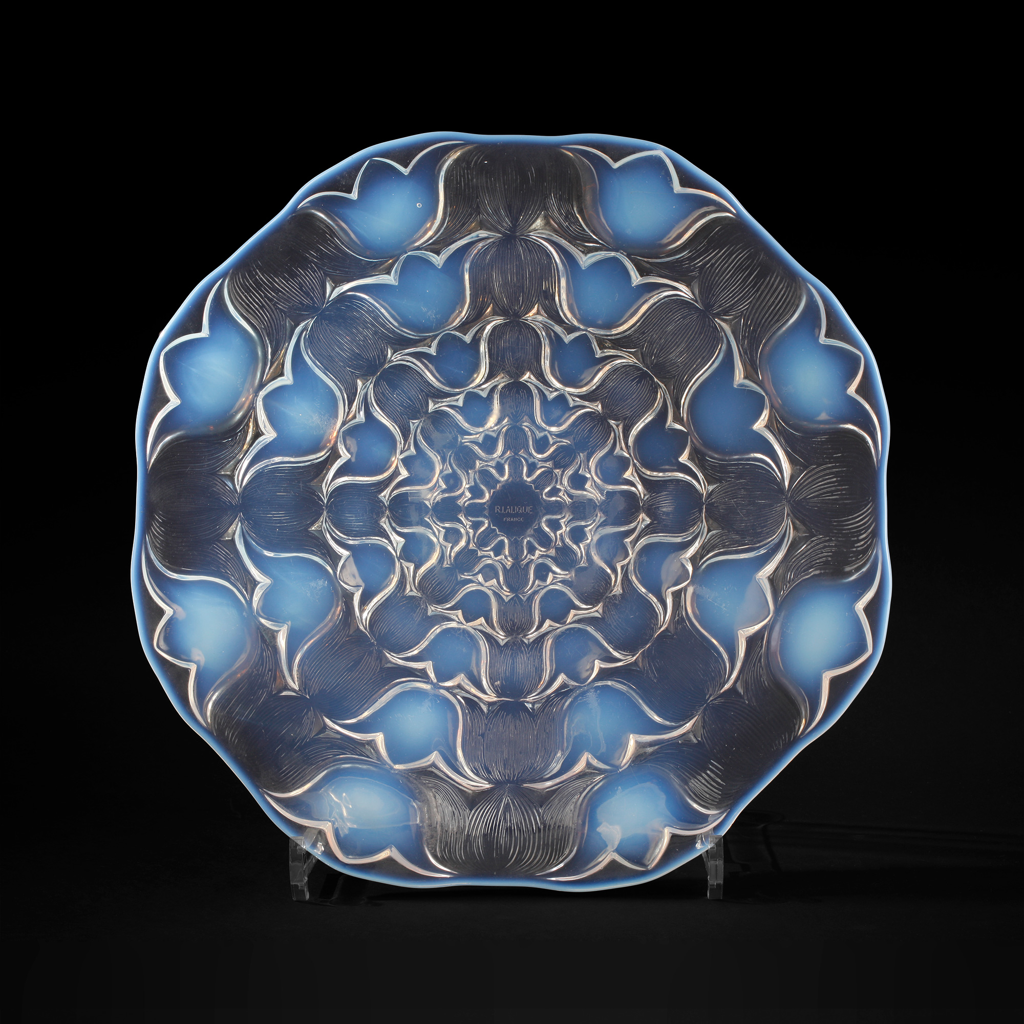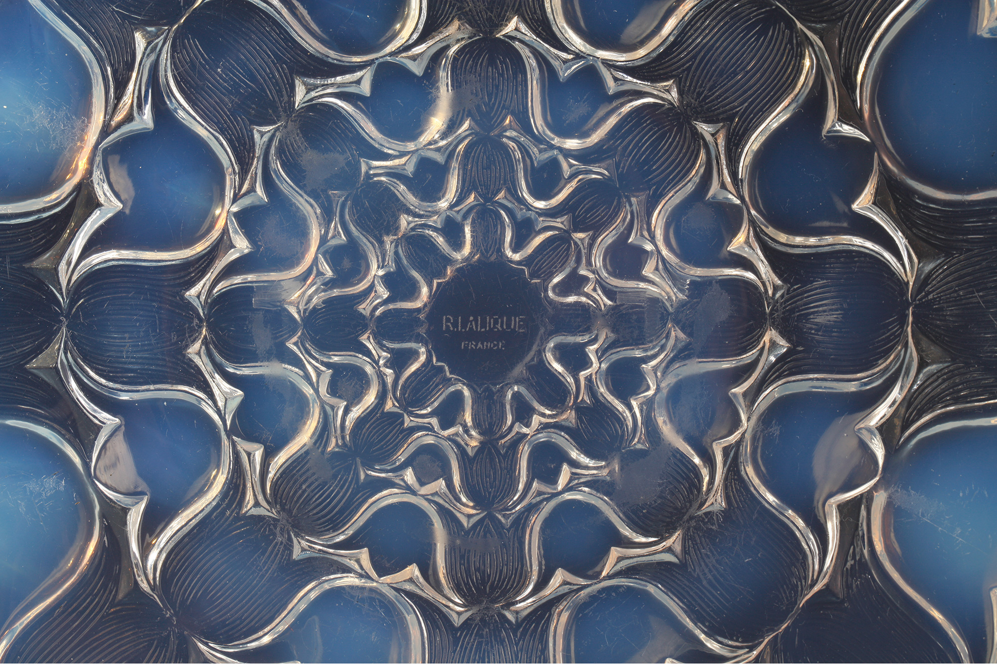 独角鹿西洋古董法国LALIQUE莱俪Campanules风铃草水晶浅口盘摆件