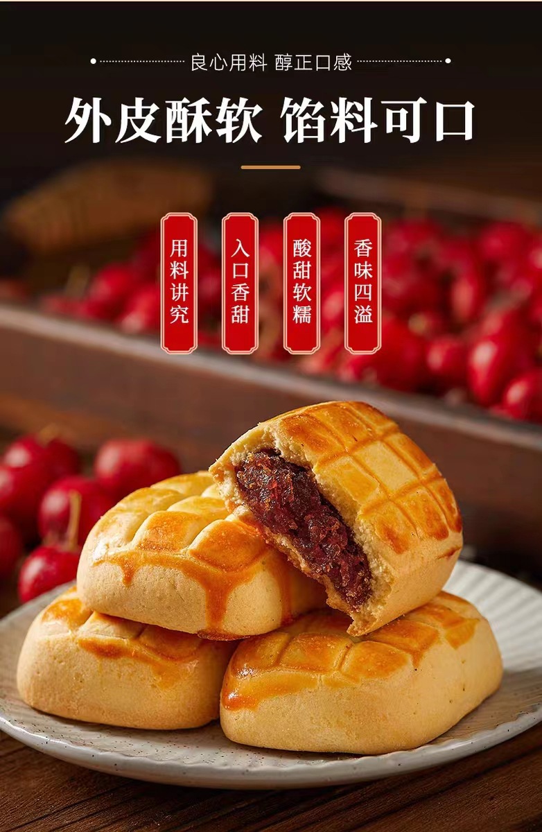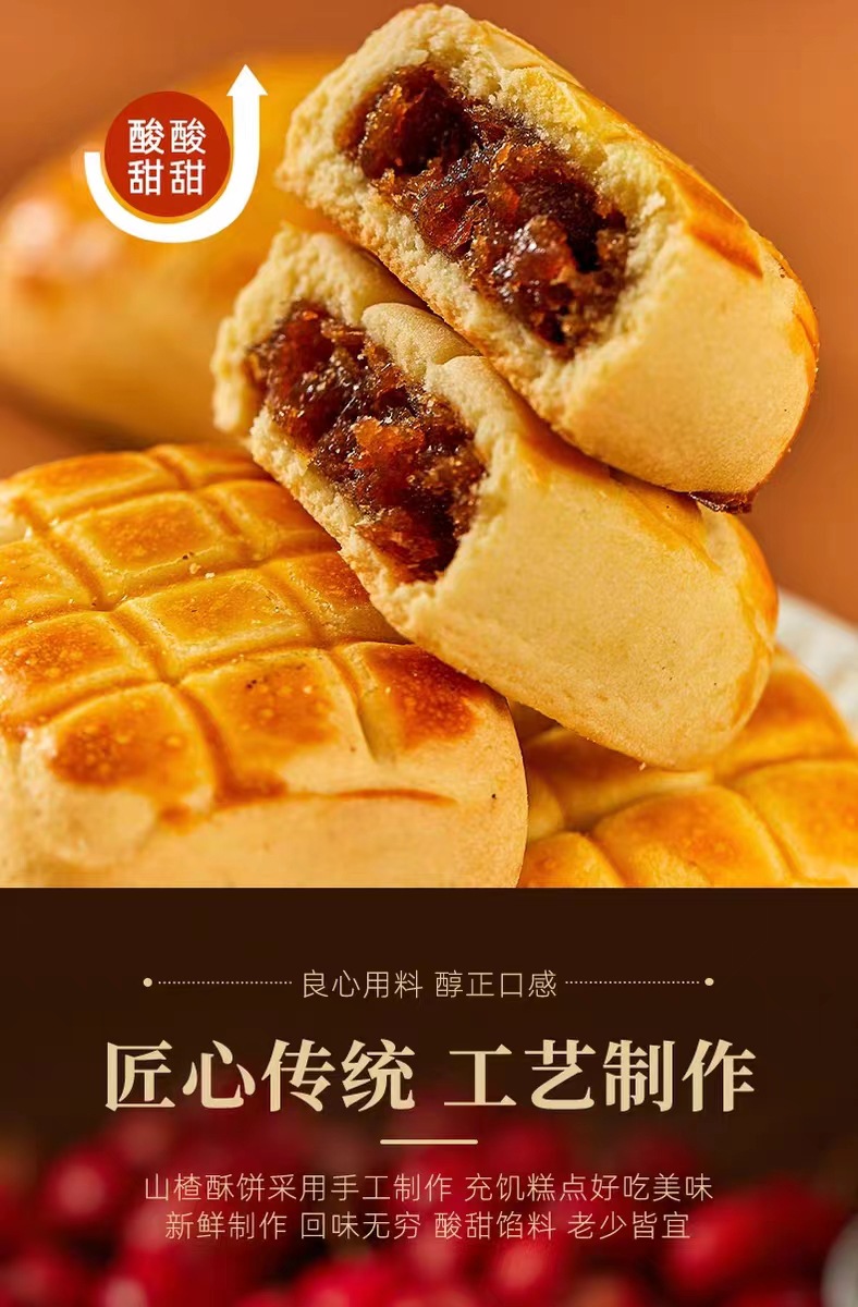 【酸甜软糯!山楂果肉饼】香脆外皮和绵软内心山楂酥饼山楂果肉荞麦酥饼传统贵妃糕点-点心网红健康