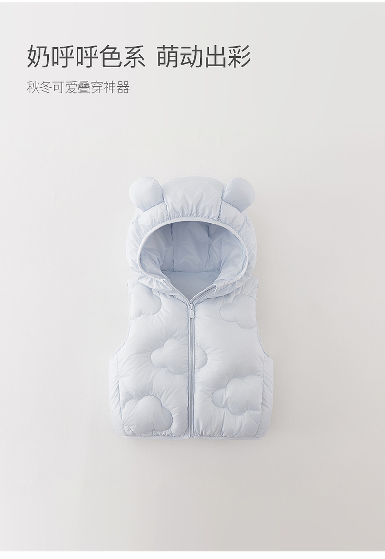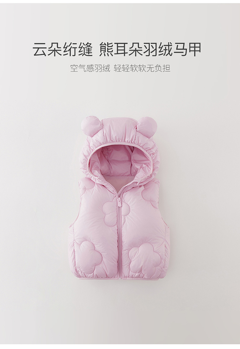 【无氟防泼水】马克珍妮女童云朵绗缝熊耳朵羽绒马甲冬装新款551773