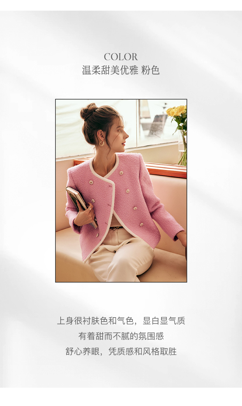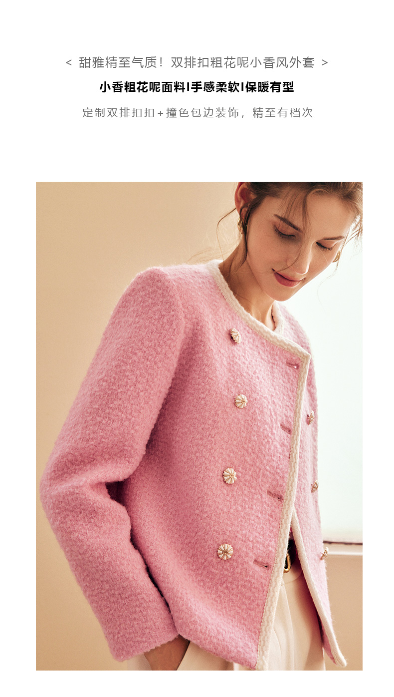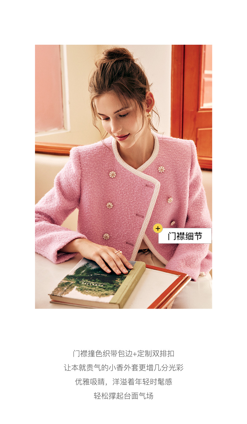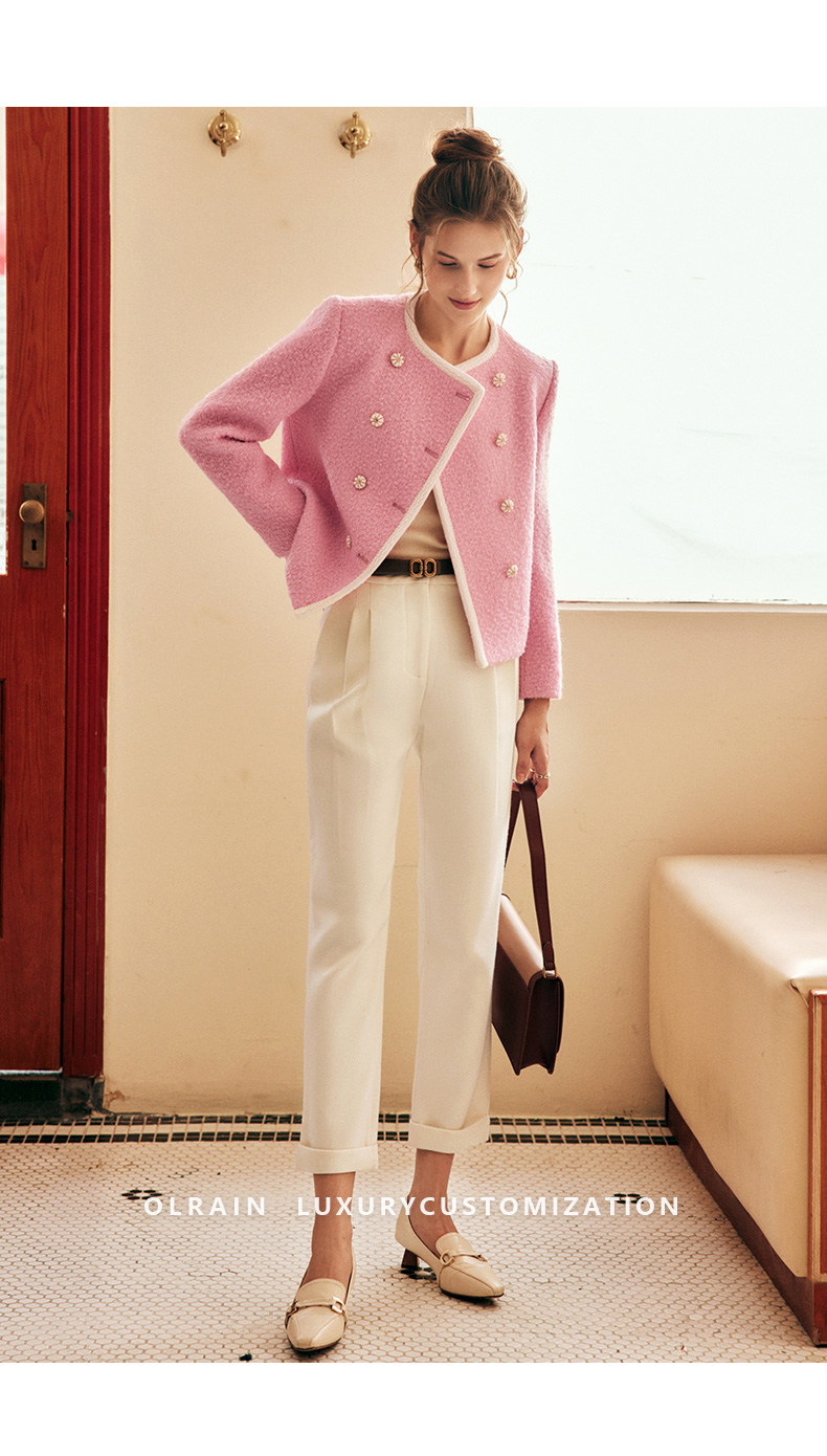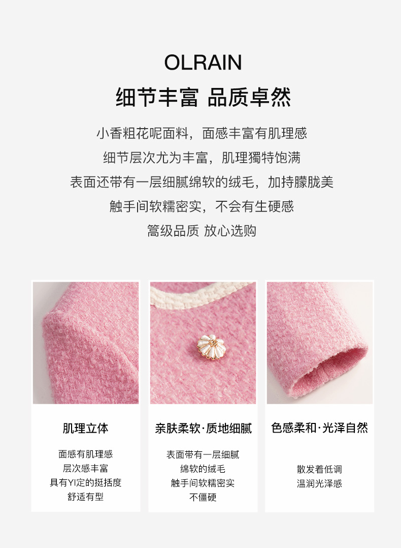 OLrain欧芮儿法式小香风短外套女冬季2025新款粉色粗花呢甜美开衫