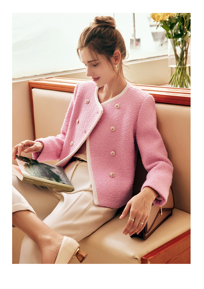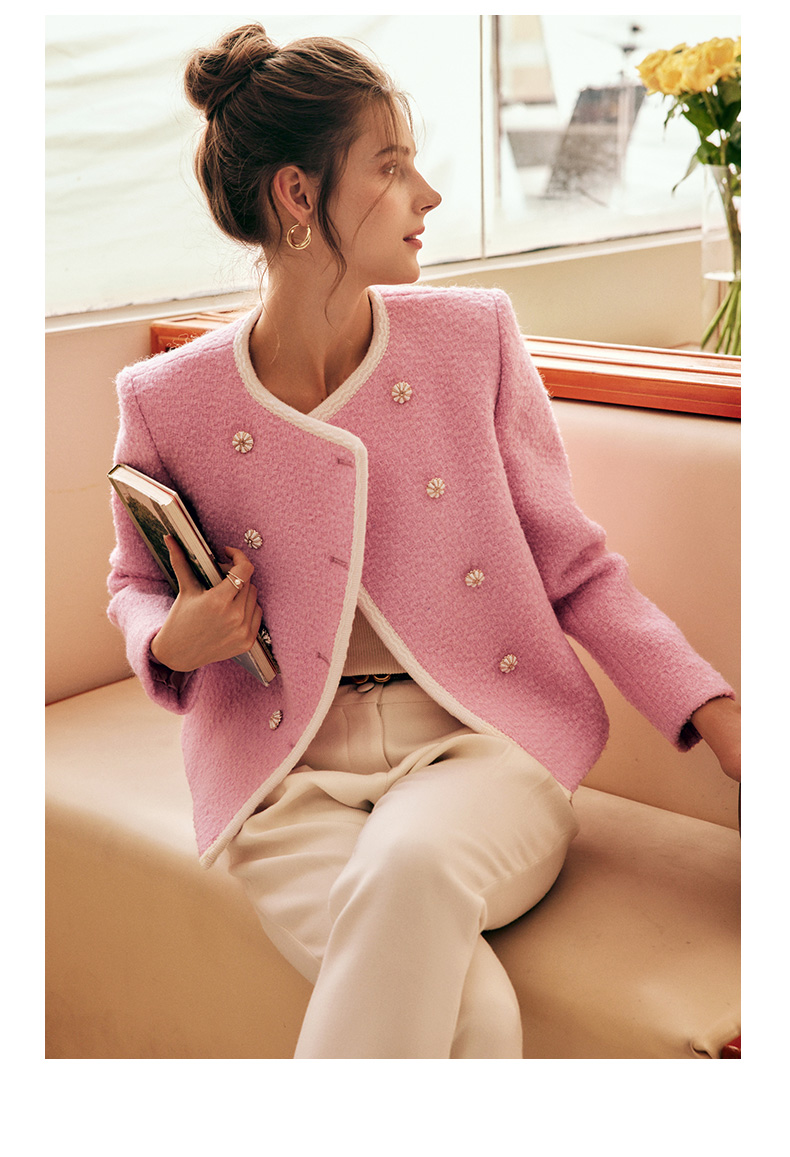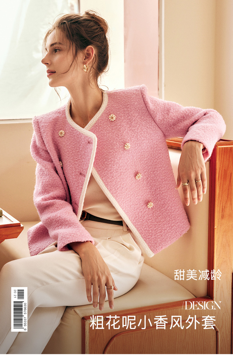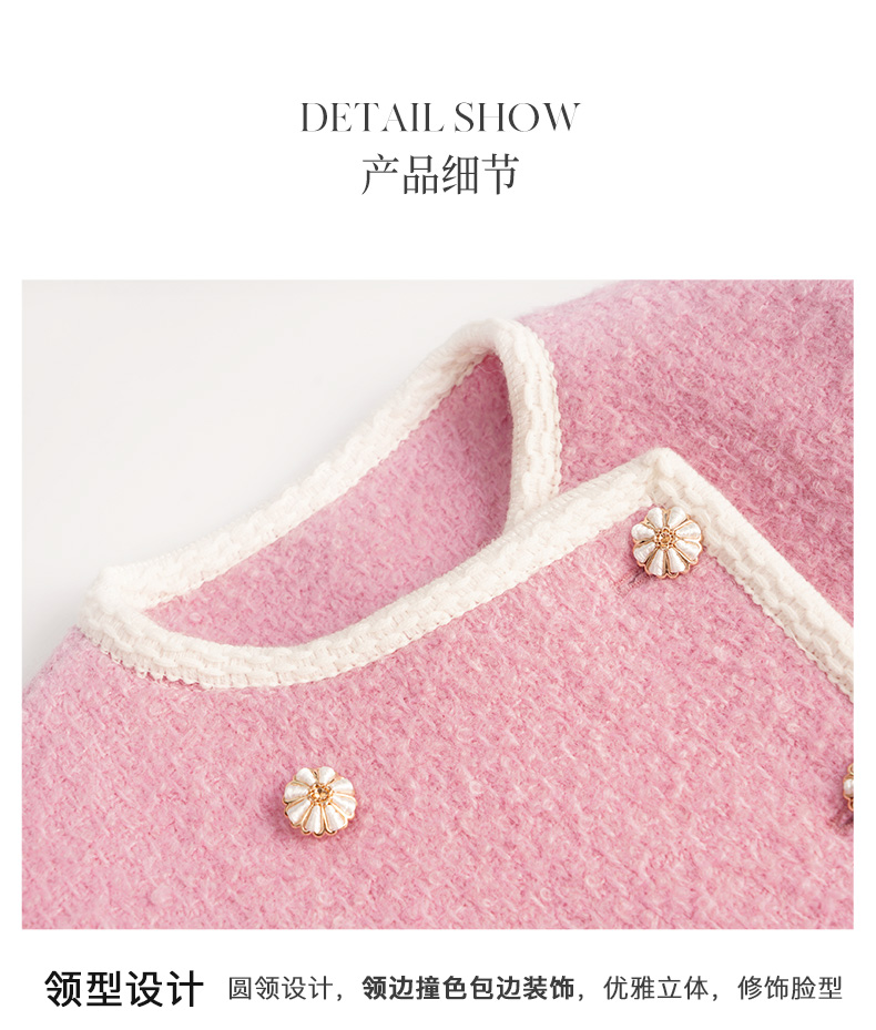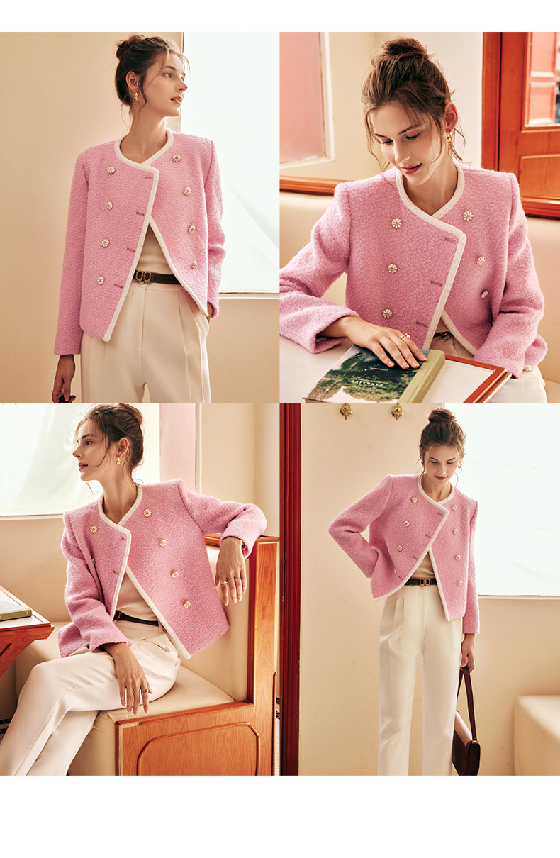 OLrain欧芮儿法式小香风短外套女冬季2025新款粉色粗花呢甜美开衫