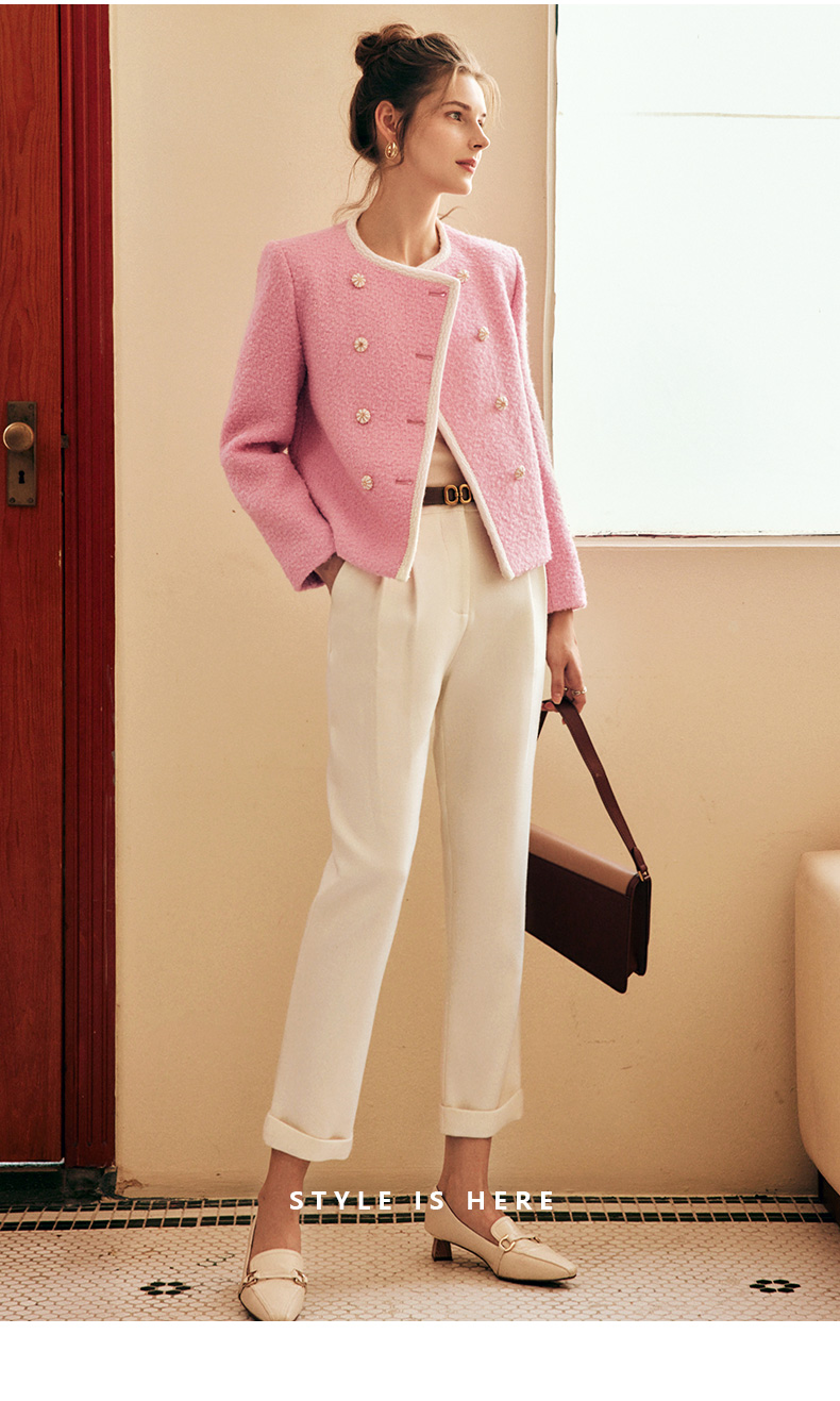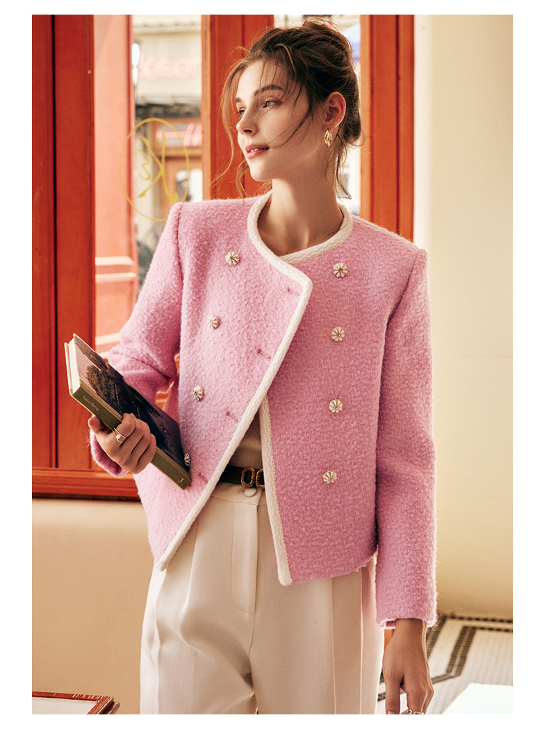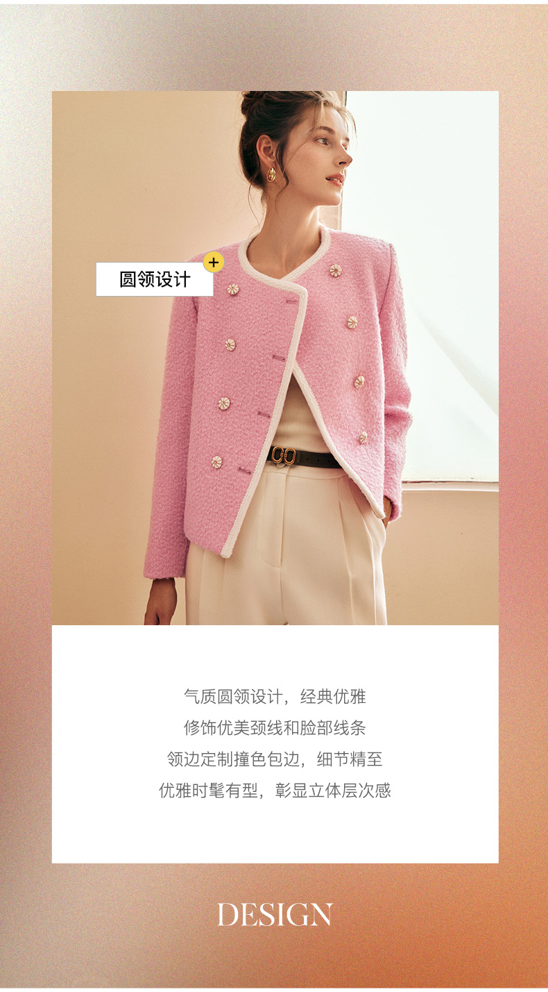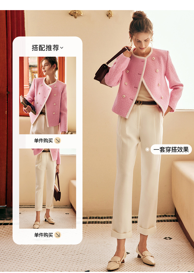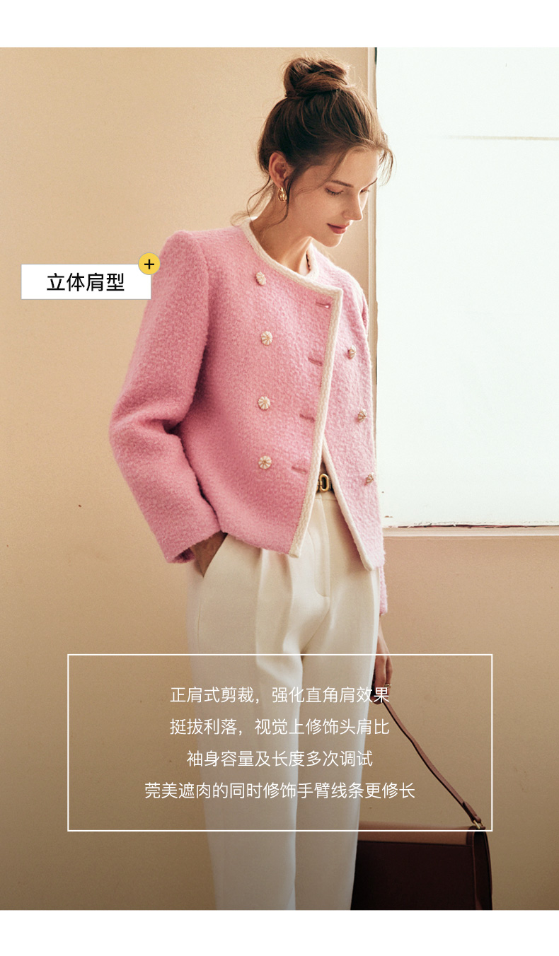 OLrain欧芮儿法式小香风短外套女冬季2025新款粉色粗花呢甜美开衫