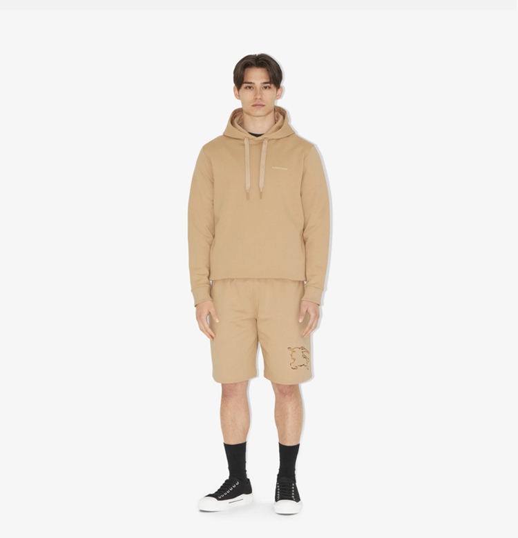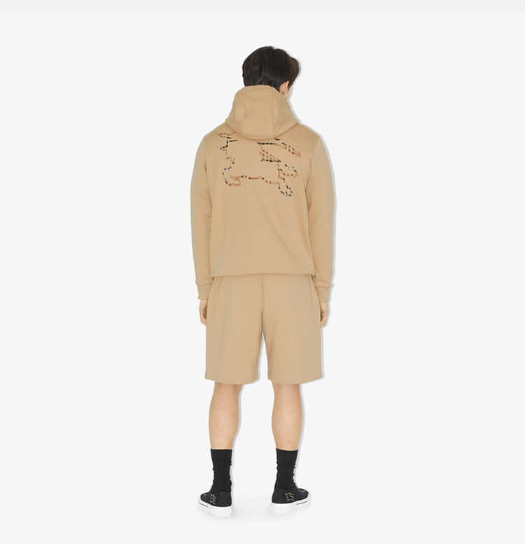 BURBERRY 巴宝莉 男士格纹马术骑士徽标棉质休闲短裤 卡其色 8072705 A7405