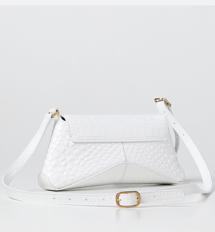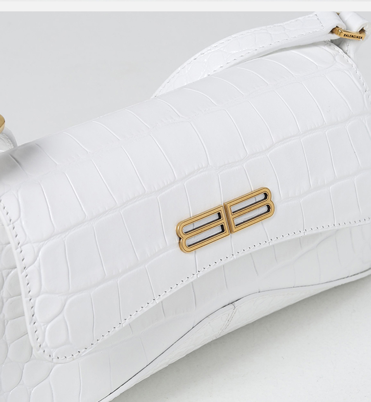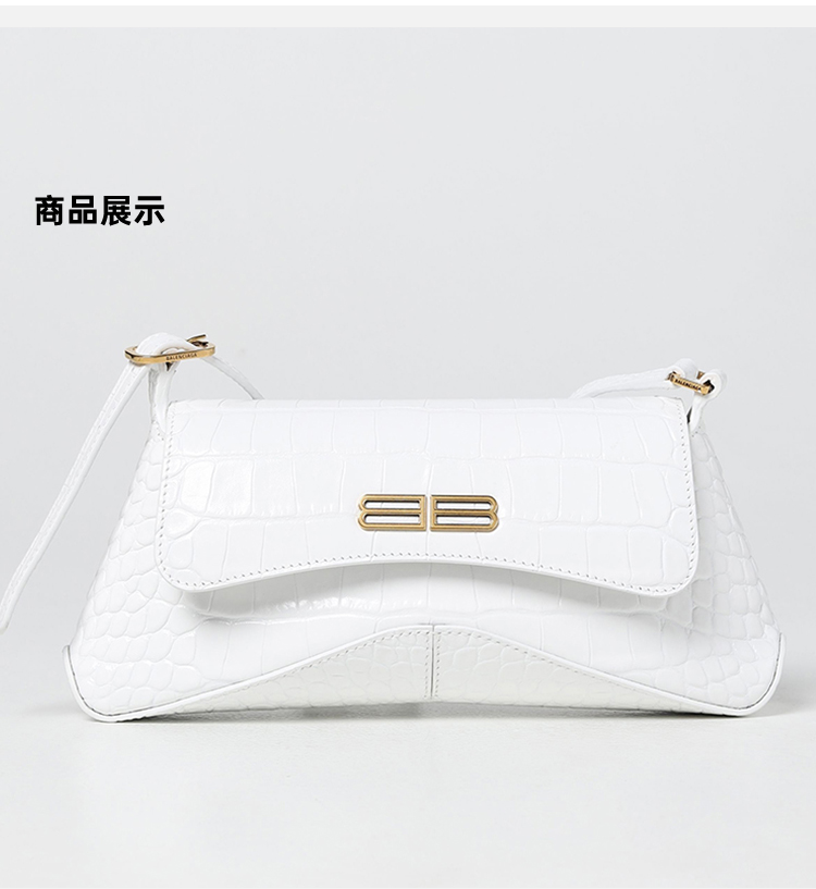 BALENCIAGA 巴黎世家 女士小号闪亮超柔软鳄鱼压纹小牛皮翻盖包斜挎单肩包 白色 695645 2108Y 9001