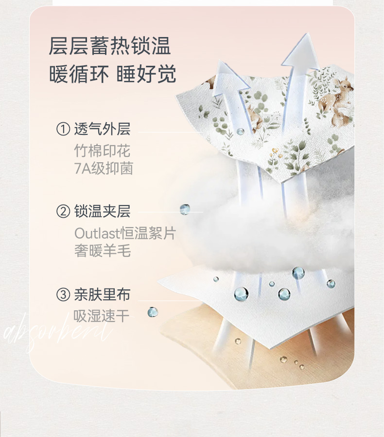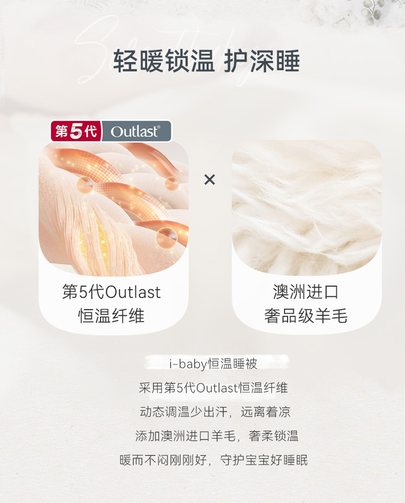 【2025秋冬新品】i-baby×Outlast秋冬羊毛夹棉抑菌绗缝恒温睡被宝宝秋冬安睡被