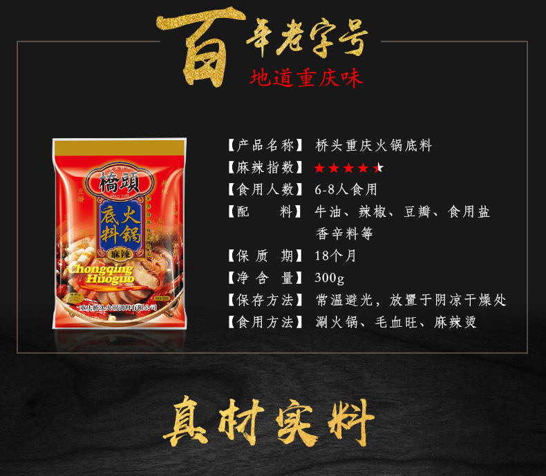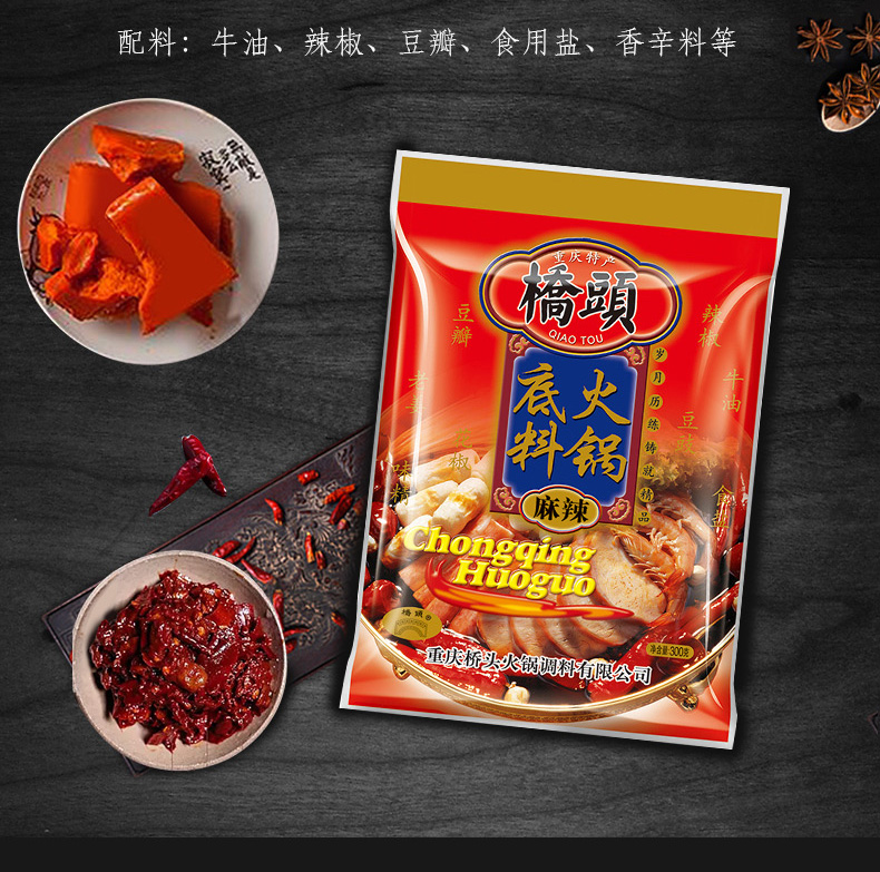 桥头 重庆火锅底料特产 麻辣牛油火锅底料 冒菜麻辣香锅调料300g中华老字号