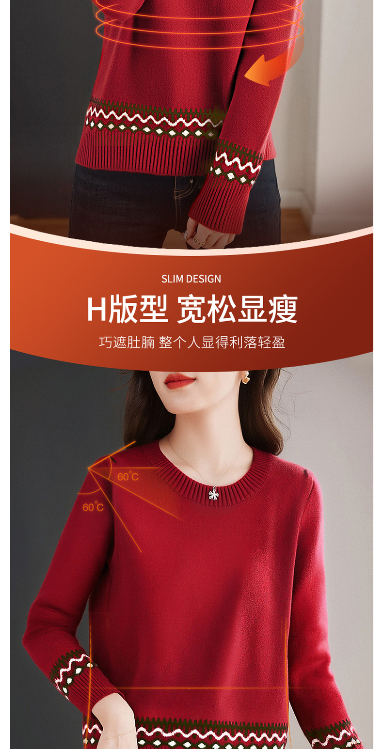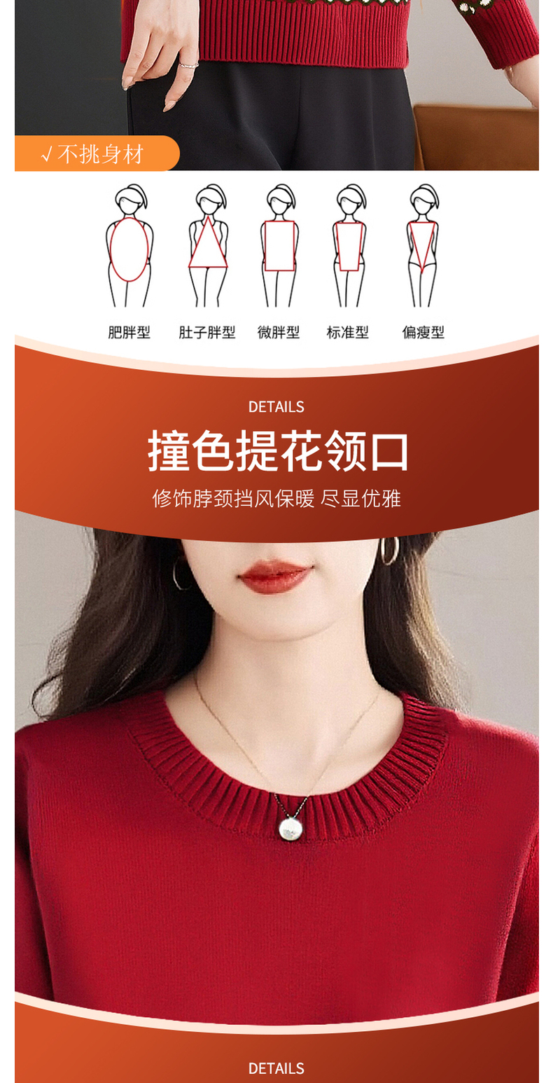 圣诞红色毛衣女款新款冬季加厚大码女装胖mm针织打底衫高级感上衣