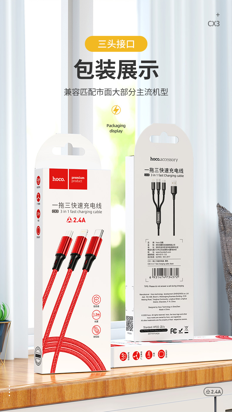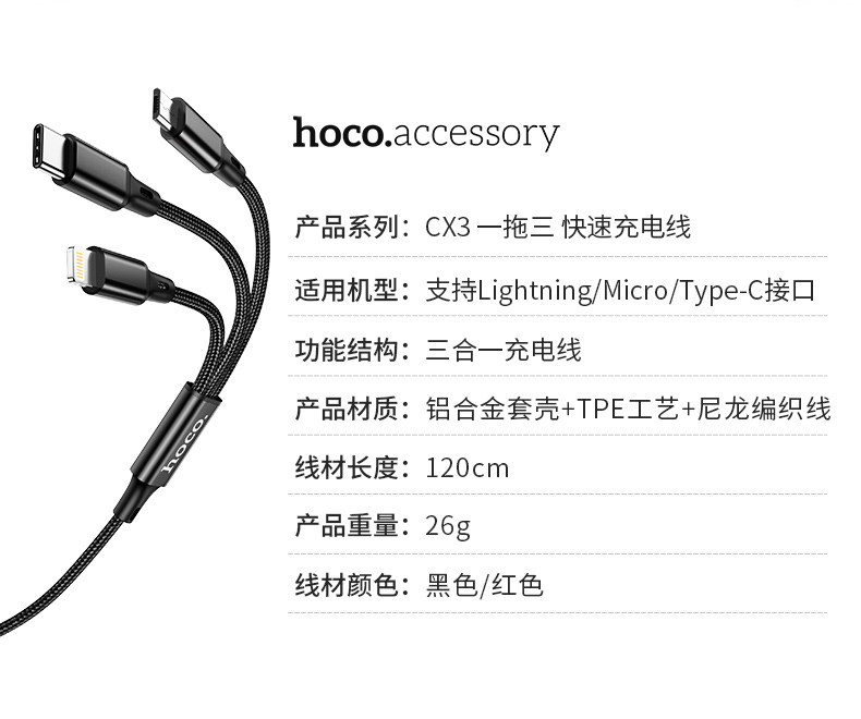 浩酷(hoco.)CX3 一拖三 快速充电CX3