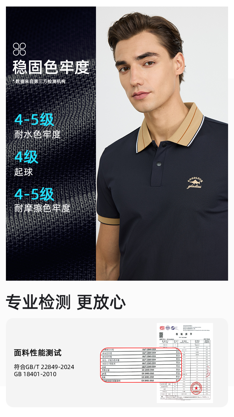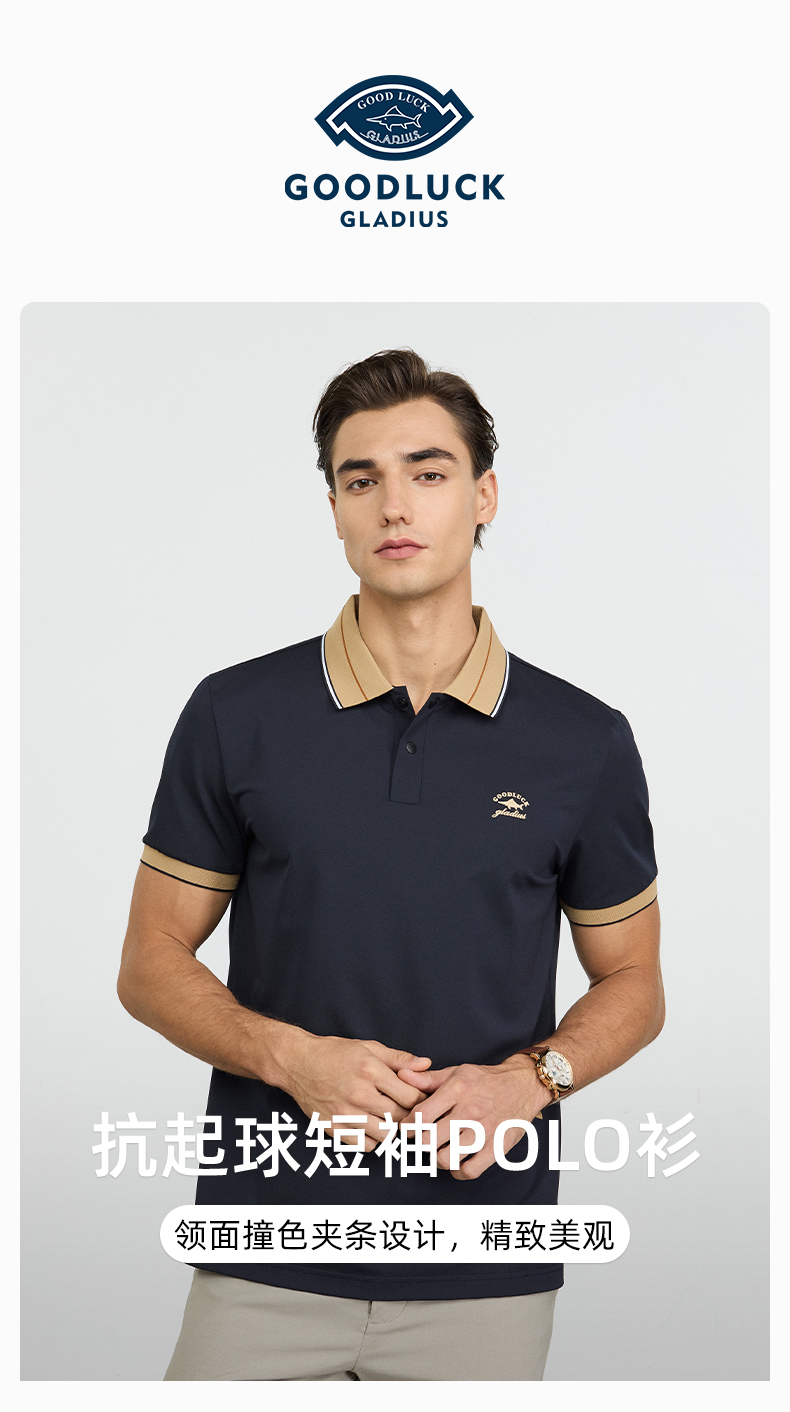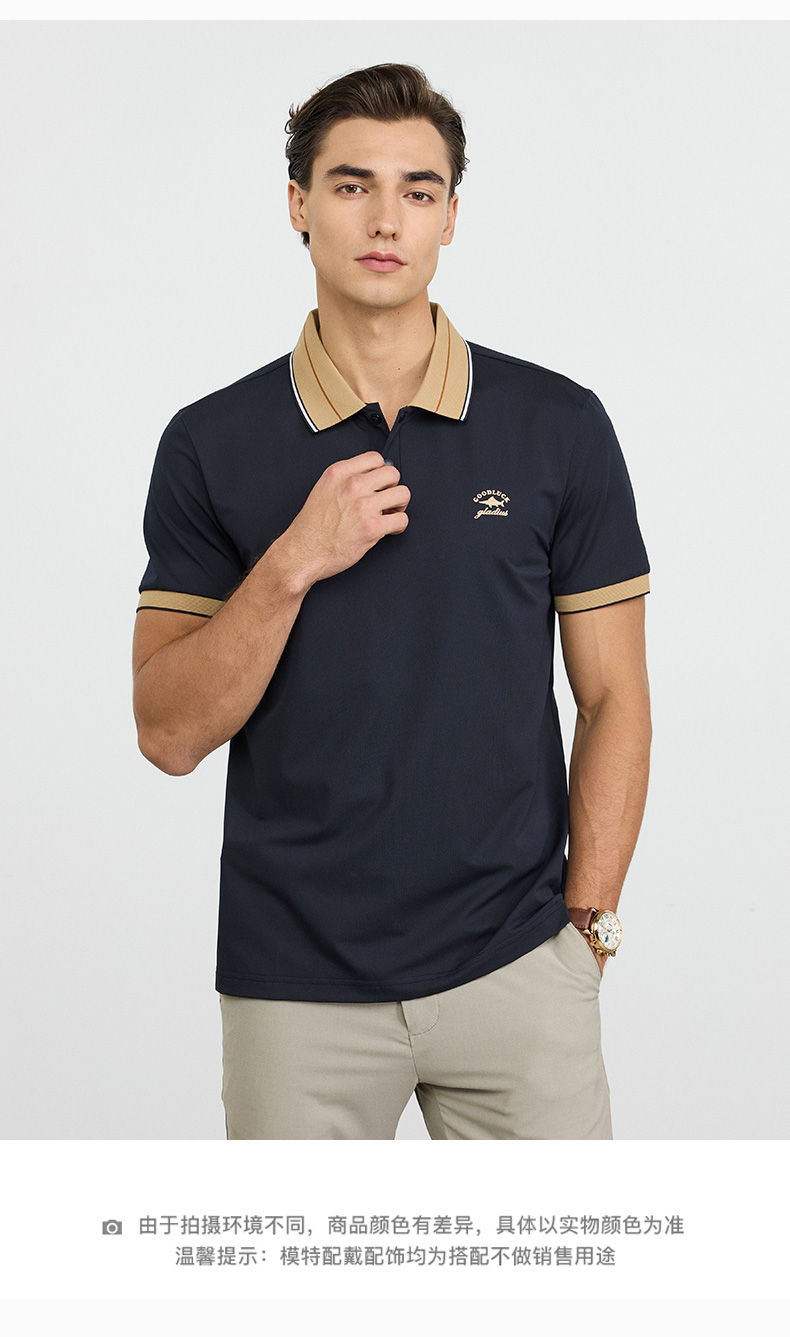【抗起球】德鲨商务短袖POLO衫男2026夏季新款撞色领上衣翻领T恤