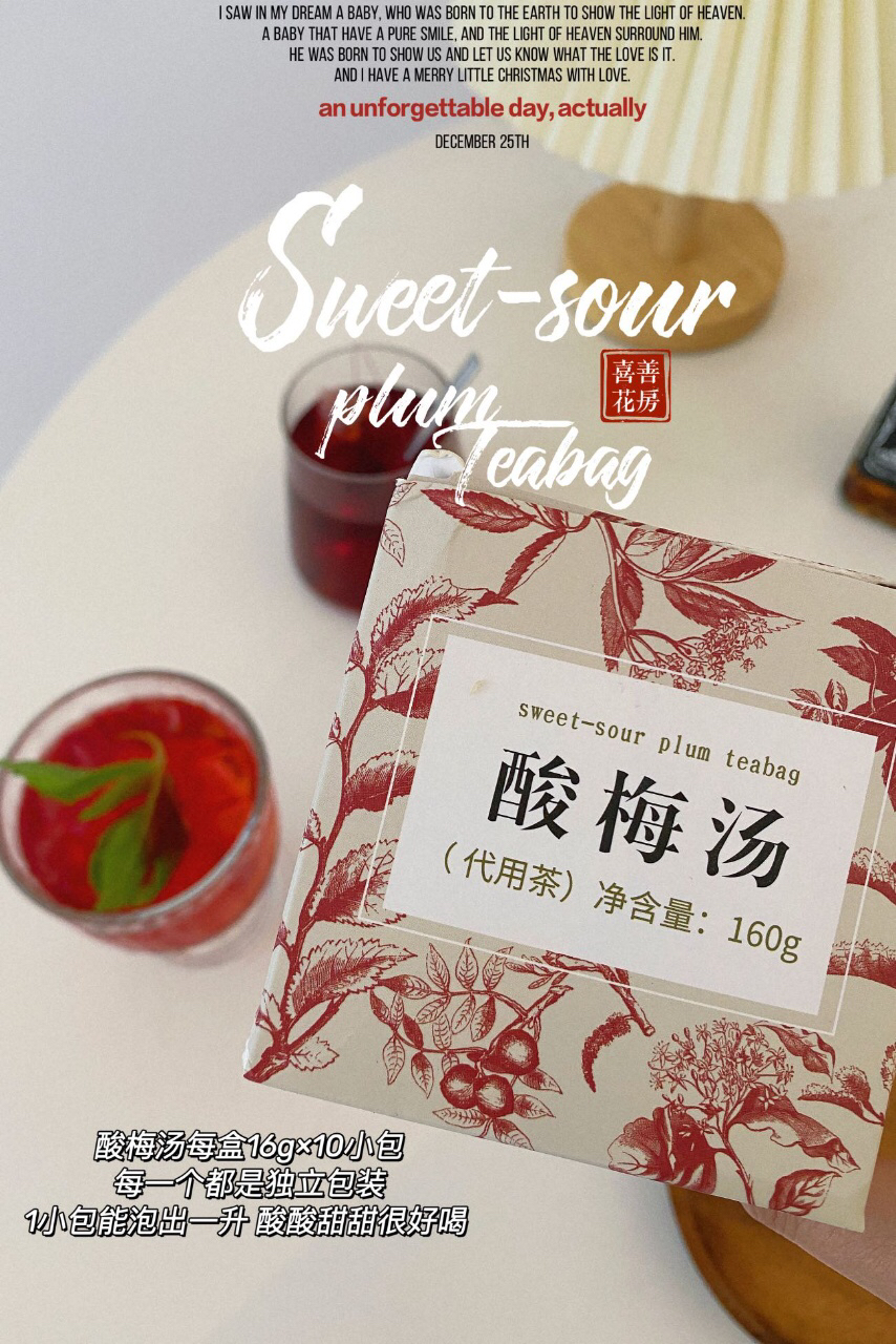 【喜善花房 · 免煮酸梅汤】自制乌梅天然食材、8种天然草本0添加、3分钟就可以泡一杯地道的酸梅 160g/盒/10小袋