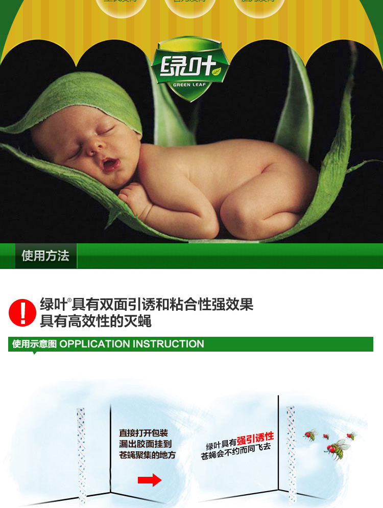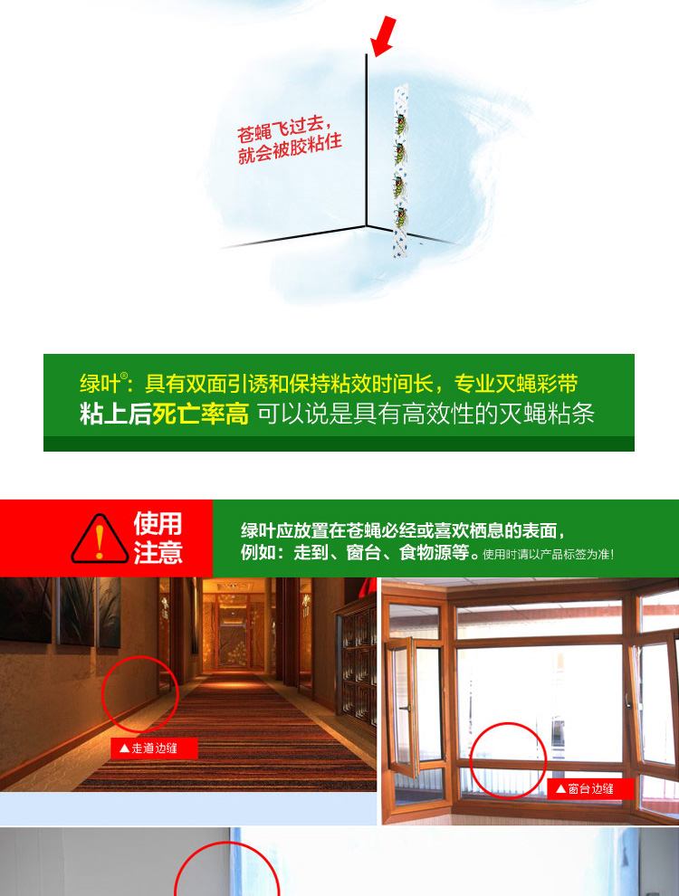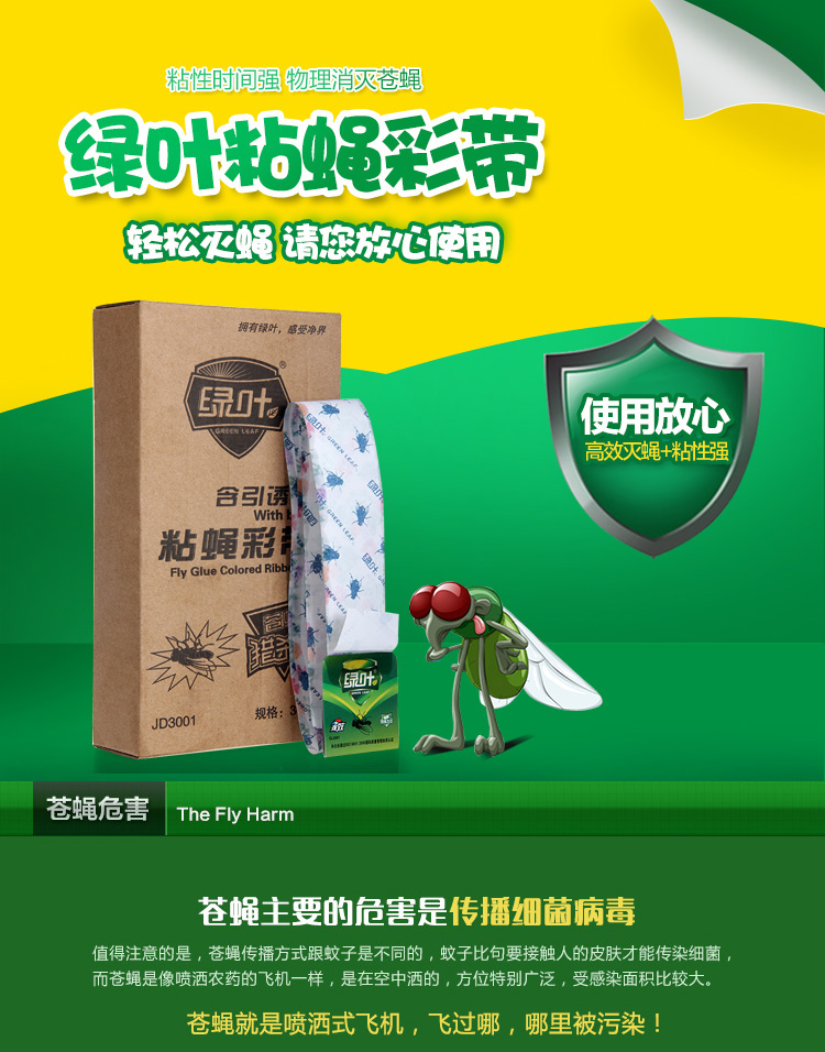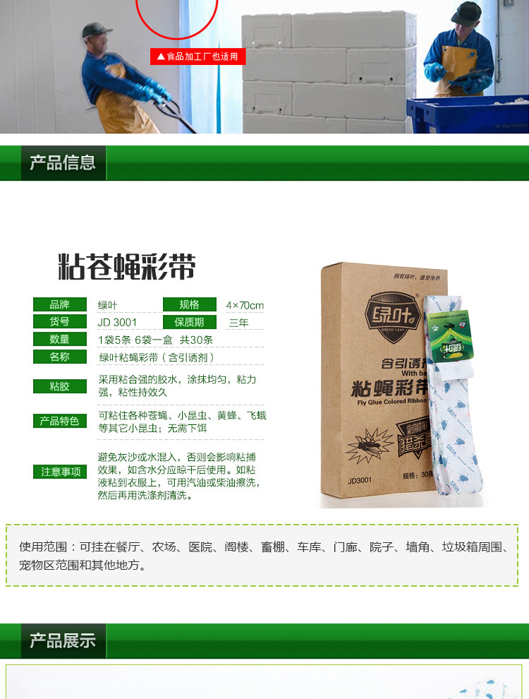 绿叶(Green Leaf)粘蝇条粘苍蝇纸粘蝇彩带蚊虫粘纸30条装JD3001