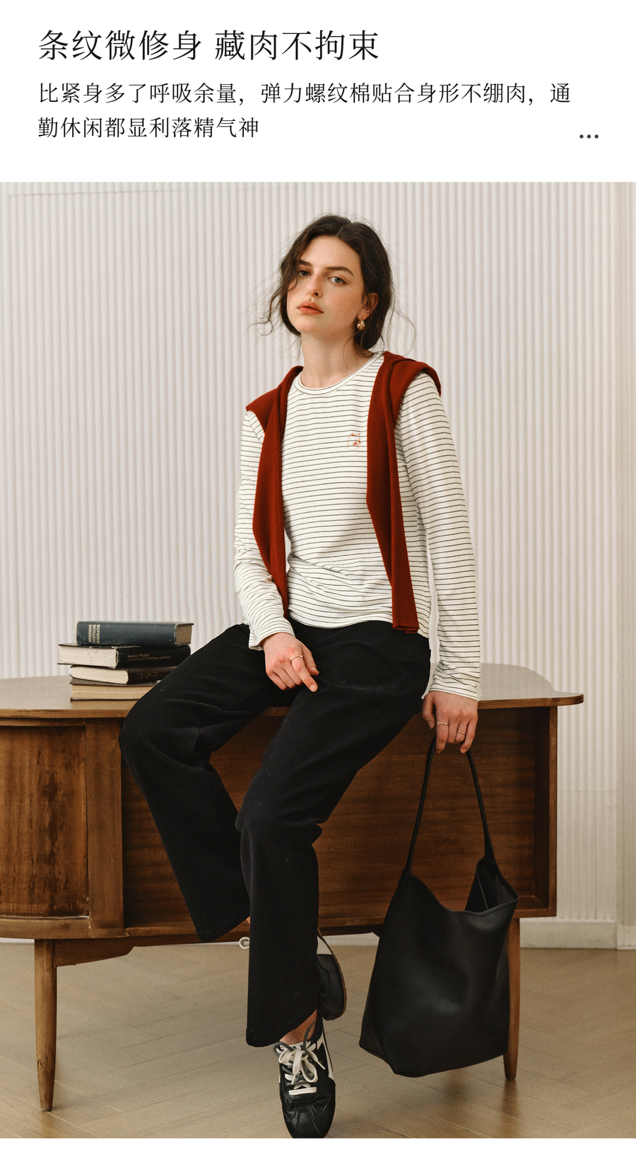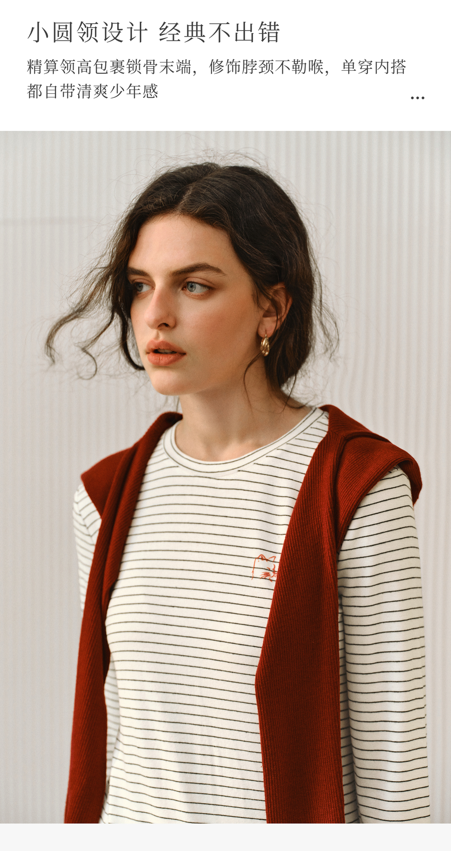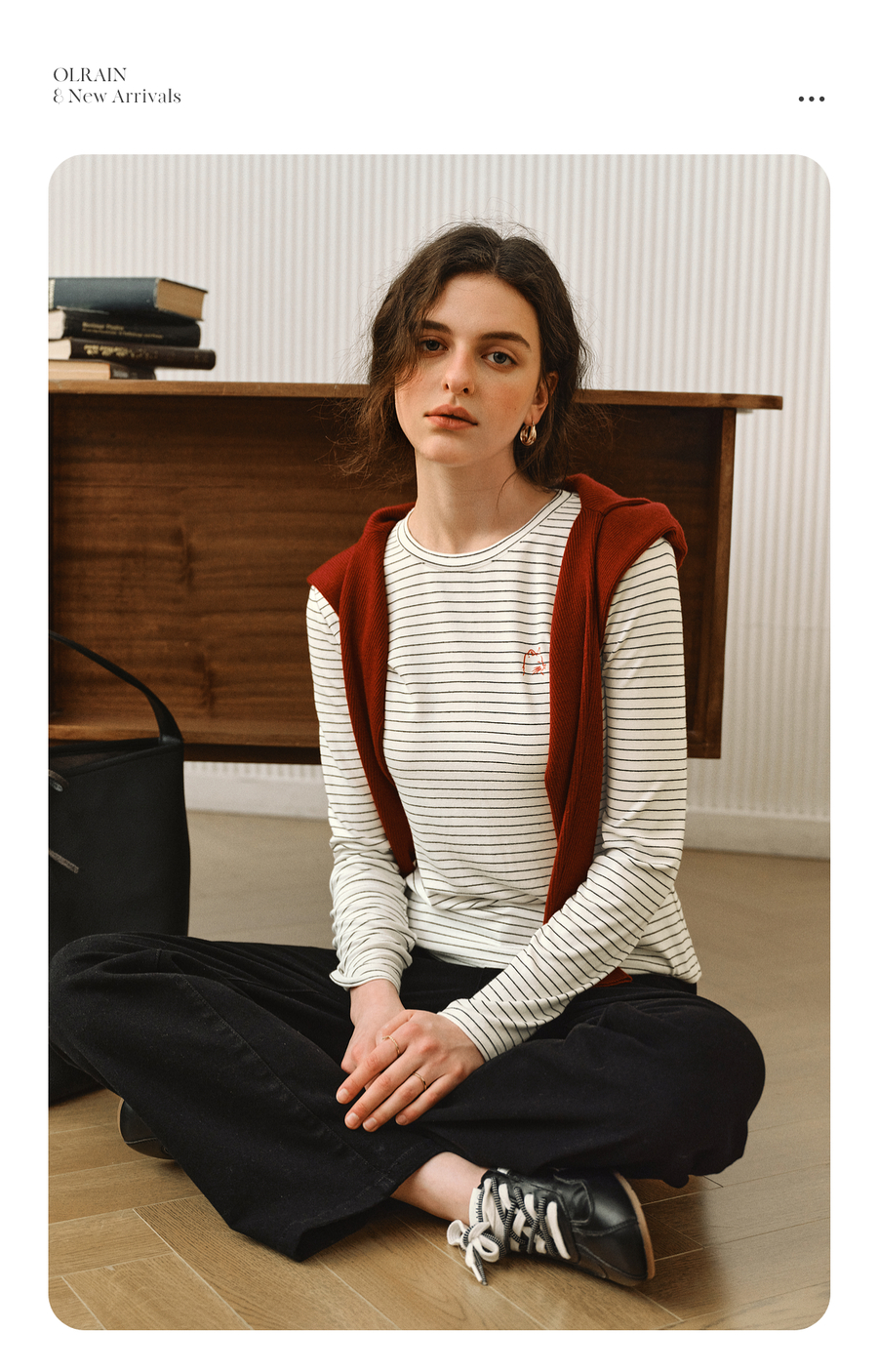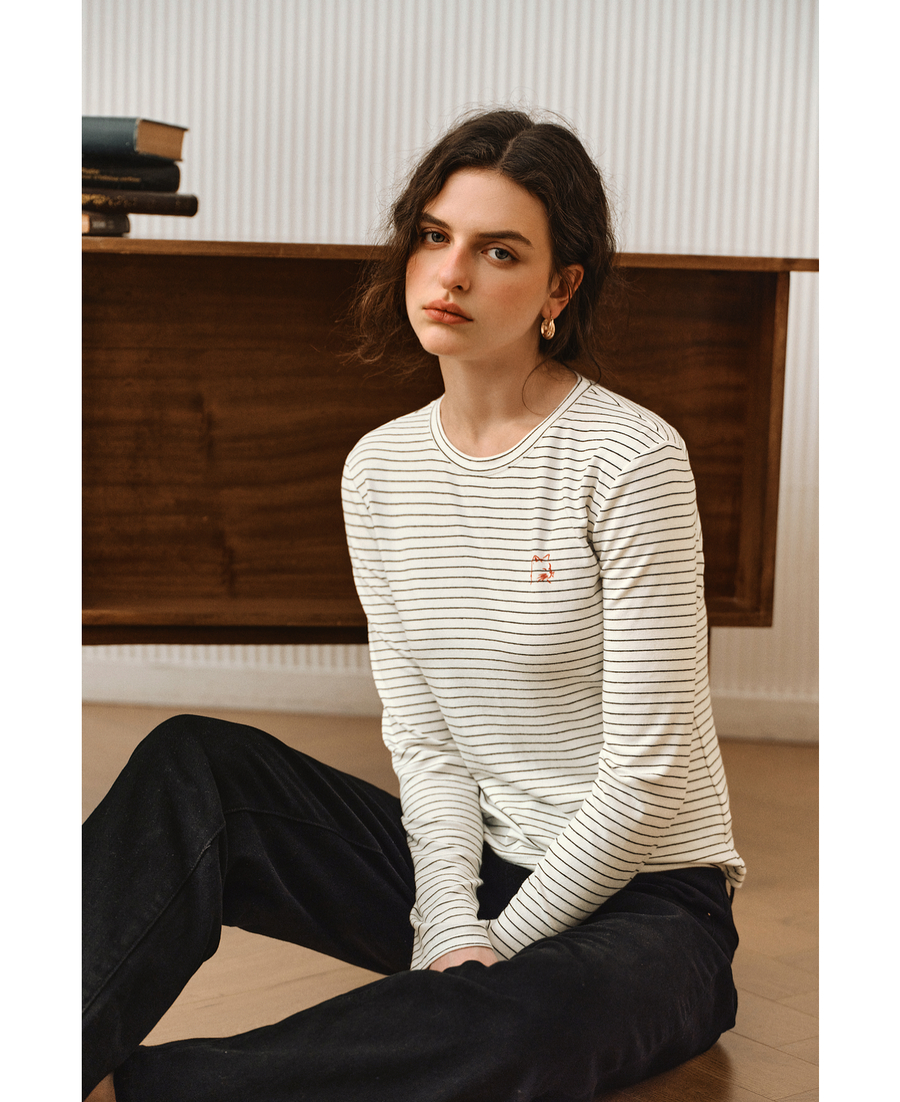 OLrain欧芮儿2025新款女秋季休闲慵懒条纹修身圆领长袖打底T恤
