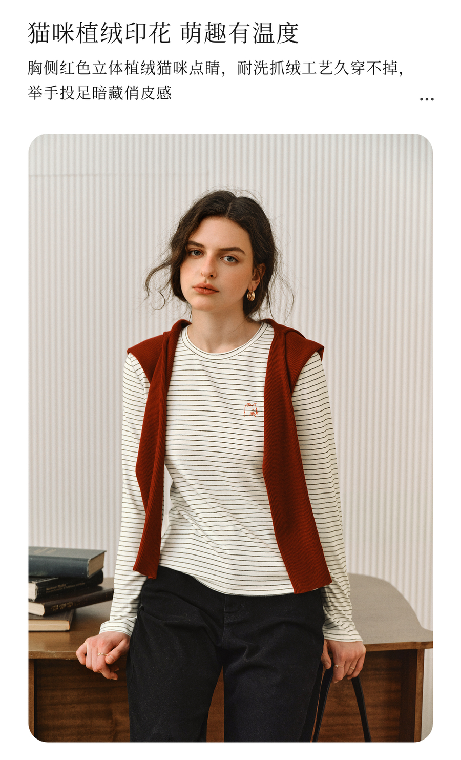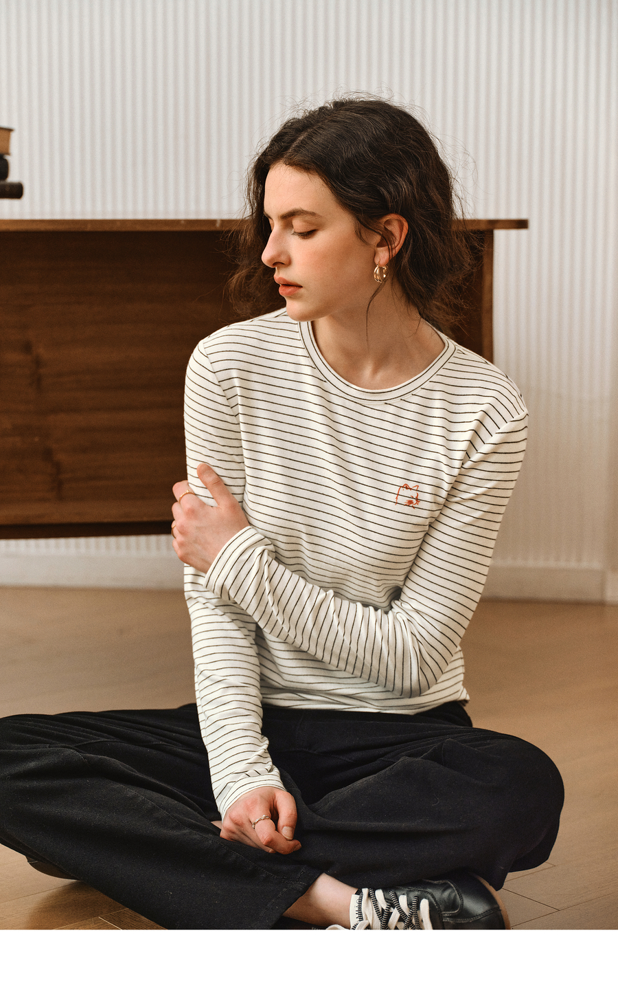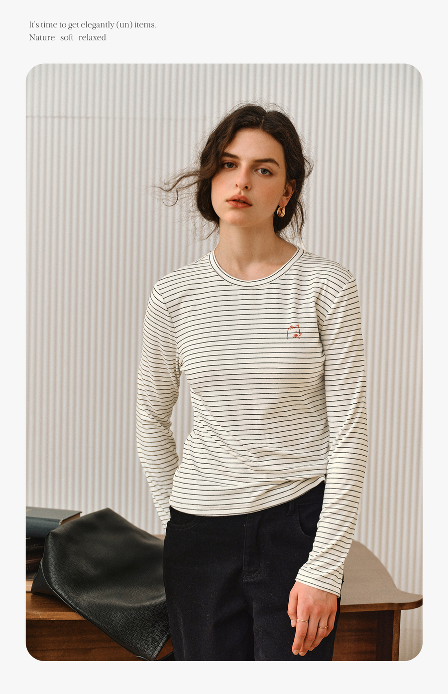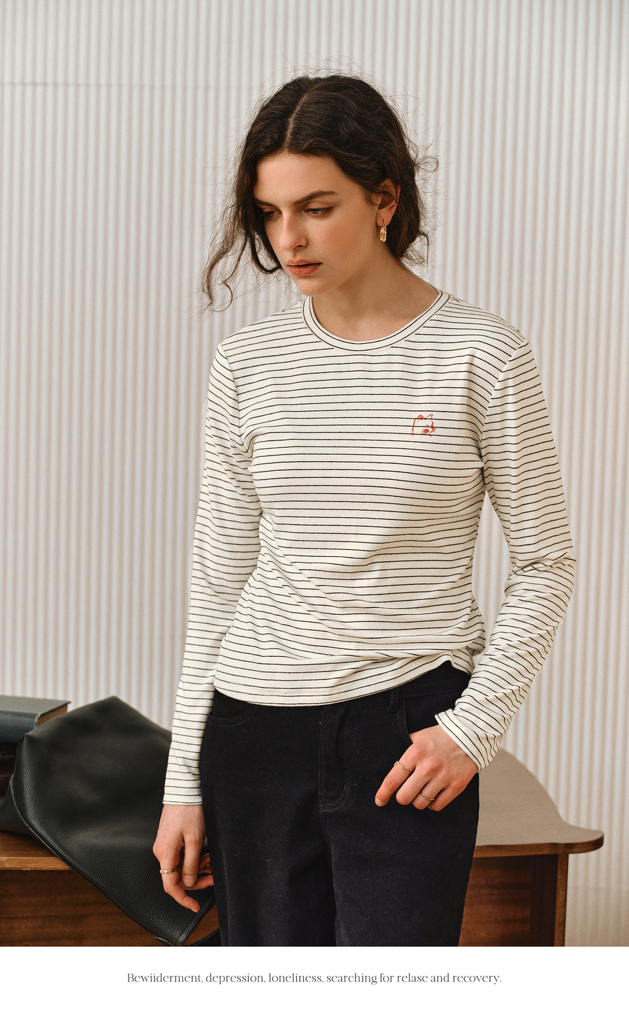 OLrain欧芮儿2025新款女秋季休闲慵懒条纹修身圆领长袖打底T恤